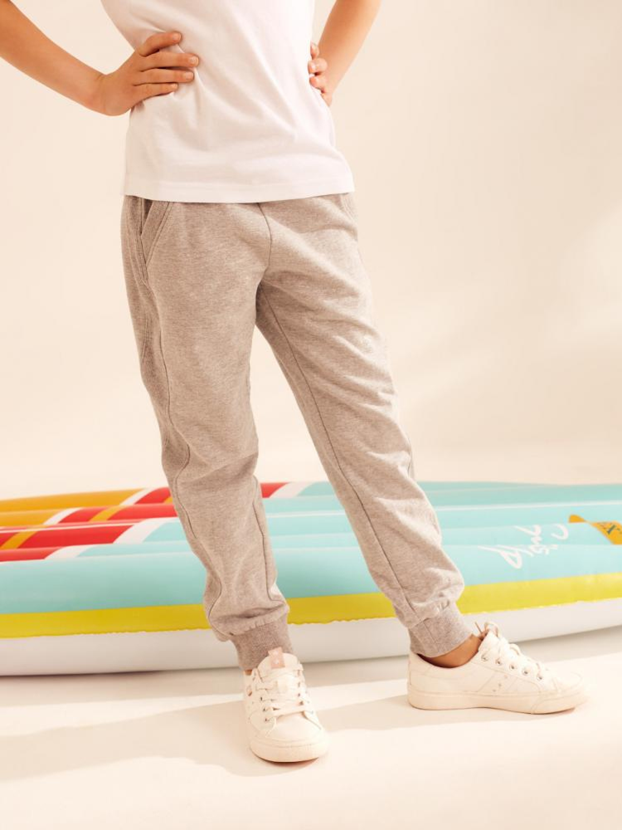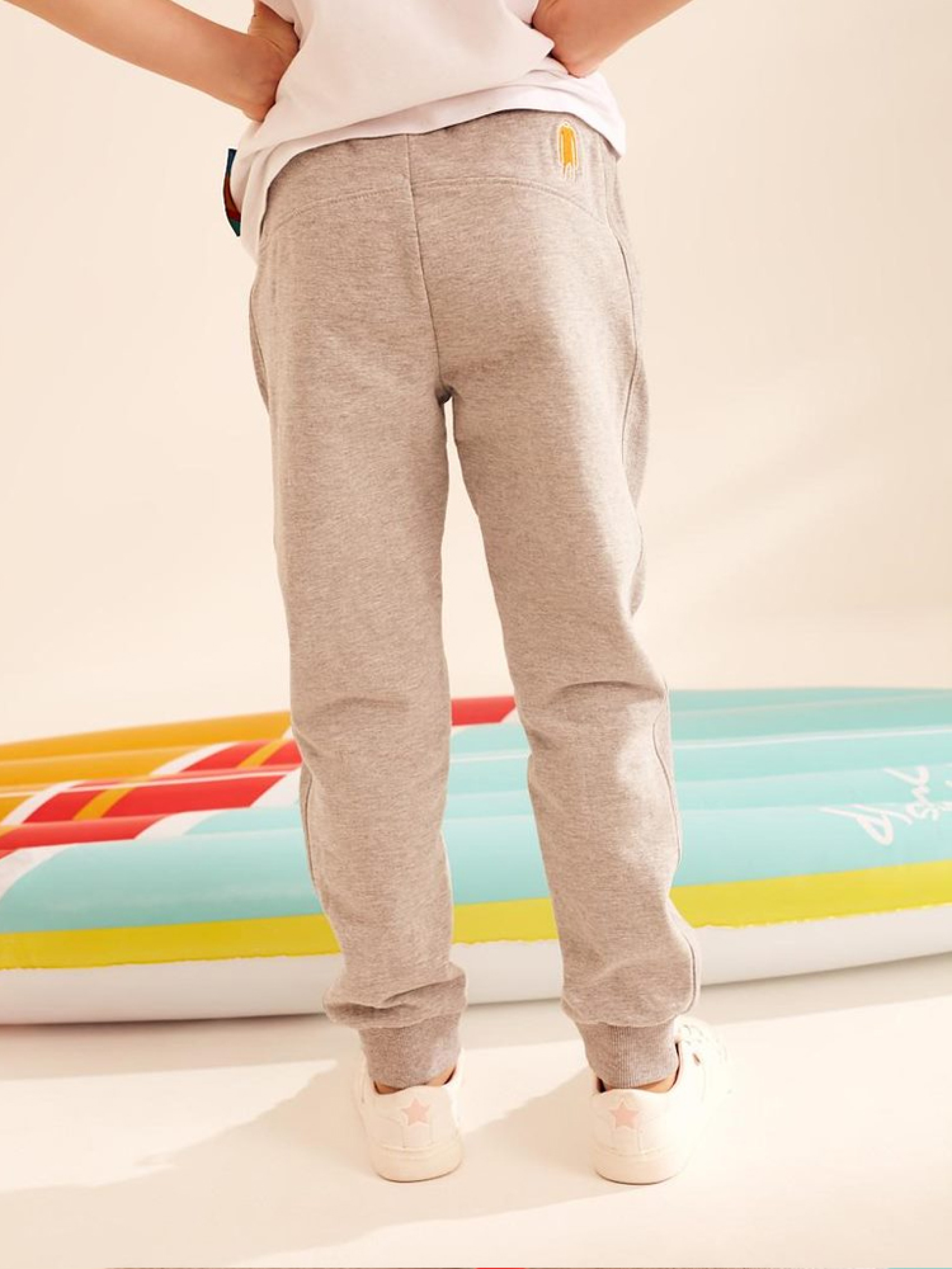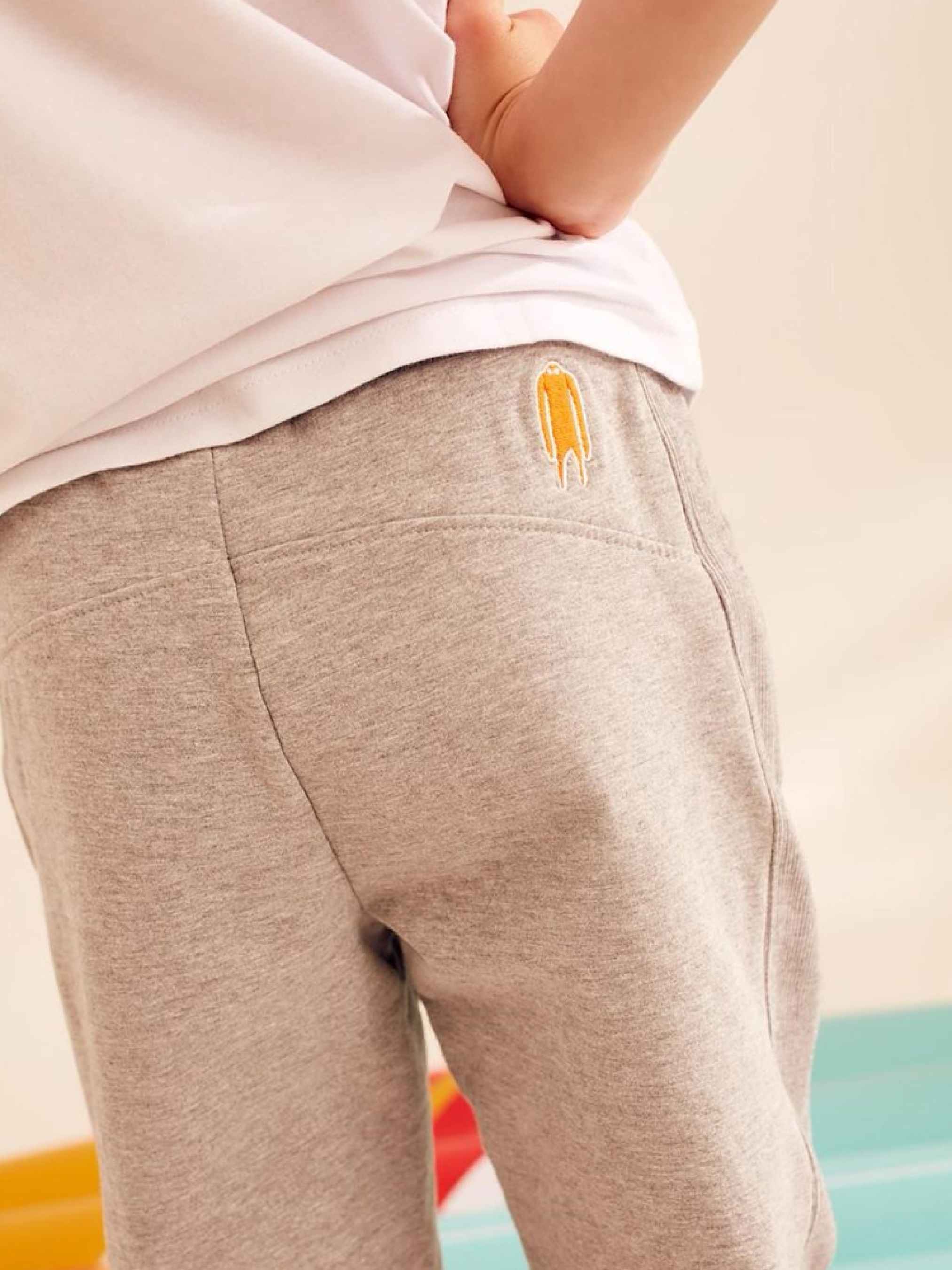 Дитячі спортивні штани CLTN KID 18 з декоративною вишивкою ззаду. Виготовлені з якісної м'якої тканини: - дві кишені з боків, - нижня частина штанини оброблена трикотажною резинкою, - шнурок на талії, - доступні в світло-сірому меланжі. Сезон: Весна-літо. Склад: 90% бавовна 7% віскоза 3% еластан. РОЗМІР: 98/104, 110/116, 122/128, 134/140, 146/152, ШИРИНА ТАЛІЇ, 22 см, 25 см, 27 см, 29 см, 32 см, ДОВЖИНА ВНУТРІШНЬОЇ НОГИ, 42 см, 46 см, 52 см, 58 см, 65 см, ШИРИНА СТЕГНА, 20 см, 21 см, 22 см, 24 см, 26 см, ШИРИНА НИЗУ ШТАНИНИ, 7 см, 8 см, 9 см, 10 см, 11 см