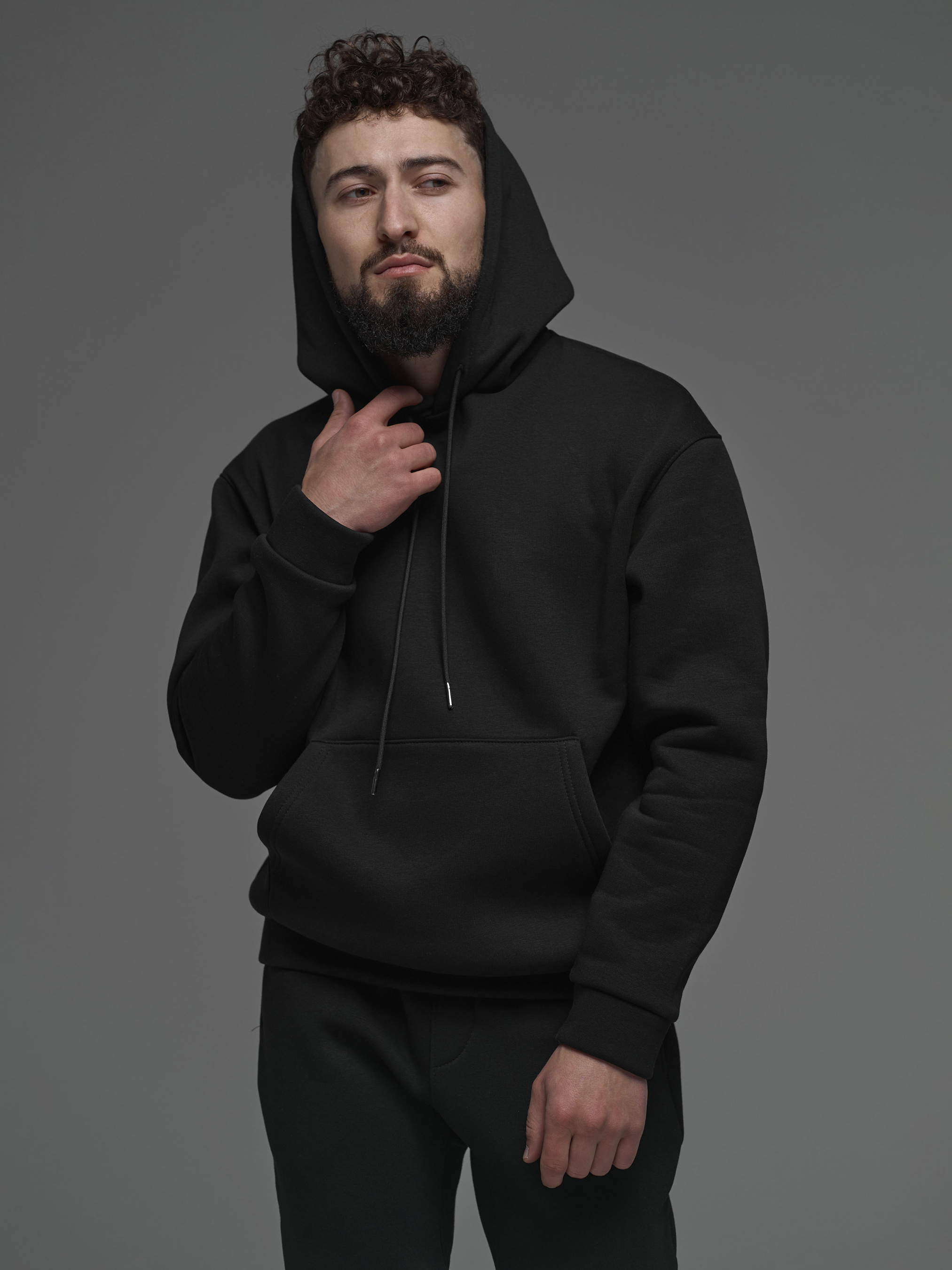 Базовий спортивний костюм з худі, чудово поєднується з верхнім одягом. Дуже приємний до тіла матеріал - якісна, зносостійка трьохнитка діагональ на флісі. Перевірено сотнями клієнтів та нашою командою. Костюм в якому зручно всюди: на роботі, на прогулянці, в поїздках. Особливості моделі: подвійний капюшон, штани на манжетах з рібани із зав'язками на поясі, шнурки мають металевий наконечник, не линяють. Доступний у кольорах: сірий, синій, хакі, чорний