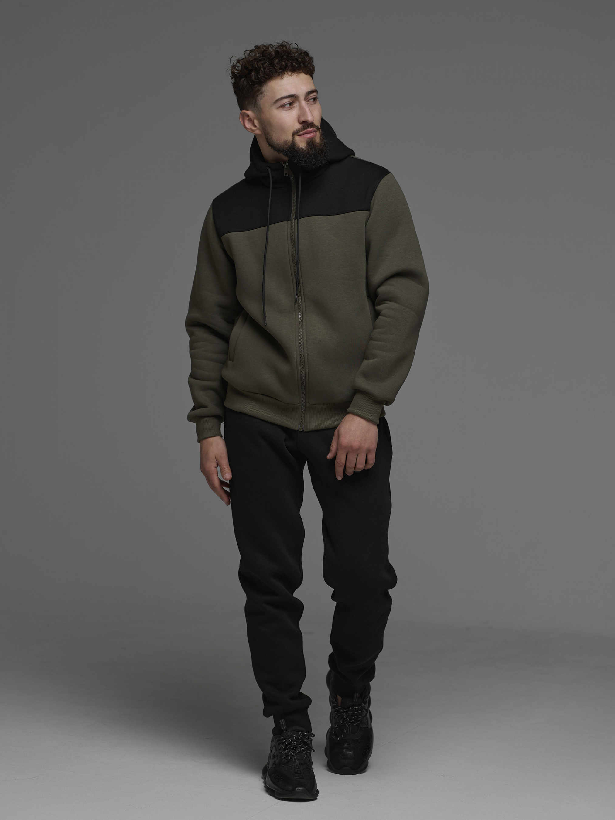 Наш бестселлер, модель, яку ми випускаємо кожного сезону. Матеріал - турецька трьохнитка з флісом, фурнітура - японські блискавки від фірми YKK. Костюм тестували самостійно та і відгуки наших клієнтів запевнили нас в тому, що тканина не кошлатиться, не розтягується на колінах, замок працює ідеально. Продумані лекала роблять костюм універсальним - гарно лягає на будь-який тип фігури. Особливості моделі: подвійний капюшон, внизу кофти та штанів є манжет з рібани, а також в місці, де збігаються дві штанини є додаткова вставка для комфортної ходи. Доступний у кольорах: хакі, чорний, сірий, хакі/чорний, сірий/чорний