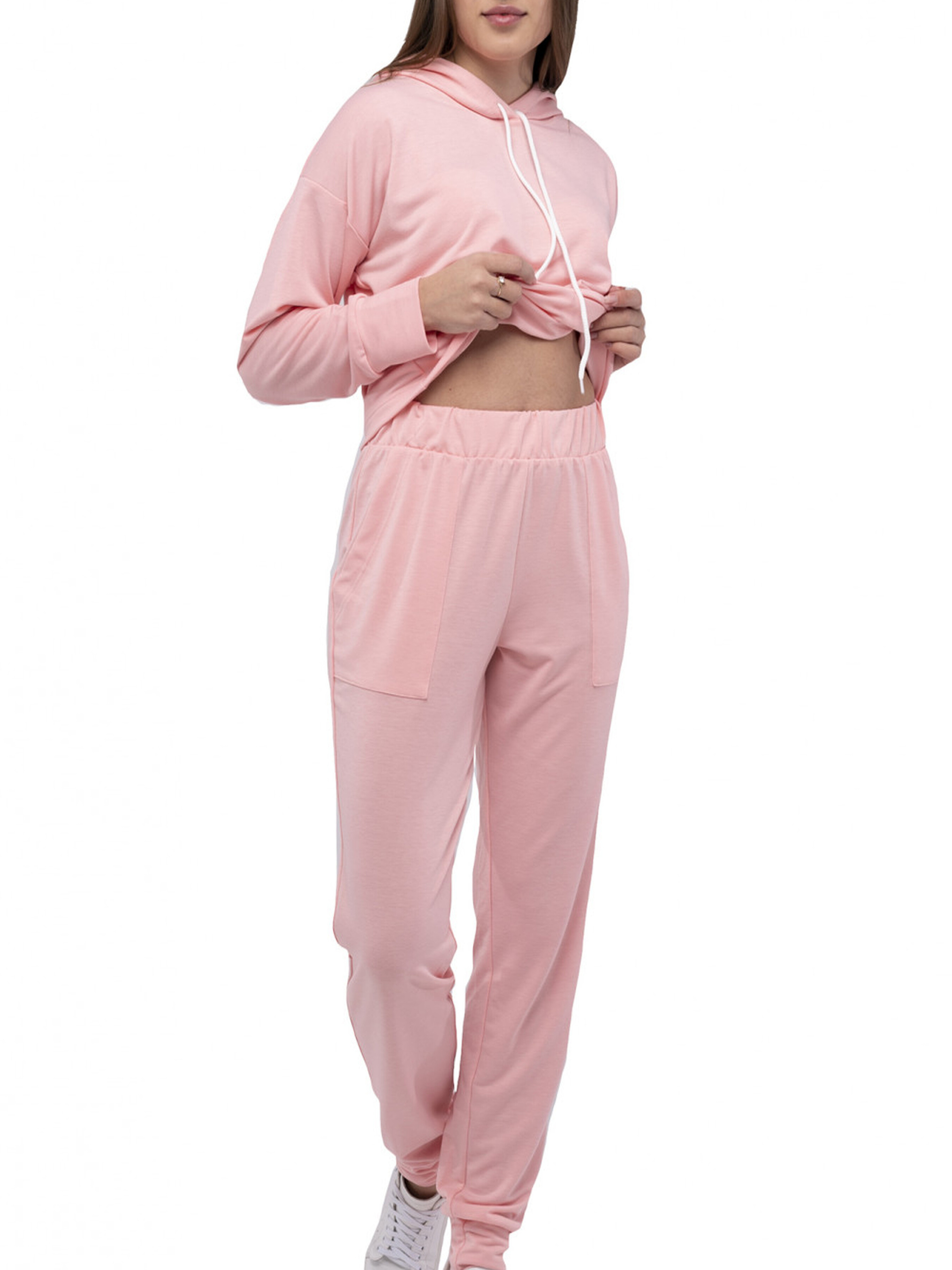 Спортивний костюм жіночий рожевий, з манжетою, кишенями, прямим кроєм, на резинці, через голову Цей рожевий спортивний костюм виглядає елегантно та стильно, додаючи легкості та свіжості вашому образу. Ідеальний для активного дня або для відпочинку в стильному вигляді. Основні характеристики: Колір: рожевий — м'який і ніжний відтінок, який додає романтичності та елегантності. Крій: прямий — вільний та комфортний для максимального зручності. Манжети: еластичні — для зручної посадки на руках і штанах. Пояс: на резинці — створює комфортну посадку, не обмежуючи рухів. Застібка: через голову — мінімалістичний і зручний варіант. Кишені: функціональні — для зберігання дрібниць, як телефон або ключі. Як носити: Рожевий костюм чудово поєднується з білими або світлими кросівками для створення свіжого і жіночного вигляду. Ідеально підходить для прогулянок, тренувань або просто для комфортного відпочинку вдома.