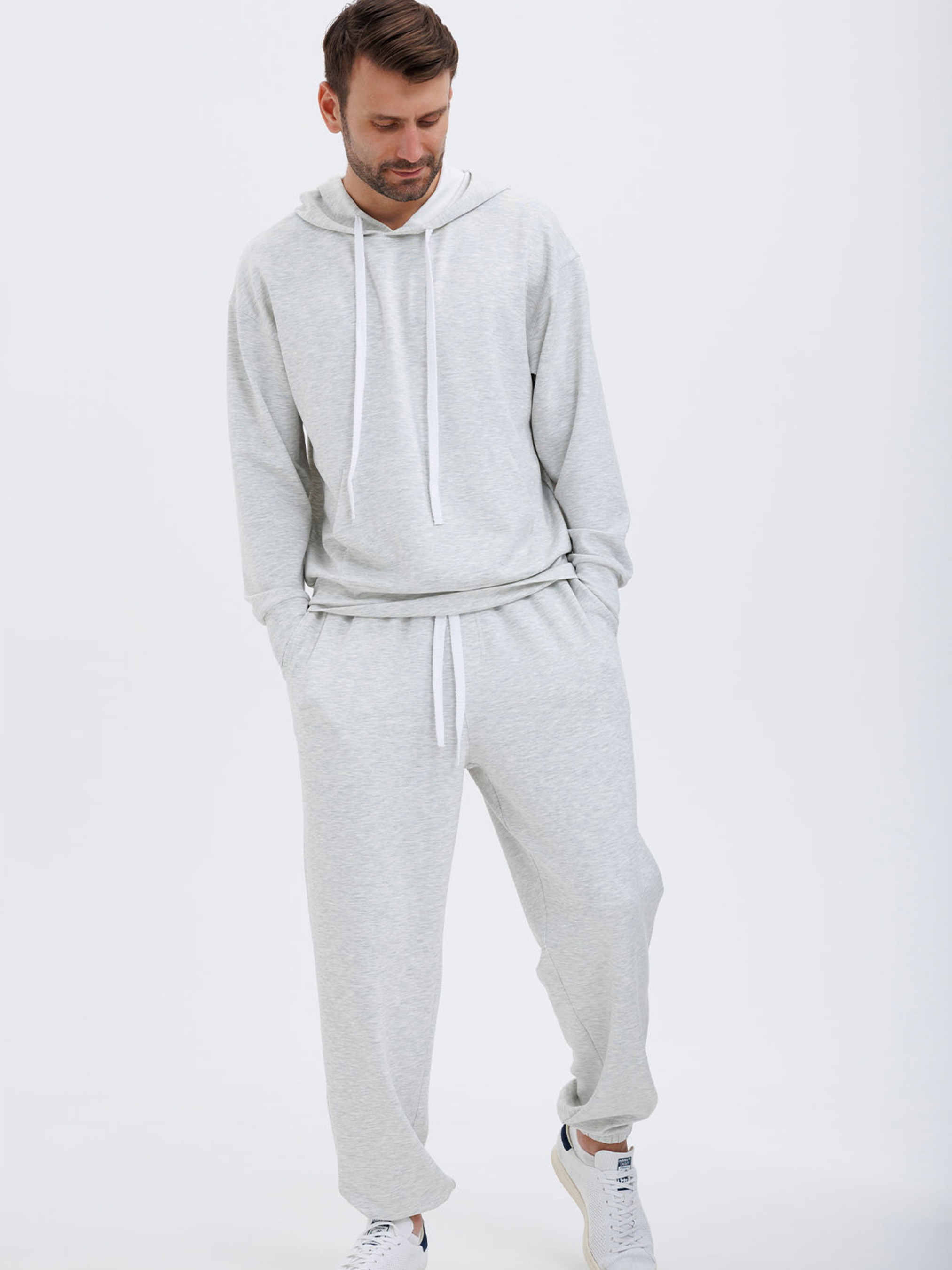 80% viscose, 15% polyester, 5% lycra Цей стильний та комфортний спортивний костюм створений для тих, хто цінує якість і зручність. Виготовлений із м'якої віскози, він забезпечує легкість і приємні відчуття на тілі. Худі виконане в приємному сірому кольорі, що підходить до будь-якого гардеробу. Воно має продуманий дизайн, який ідеально підходить для активного способу життя або відпочинку. Штани вільного крою забезпечують свободу рухів і комфорт у будь-яких умовах. Низ штанів на гумці додає функціональності та сучасного вигляду. Ідеальний вибір для повсякденного носіння, тренувань чи прогулянок. Цей костюм поєднує стиль, зручність і практичність, щоб кожен ваш день був комфортним і модним.