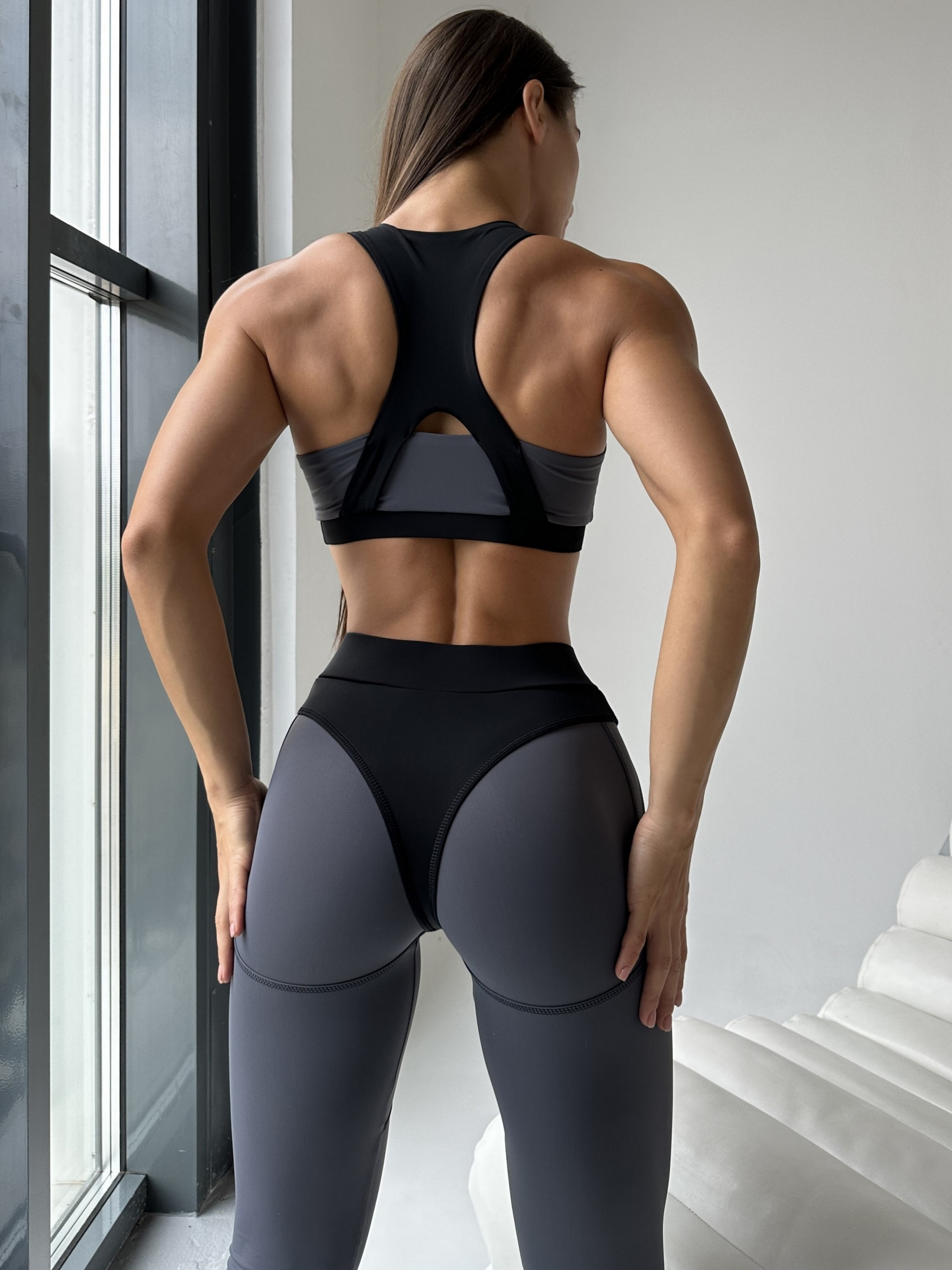 Жіночий спортивний комплект Nova Vega. До комплекту входять лосини та топ - ідеально підійде для тренувань у залі та на відкритому повітрі. Топ з глибоким декольте та відкритими лопатками. Лосини з декоративними швами у вигляді трусиків створюють пушап ефект що вигідно підкреслюють Ваші сідниці. Комплект виготовлений із високоякісного Біфлексу. Особливостями даного матеріалу є зносостійкість, Біфлекс добре вбирає вологу і пропускає повітря, також матеріал дуже добре тягнеться і не втрачає при цьому своєї форми, а щільний матеріал не просвічується під час присідань.
