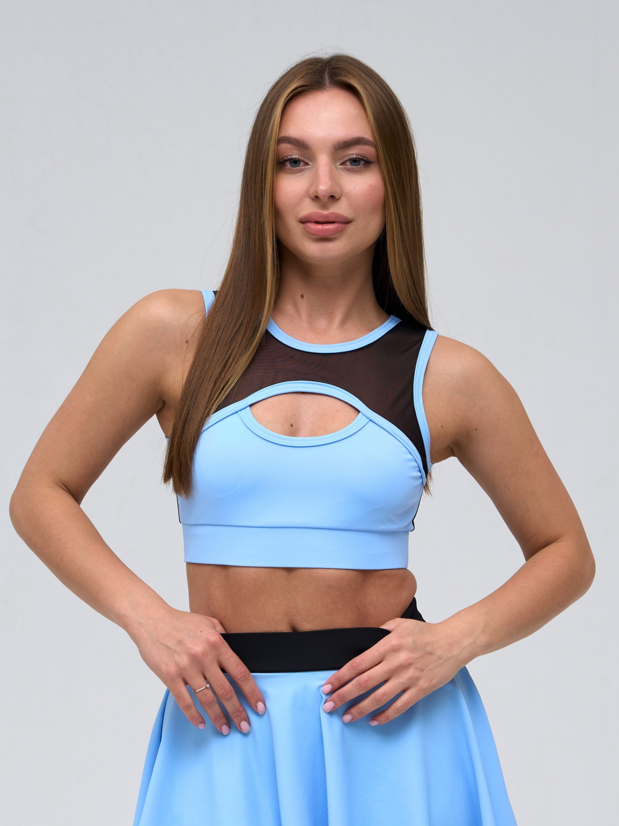 Жіночий спортивний топ Nova Vega - це ідеальний вибір для занять у тренажерному залі, фітнесом або йогою. Він має глибокий декольте і виріз на спині, що надає йому особливого шарму. Вставки з сітки надають топу витонченість і створюють цікаву гру прозорості. Цей топ від Nova Vega чудово доповнить ваш спортивний гардероб, підкреслюючи вашу жіночність та індивідуальний стиль. Топ з карманами для чашок вкладишів.
