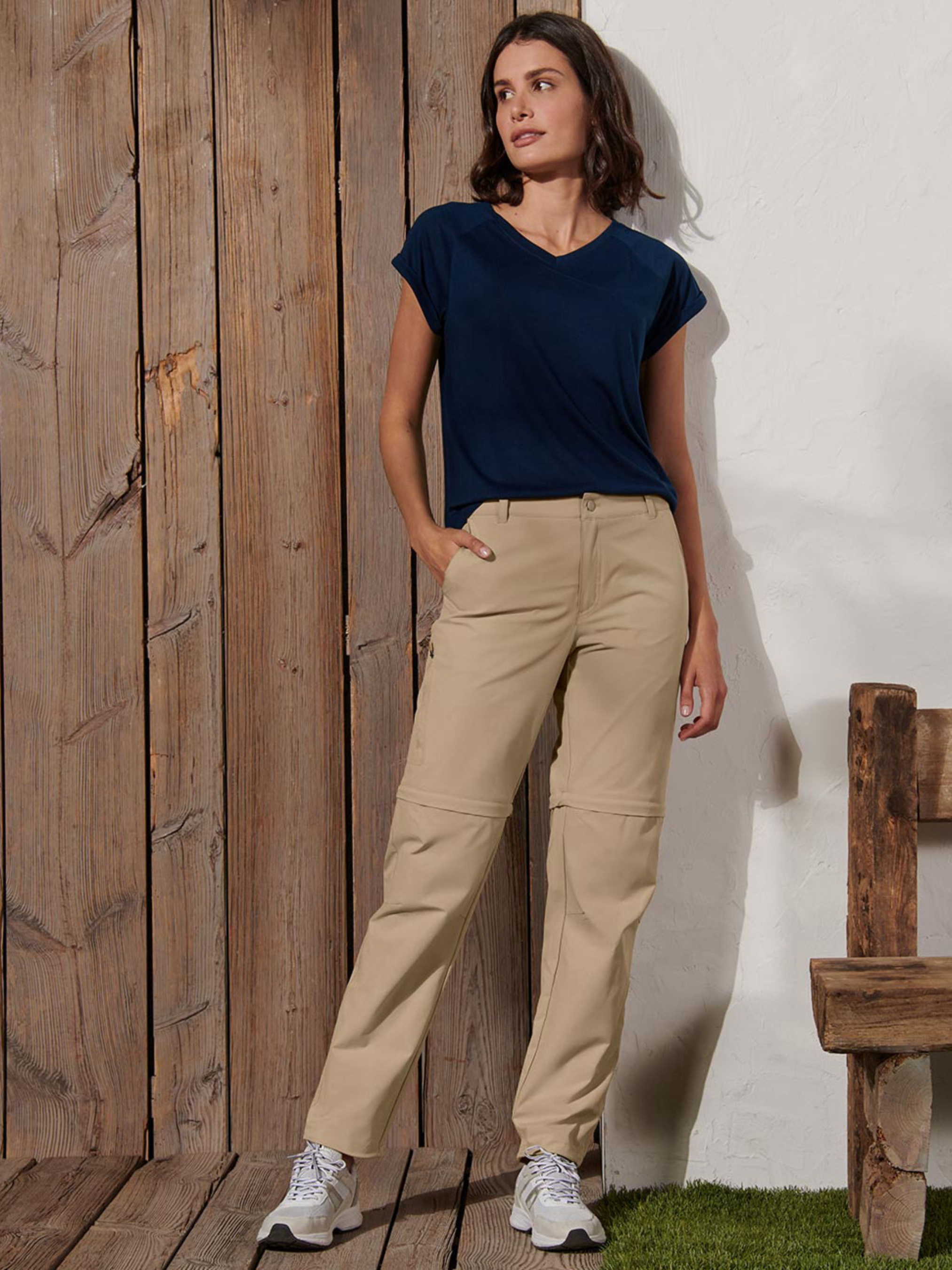Повітропроникна, вологопоглинаюча та швидковисихаюча завдяки покриттю DryActive Plus. Можна носити і як шорти - штанини знімаються. Еластична вставка в поясі для оптимальної посадки. Високий комфорт при носінні завдяки біеластичному .функціональному матеріалу. 2 кишені для рук. Бічна кишеня на блискавці. Регульовані манжети на ніжках. З шлевками. Легкий, еластичний і міцний матеріал - ідеальний для активного відпочинку. Перевірено на вміст шкідливих речовин – сторонніми акредитованими інститутами. Склад:100% поліестер Розмір 42 євро ПОТ: 41 см, Напівобхват стегон: 52 см, Довжина/крок:102/77 см. Розмір 46 євро ПОТ: 46 см, Напівобхват стегон: 58 см, Довжина/крок:102/75 см. Зверніть увагу, вказано розміри за Євро шкалою (Український розмір = Євро + 6) Одяг бренду TCM Tchibo практично весь без паперових етикеток, за рідкісним винятком, і зі зрізаними частково або повністю внутрішніми бірками і ярликами зі складом тканини та іншими даними.