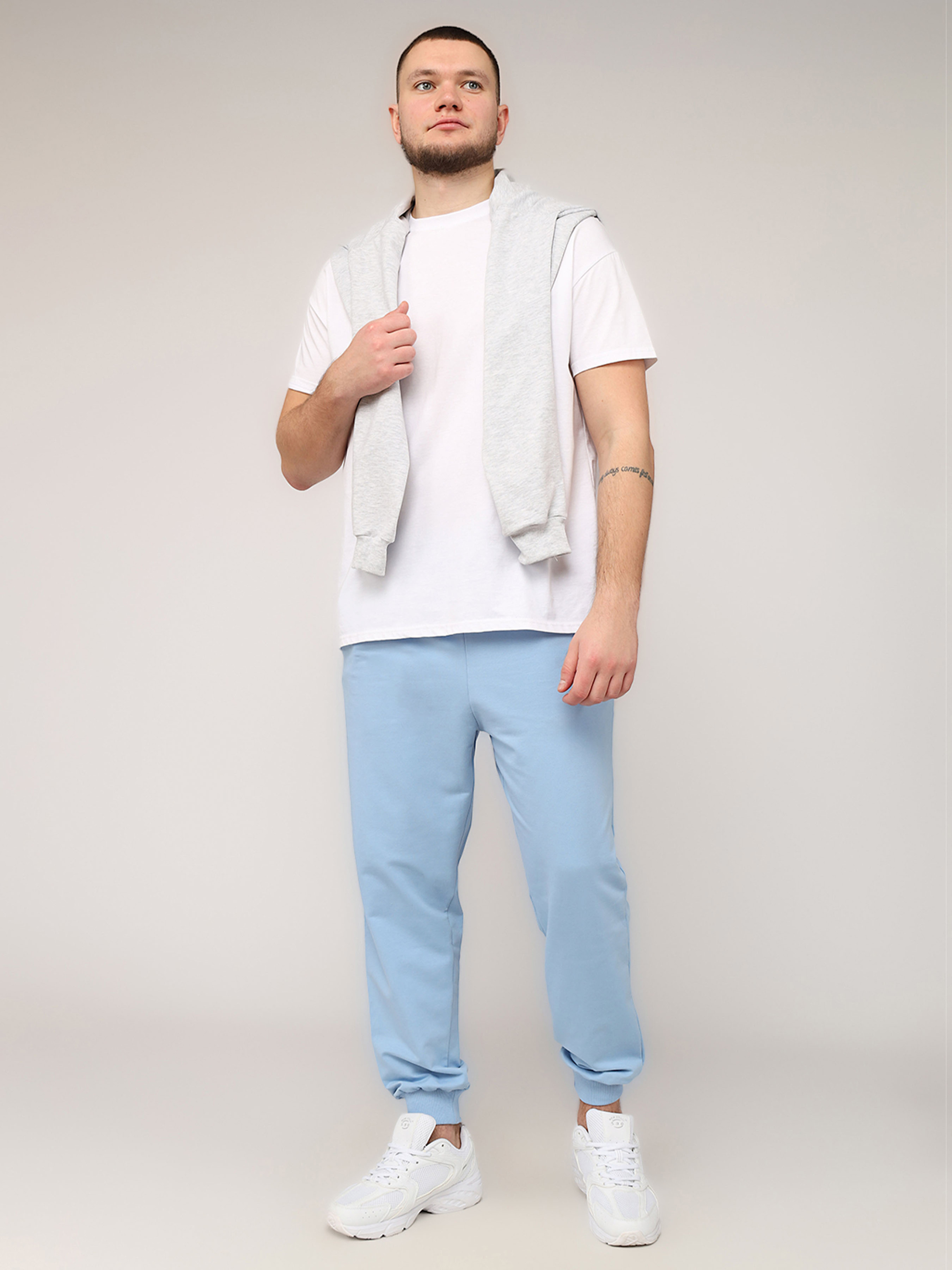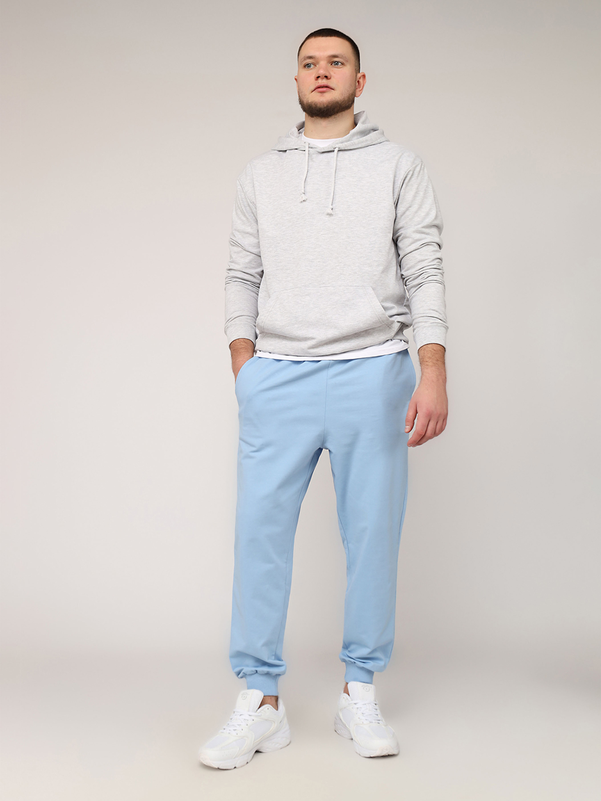 Штани спортивні чоловічі – це ідеальний вибір для тренувань, прогулянок або повсякденного носіння. Виготовлені з м’яких і дихаючих матеріалів, вони забезпечують комфорт та свободу рухів у будь-якій ситуації. Еластичний пояс дозволяє легко регулювати посадку, забезпечуючи зручність протягом усього дня. Функціональні кишені надають місце для дрібниць, таких як телефон або ключі. Прямий крій додає сучасного вигляду. Універсальний дизайн дозволяє комбінувати штани з футболками, худі чи спортивними куртками, створюючи стильні образи для спорту чи відпочинку. Чоловічі спортивні штани – вибір для тих, хто цінує комфорт і стиль! Особливості виробу: Колір: блакитний, однотонний. Матеріал виготовлення: двонитка. Склад: 95 % бавовна, 5 % еластан. Штани мають пояс на резинці. Сезон: демісезон. Параметри моделі: Зріст: 185 см. Розмір на моделі: 50. Країна виробник: Туреччина.