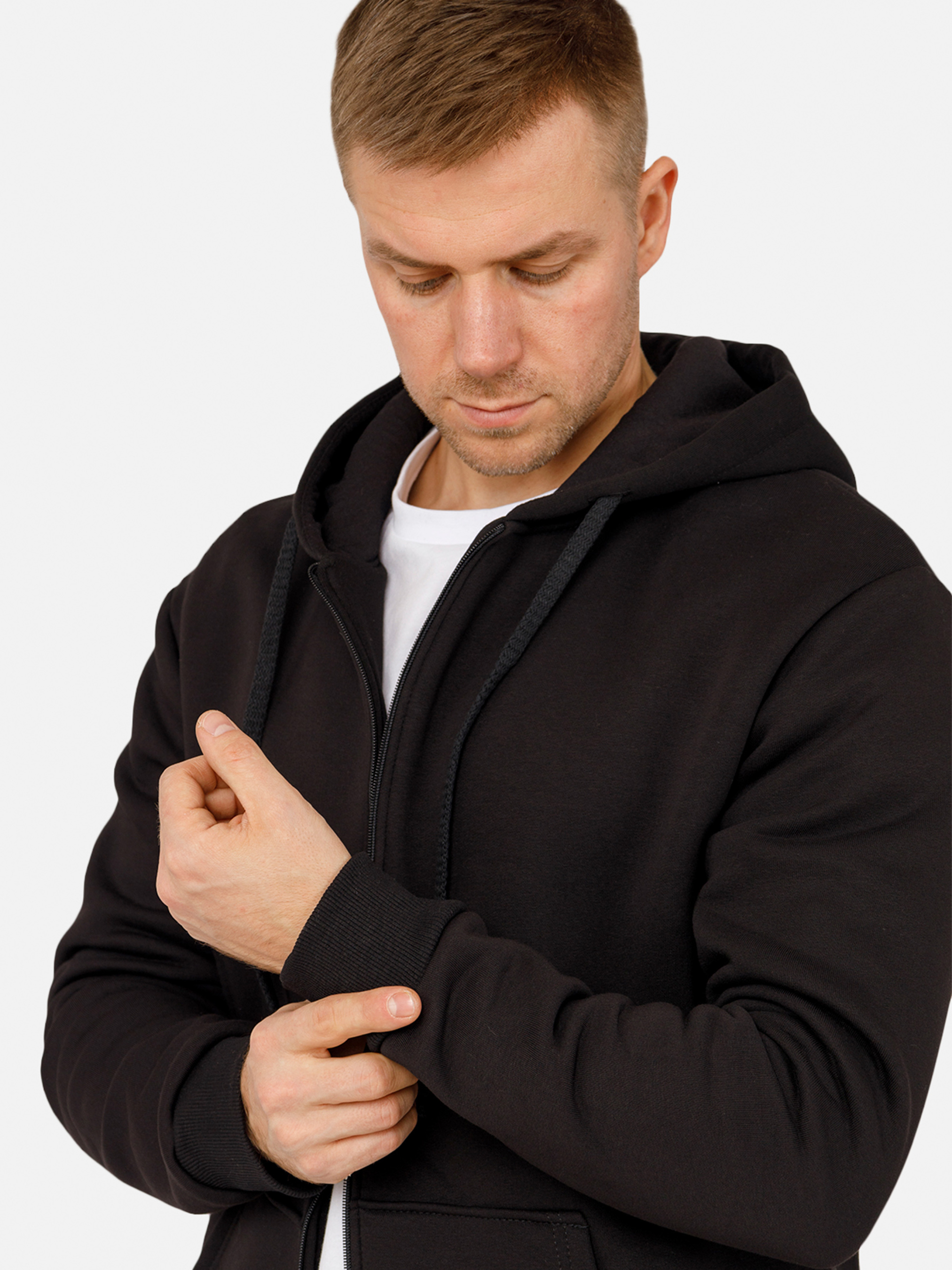 Чоловіча толстовка на блискавці – ідеальне поєднання комфорту та стилю для повсякденного носіння. Виготовлена з м'якої та дихаючої тканини, вона забезпечує комфорт у будь-яку пору року. Завдяки зручній блискавці, толстовку легко одягати та знімати, а також регулювати рівень теплоізоляції. Модель має капюшон, що захищає від вітру, і практичні кишені для дрібниць або рук. Толстовка підходить для активного відпочинку, прогулянок або спортивних занять, а її універсальний дизайн дозволяє легко поєднувати з джинсами або спортивними штанами. Особливості: Колір толстовки: чорний, однотонний. Матеріал виготовлення: футер. Склад: 70 % бавовна, 30 % поліестер. Сезон: зима. Параметри моделі: Зріст: 180 сантиметрів. Розмір на моделі: 50. Країна виробник: Україна.