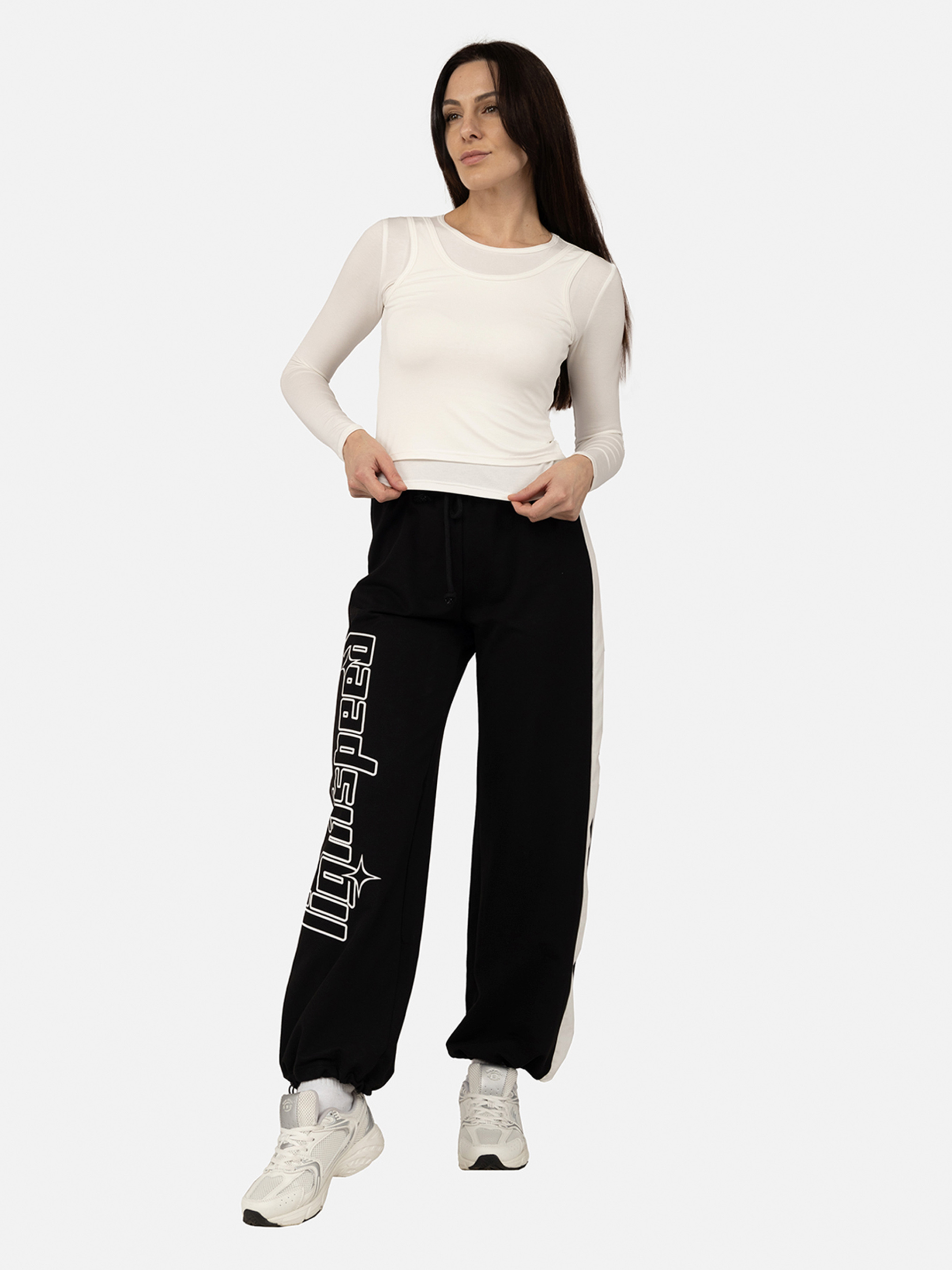 Штани спортивні жіночі – ідеальний вибір для активного способу життя та комфортного відпочинку. Вони виготовлені з якісних дихаючих матеріалів, що забезпечують м’якість, зручність та свободу рухів. Завдяки ергономічному крою штани чудово сідають по фігурі, а еластичний пояс із шнурком дозволяє регулювати посадку. Модель має резинки знизу, які запобігають підняття штанини догори. Ідеально підходять для тренувань, прогулянок чи домашнього відпочинку. Особливості виробу: Колір штанів: чорний, з декоративним принтом. Склад: 95 % бавовна, 5 % поліестер. Тип штанів: спортивний. Сезон: демісезон. Параметри моделі: Зріст: 174 сантиметри. Розмір на моделі: 46. Країна виробник: Туреччина.