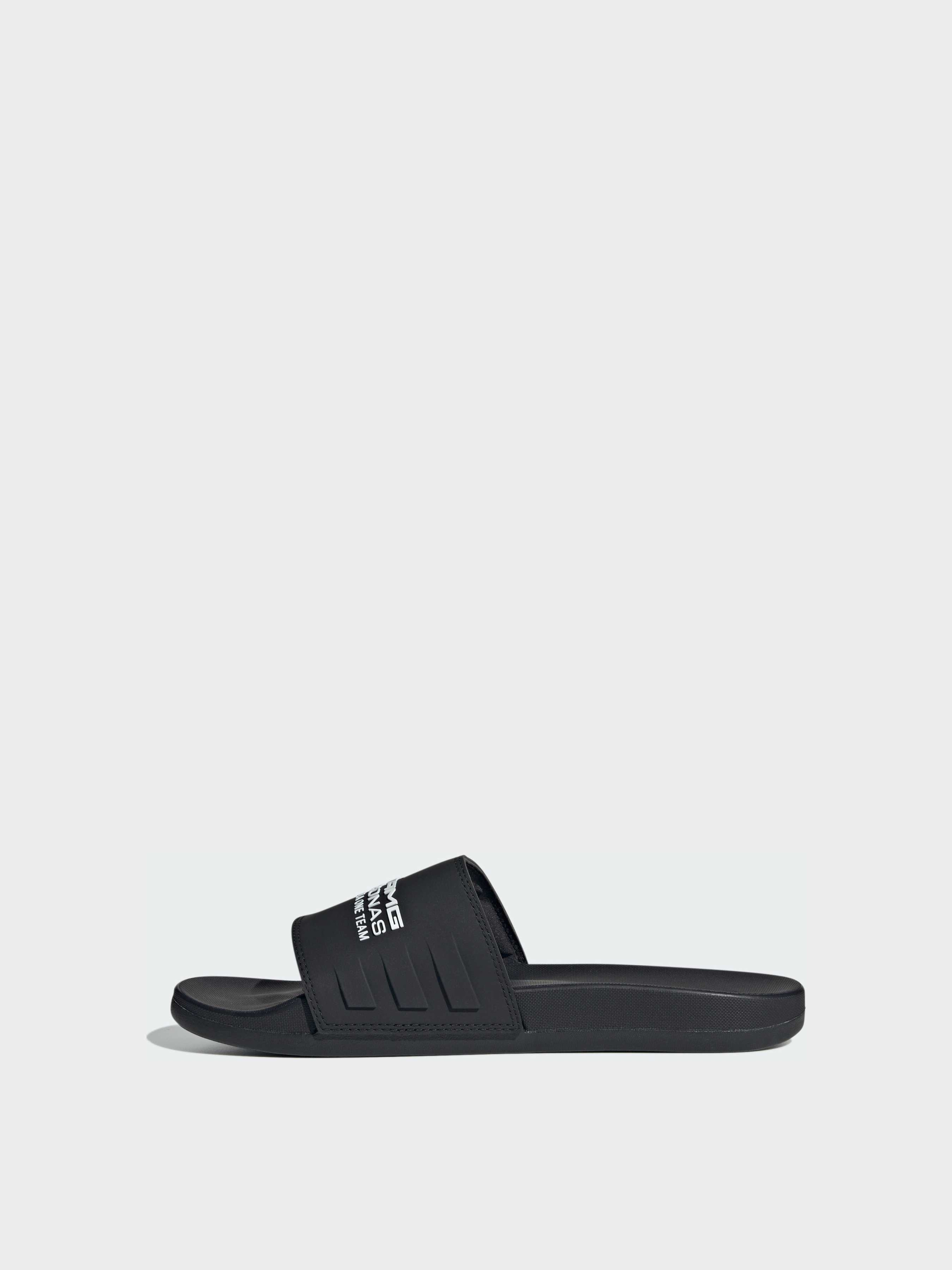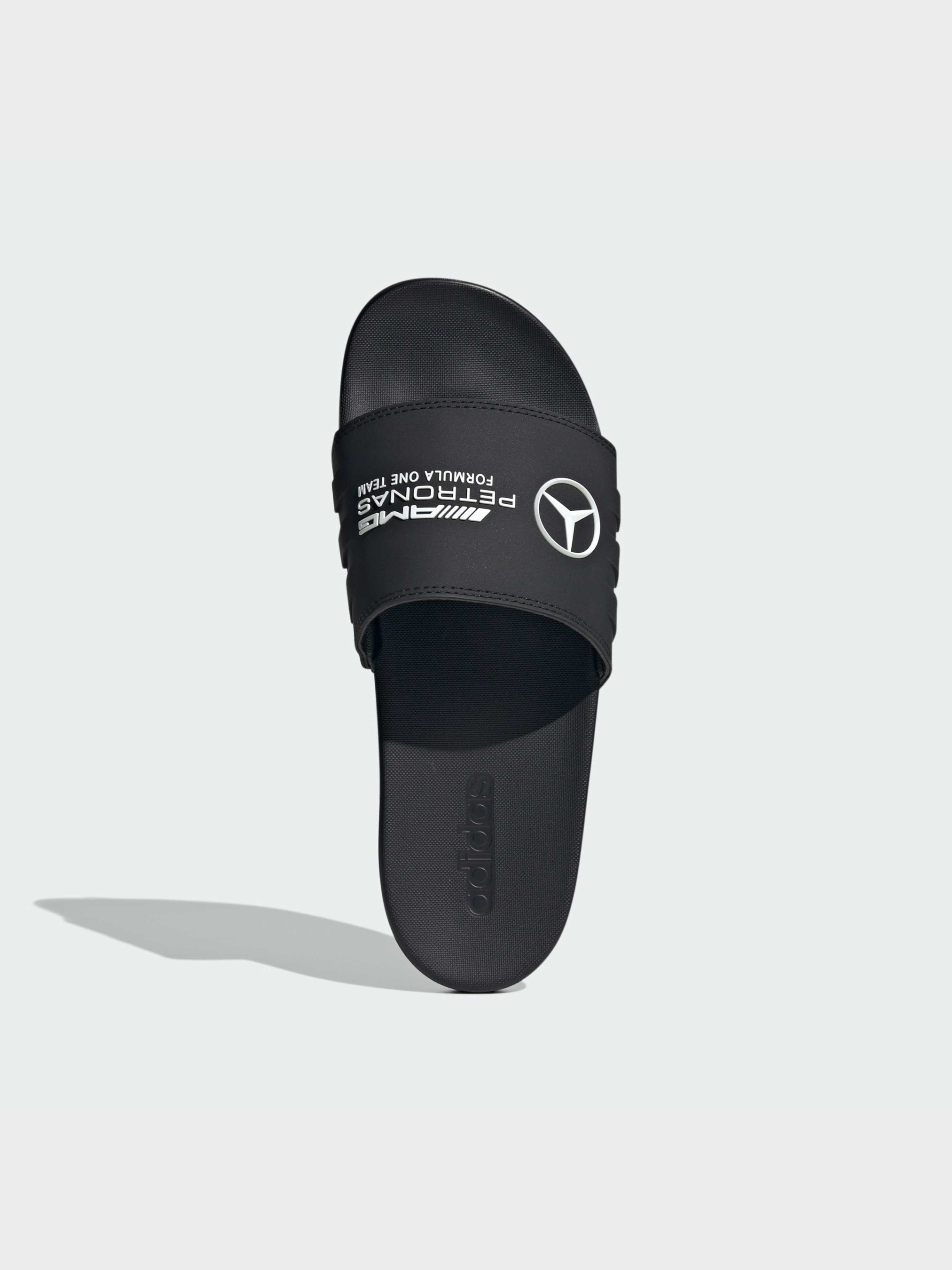 Ці пантолети від adidas Motorsports створені в класичному стилі культових Adilette. На одношаровому верху цих слайдерів adidas красується брендинг Mercedes - AMG Petronas Formula One Team. Контурна устілка забезпечує комфорт у день перегонів або в будь-який інший день. Йдуть розмір в розмір. Ми радимо замовити цю модель в твоєму звичайному розмірі.
