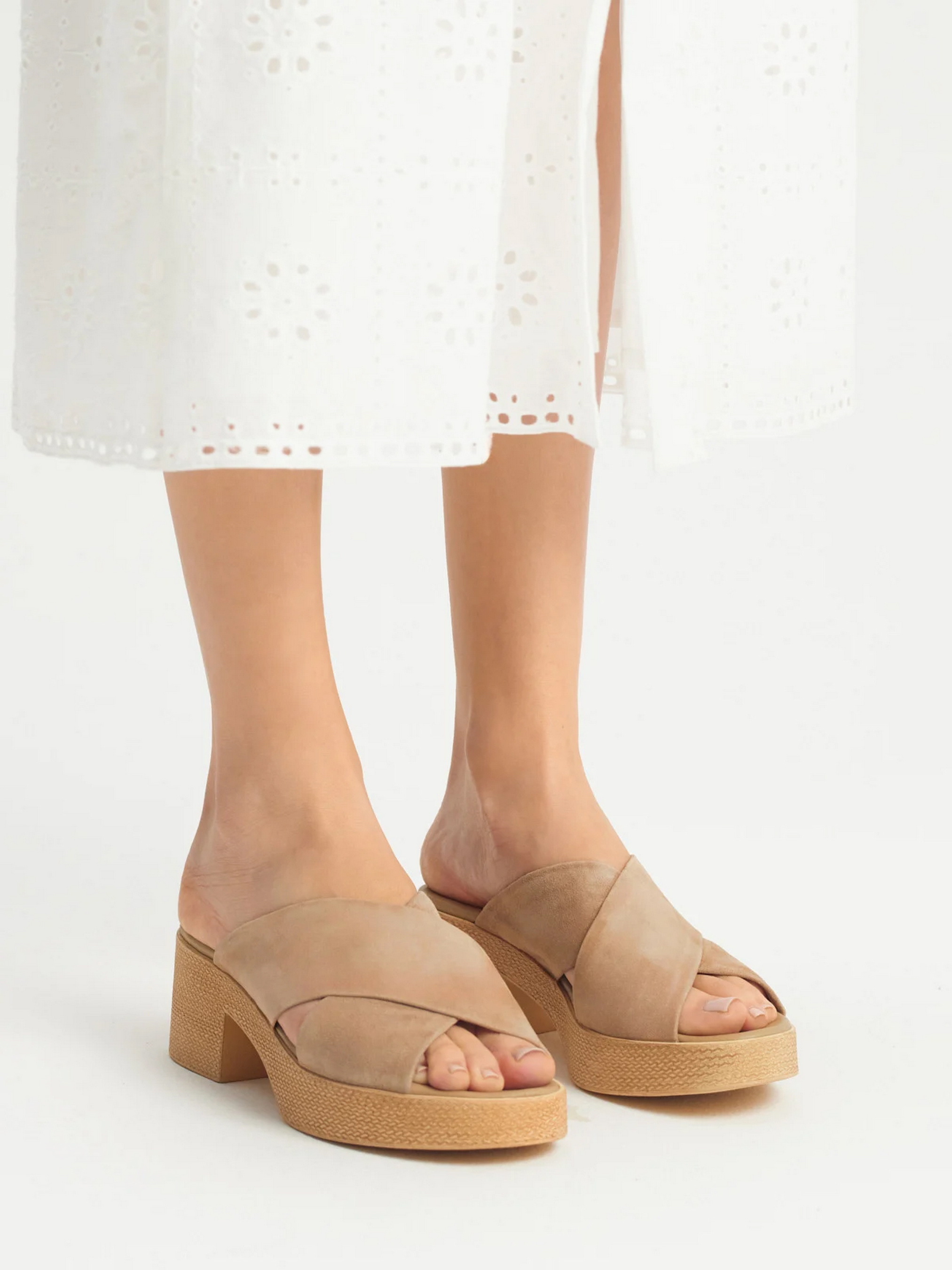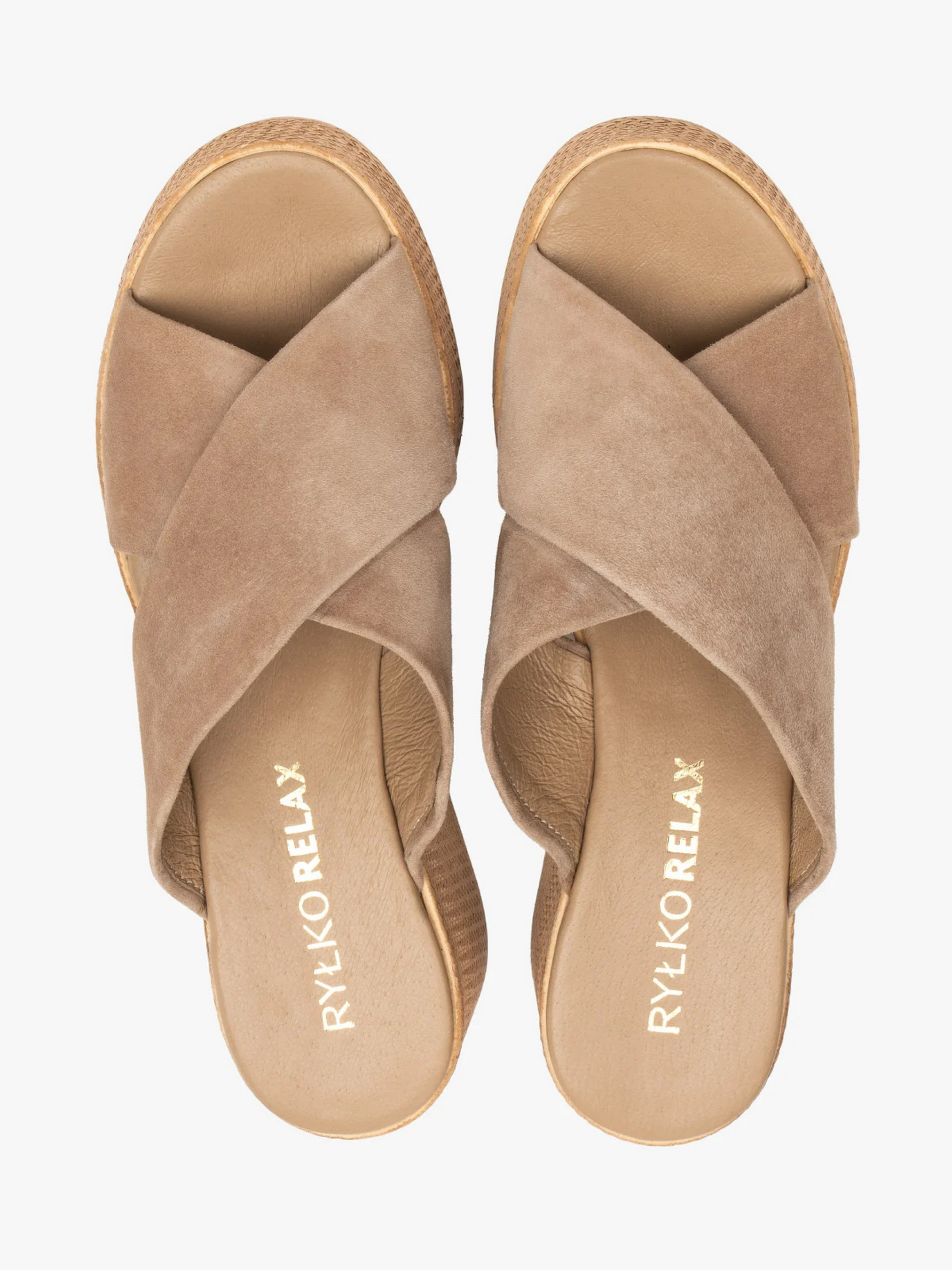 Оригінальні бежеві шльопанці з каблуком заввишки 5,5 см. Зручна форма без шнурівки – ідеальний варіант для літа. Модель належить до лінійки Relax, а це означає, що взуття характеризується м’якою, гнучкою підошвою, хорошою амортизацією та спеціальними вставками, які підтримують стопу протягом усього дня. Бежевий колір не виділяється на шкірі, завдяки чому оптично подовжує ноги. Натуральна замша преміум якості, з якої виготовлені шльопанці, має цікаву текстуру, що робить їх ще більш унікальними. Всередині підкладка та устілка з натуральної шкіри. Модель підходить на стандартну (середню) повноту стопи. Щоб правильно обрати свій розмір, обов'язково використовуйте розмірну сітку RYŁKO EU: 35-23,3 см; 36-24 см; 36,5-24,3 см; 37-24,7 см; 37,5-25 см; 38-25,3 см; 38,5-25,7 см; 39-26 см; 39,5-26,3 см; 40-26,7 см; 40,5-27 см; 41-27,3 см; 42-28 см.