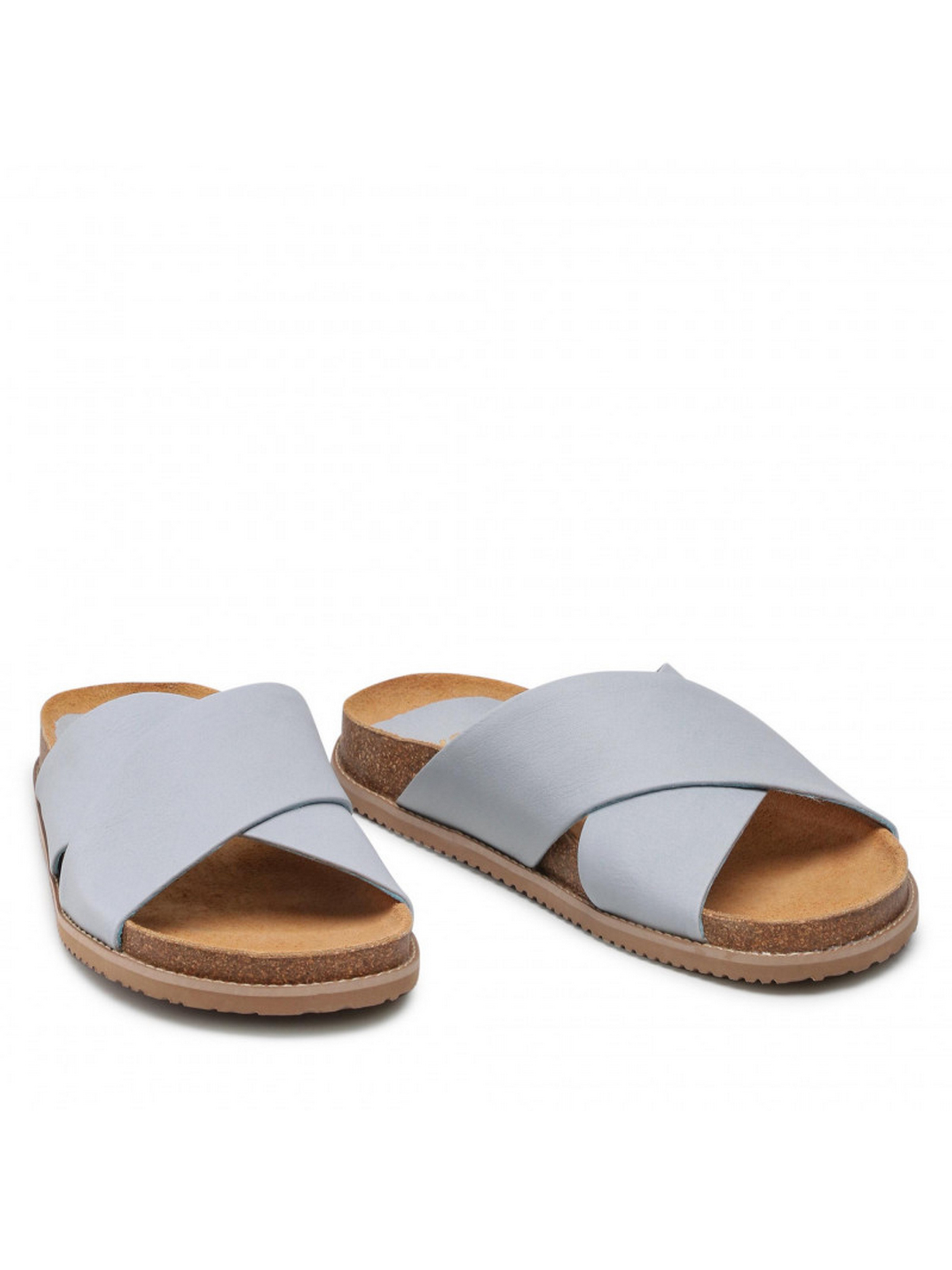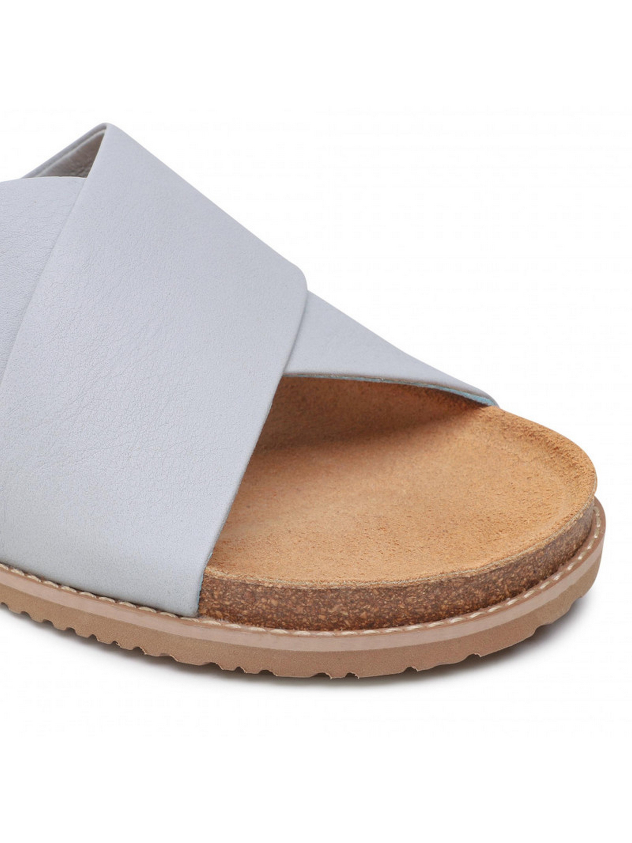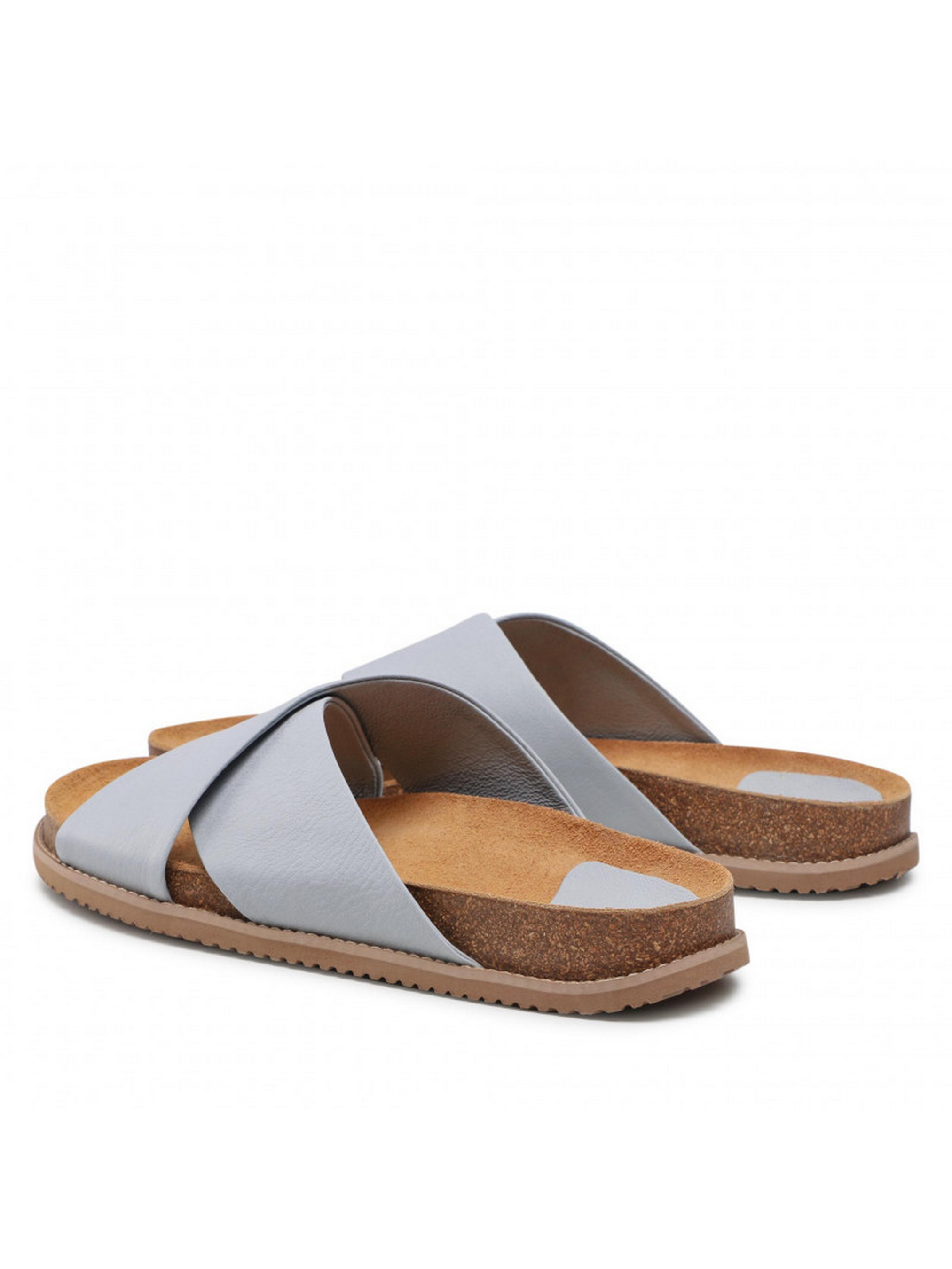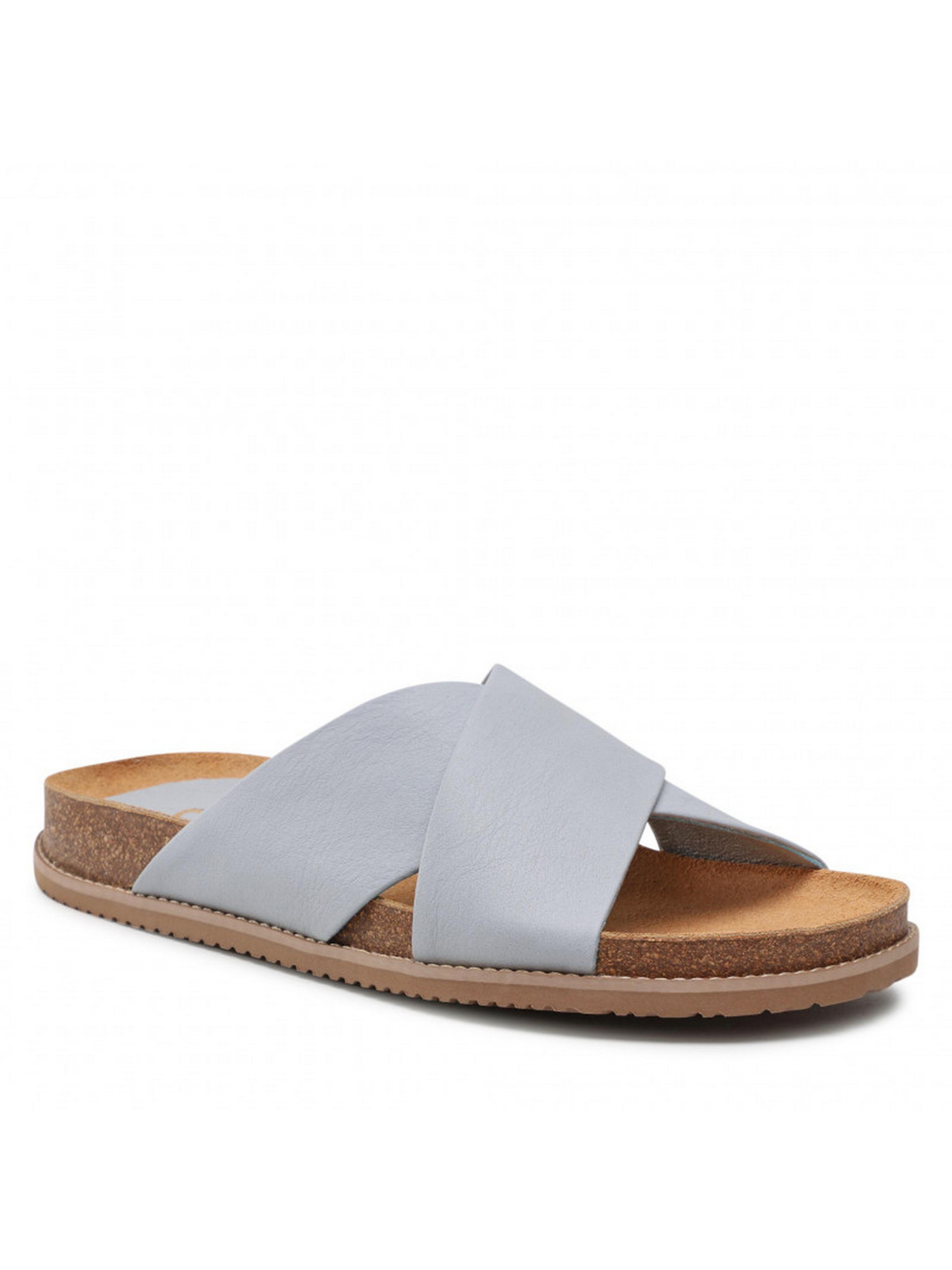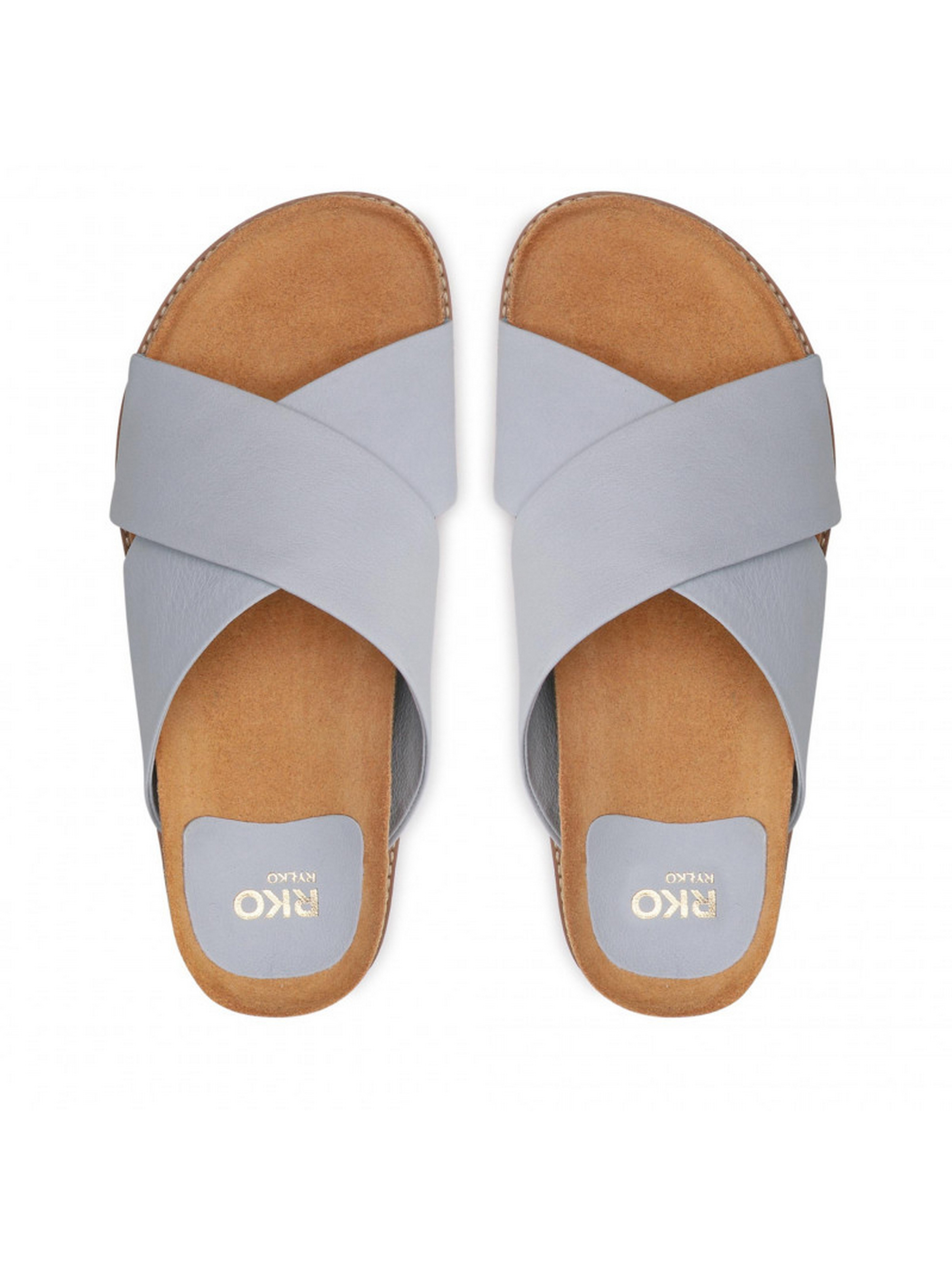 Шльопанці RYŁKO із серії #RKO блакитного кольору на плоскій, дуже зручній та оригінальній підошві, висотою з боку задньої частини – 2 см. Виготовлені з лицьової шкіри високої якості, підходять на стандартну (середню) повноту стопи. Склад моделі - Верх: натуральна шкіра/Підкладка: натуральна шкіра/Устілка: натуральна шкіра/Підошва: термоеластопласт (ТЕП)/Вигляд носової частини: кругла. Розмірна сітка RYLKO EU: 35-23,3 см. 36-24 см. 36,5-24,3 см. 37-24,7 см. 37,5-25 см. 38-25,3 см. 38,5 -25,7 см. 39-26 см. 39,5-26,3 см. 40-26,7 см. 40,5-27 см. 41-27,3 см. 42-28 см.