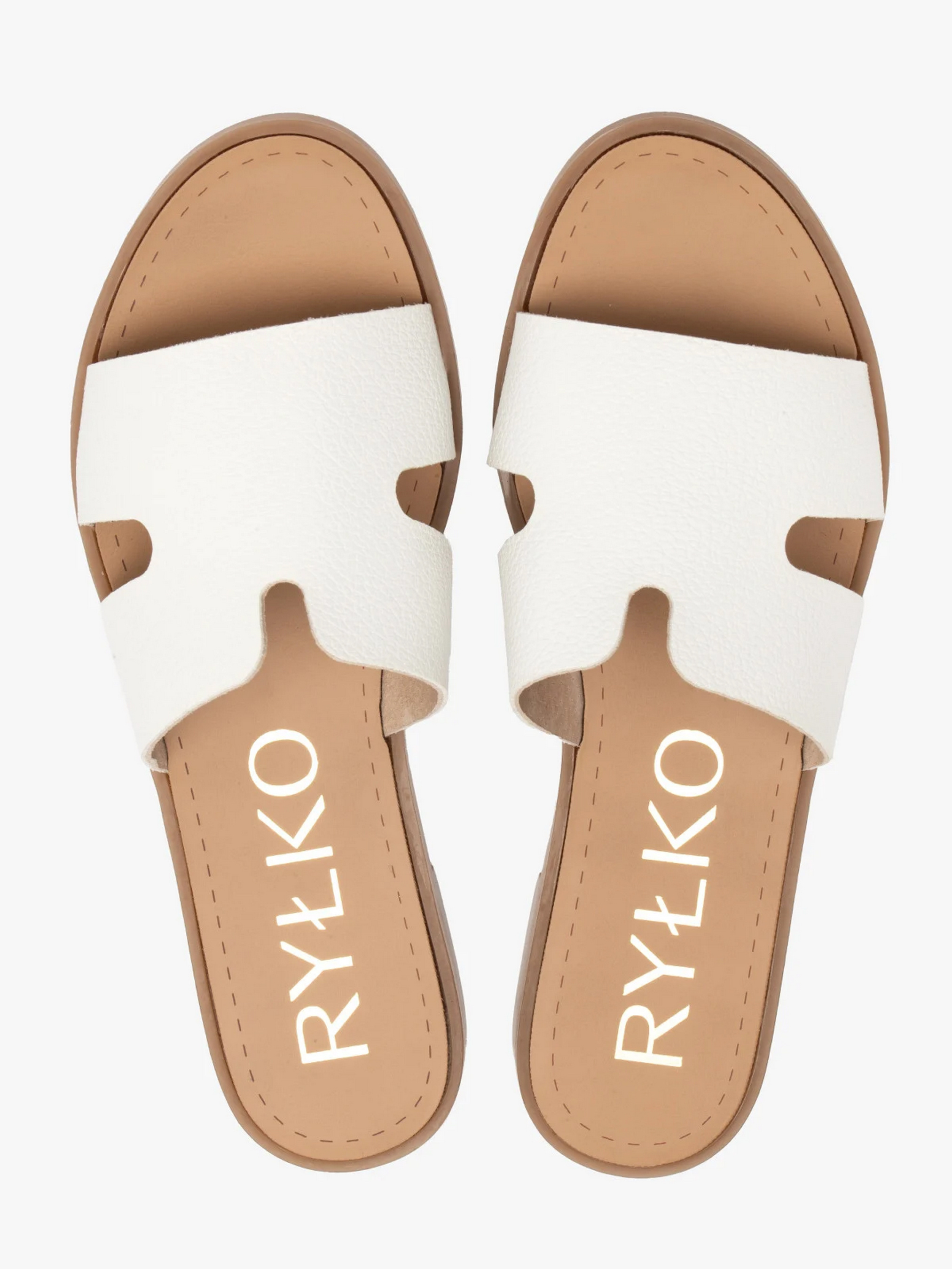 Шльопанці польського виробника RYLKO білого кольору. Верх моделі виготовлений із синтетичної шкіри високої якості. Всередині натуральна шкіра. Модель підходить на стандартну (середню) повноту стопи. На пласкій, еластичній та легкій підошві з невеликими підборами заввишки 1 см. Розмірна сітка RYŁKO EU: 35-23,3 см; 36-24 см; 36,5-24,3 см; 37-24,7 см; 37,5-25 см; 38-25,3 см; 38,5-25,7 см; 39-26 см; 39,5-26,3 см; 40-26,7 см; 40,5-27 см; 41-27,3 см; 42-28 см.