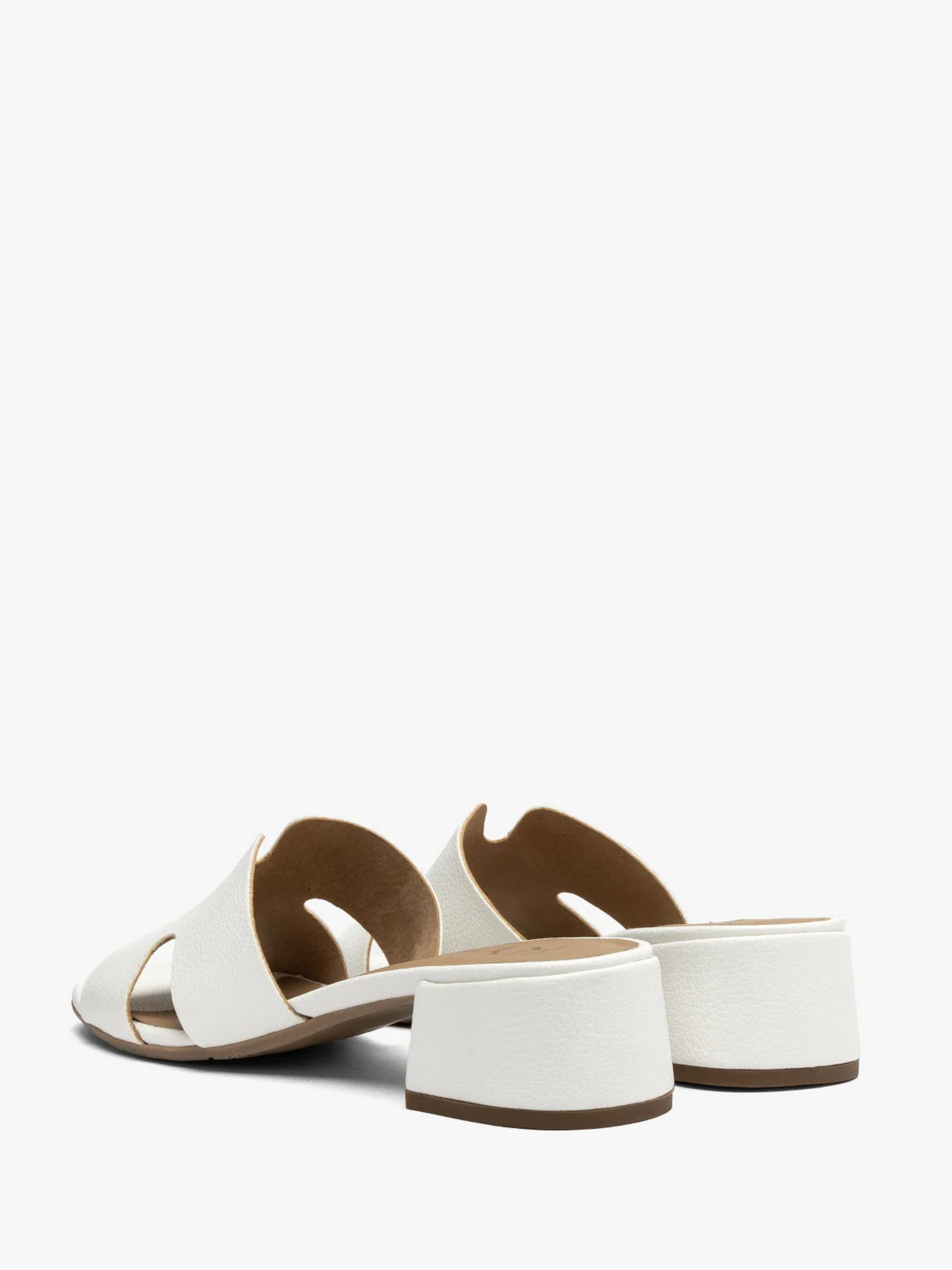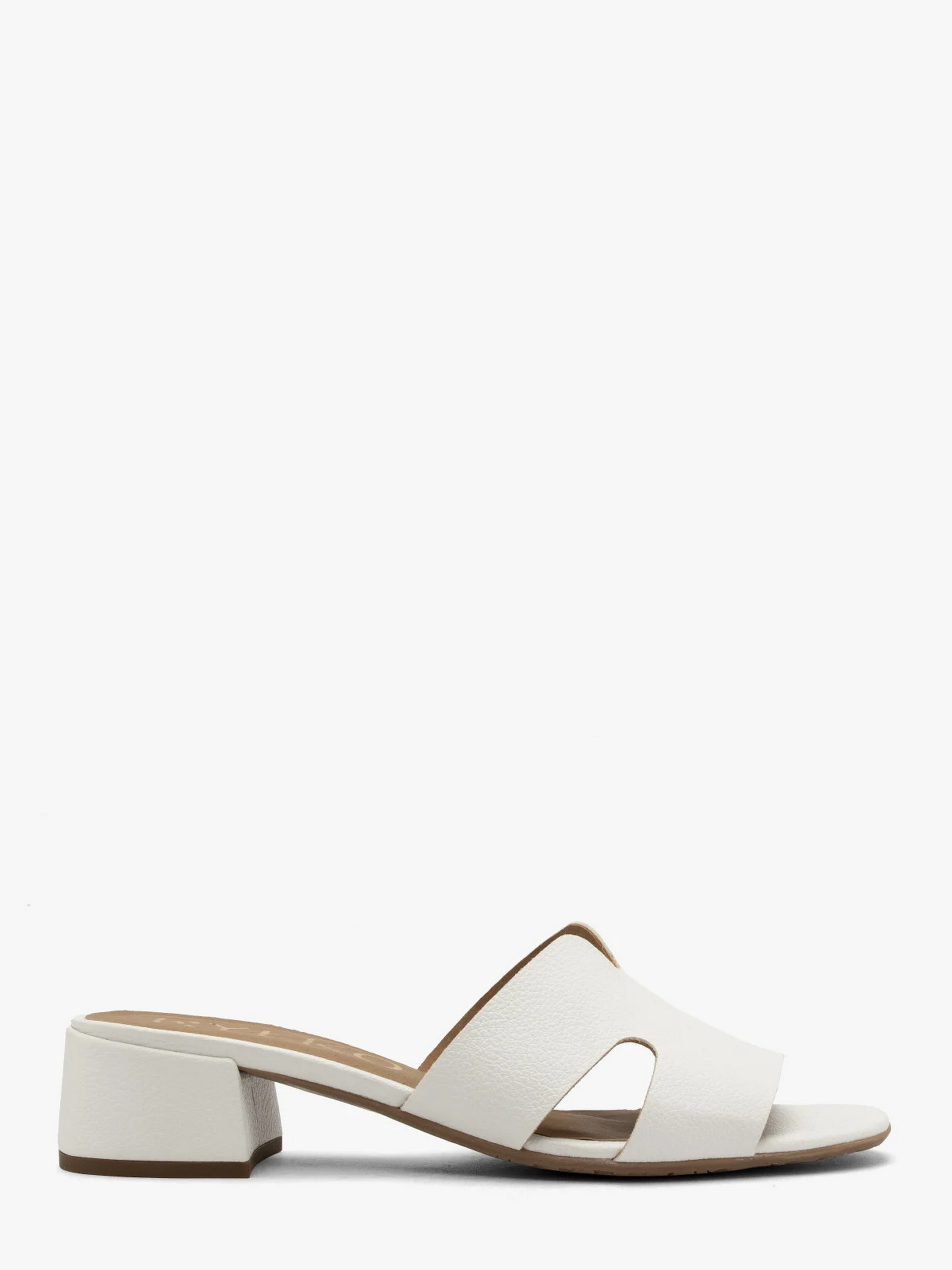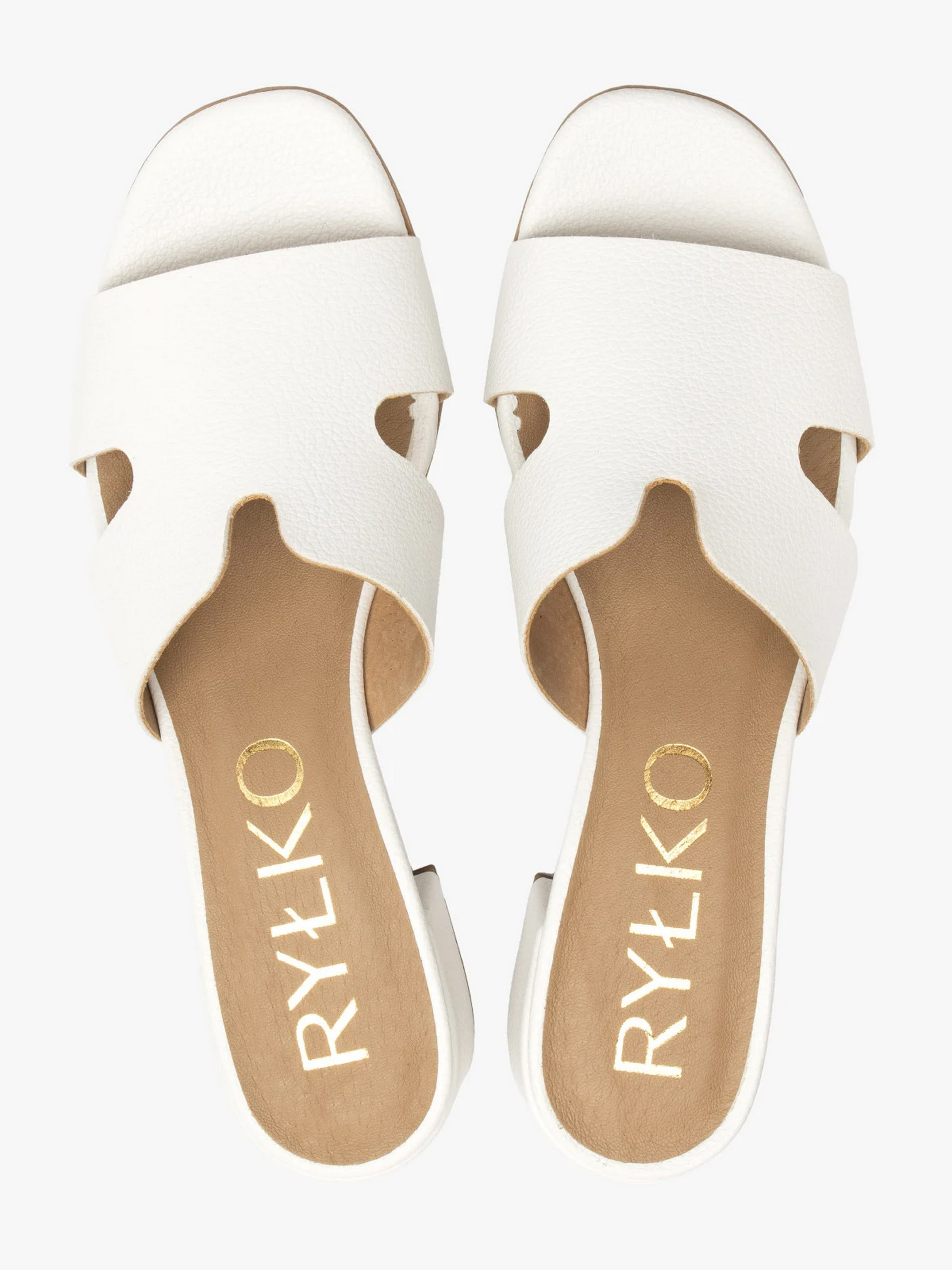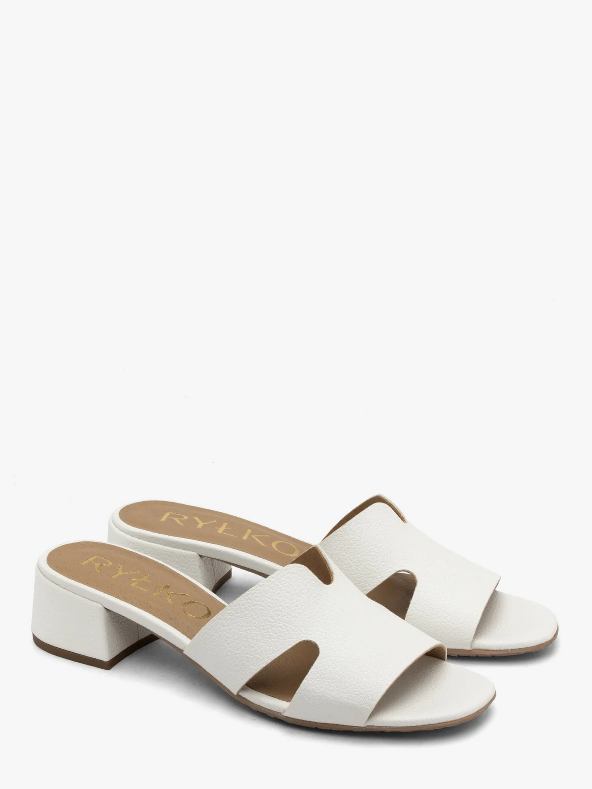 Жіночі шльопанці на невеликих, стійких і широких підборах. Виконані з натуральної зернистої шкіри преміум якості. Всередині також натуральна шкіра. Підбори заввишки 3 см трохи подовжують сілует, зберігаючи при цьому комфорт. Шльопанці білого кольору, мають модну Н-подібну форму. Варто додати, що модель оснащена технологією R.SILENCE, тобто гнучкими вібропоглинаючими та шумопоглинаючими підборами, що забезпечують ще більший комфорт. Щоб правильно обрати свій розмір, обов'язково використовуйте розмірну сітку RYŁKO EU: 35-23,3 см; 36-24 см; 36,5-24,3 см; 37-24,7 см; 37,5-25 см; 38-25,3 см; 38,5-25,7 см; 39-26 см; 39,5-26,3 см; 40-26,7 см; 40,5-27 см; 41-27,3 см; 42-28 см.