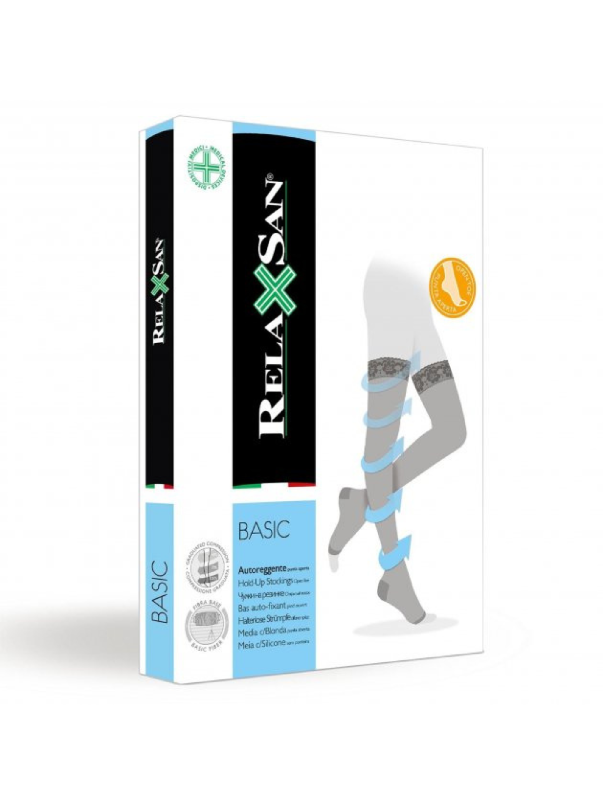Рівень компресії: 2 (медичний) Тиск: 22-27 мм рт.ст. Щільність: 280 DEN Пальці: відкриті Колір: тілесний Склад: поліамід – 76%, еластан – 24% Компресійні панчохи Relaxsan BASIC з відкритими пальцями (2 рівень компресії, 280 DEN) призначені для ефективного лікування варикозного розширення вен, флебіту, хронічної венозної недостатності, набряків та інших венозних захворювань. Ця модель особливо підходить для використання під час тривалих подорожей, у ситуаціях підвищеного навантаження на ноги, а також після оперативних втручань. Завдяки відкритому миску забезпечується максимальний комфорт і свобода рухів пальців, що дозволяє уникнути зайвого тиску та натирань. Основні переваги: Градуйована компресія (22-27 мм рт. ст.) покращує кровообіг, зменшує втому і набряки. Гіпоалергенна силіконова манжета безпечно фіксує панчохи, запобігаючи їх сповзанню. Посилена п'ята додає виробу міцності, забезпечує комфорт і довговічність. Відкритий мисок забезпечує додатковий комфорт і зручність. Виробництво в Італії – гарантія надійності та відповідності медичним стандартам.
