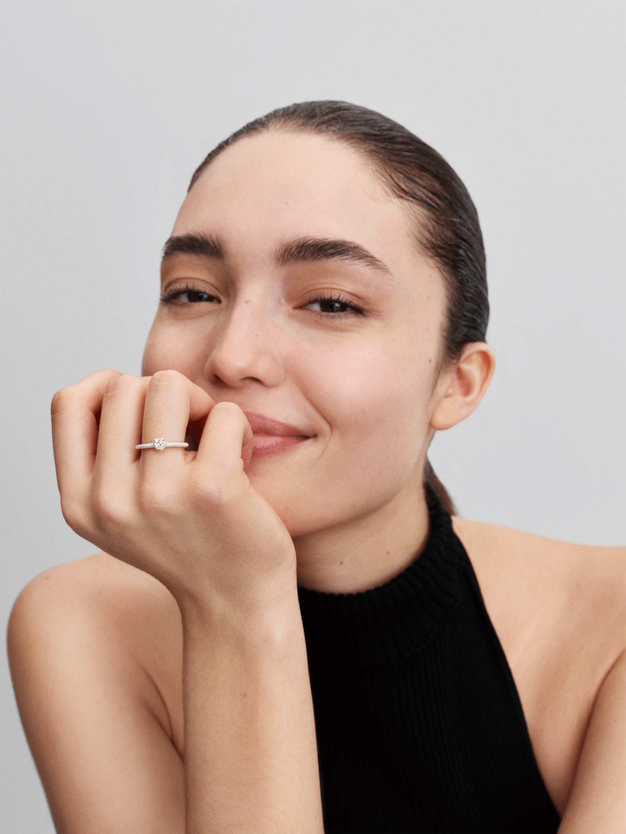 Носіть універсальний символ кохання та зв'язку. Ця каблучка-солітер прикрашена блискучим каменем у формі серця в обрамленні емалевих деталей.