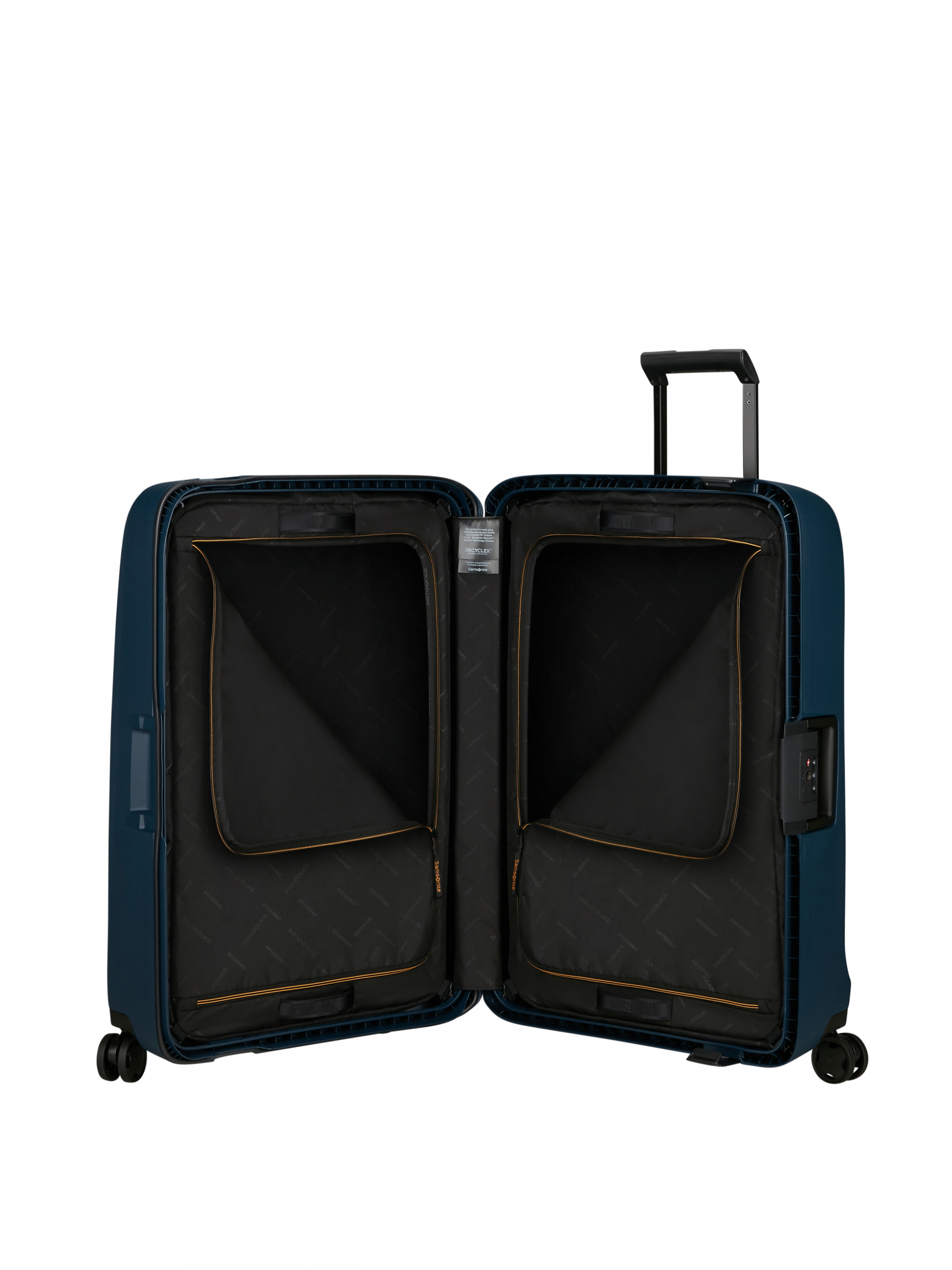 Велика валіза 75 см ESSENS MIDNIGHT BLUE складається перероблених матеріалів майже на 90%. Міцний та легкий корпус, вологозахист і кодовий замок збереже ваші речі в безпеці під час подорожі. Всередині валізи розміщуються великі органайзери на блискавці, а колеса швидко знімаються без інструментів. Безпека: 3 защіпки і кодовий замок TSA008; колеса можна зняти, щоб уникнути їх пошкодження під час транспортування; захищений від вологи корпус з ущільнювачем. Екстер’єр: текстурована поверхня корпусу; стильний дизайн в яскравих відтінках; набір стікерів в комплекті для персоналізації валізи; вбудована бирка для ідентифікації власника. Інтер'єр: 2 відділення з органайзерами, які застібаються на блискавку; фіксація органайзерів ременями на декількох рівнях. Комфортне транспортування: Унікальна система колес з амортизацією, яка гасить удари та знижує шум; телескопічна ручка з кнопкою фіксатором; верхня і бічна ручки для перенесення; ручки на верхній частині органайзерів.