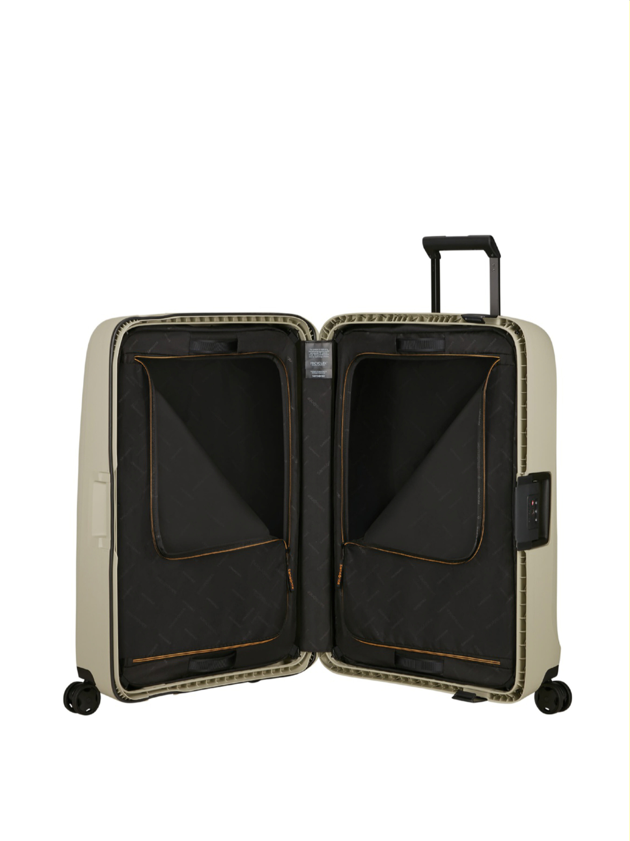 Велика валіза 75 см ESSENS WARM NEUTRAL складається перероблених матеріалів майже на 90%. Міцний та легкий корпус, вологозахист і кодовий замок збереже ваші речі в безпеці під час подорожі. Всередині валізи розміщуються великі органайзери на блискавці, а колеса швидко знімаються без інструментів. Безпека: 3 защіпки й кодовий замок TSA008; колеса можна зняти, щоб уникнути їх пошкодження під час транспортування; захищений від вологи корпус з ущільнювачем. Екстер’єр: текстурована поверхня корпусу; стильний дизайн в яскравих відтінках; набір стікерів в комплекті для персоналізації валізи; вбудована бирка для ідентифікації власника. Інтер'єр: 2 відділення з органайзерами, які застібаються на блискавку; фіксація органайзерів ременями на декількох рівнях. Комфортне транспортування: Унікальна система колес з амортизацією, яка гасить удари та знижує шум; телескопічна ручка з кнопкою фіксатором; верхня і бічна ручки для перенесення; ручки на верхній частині органайзерів.