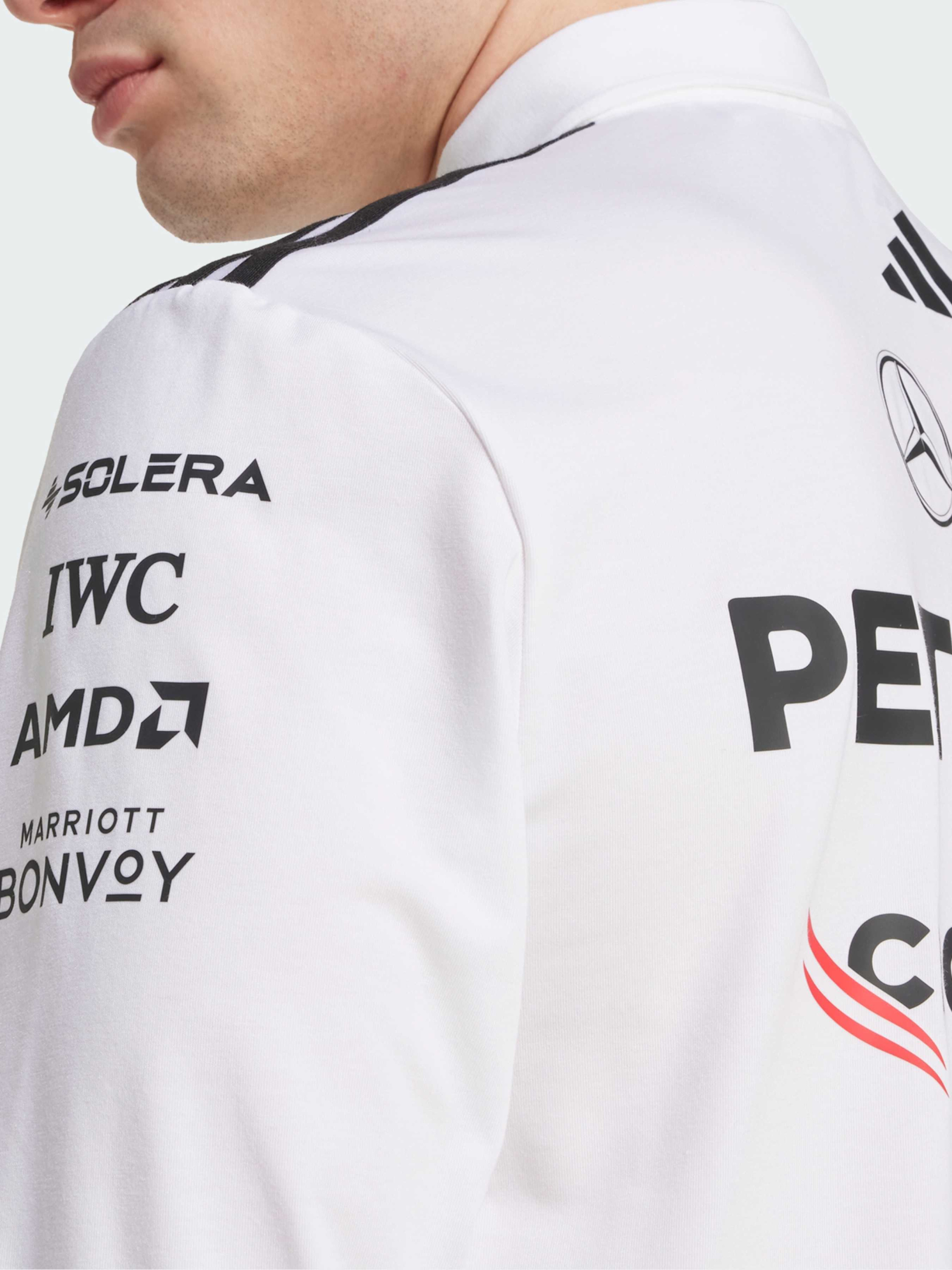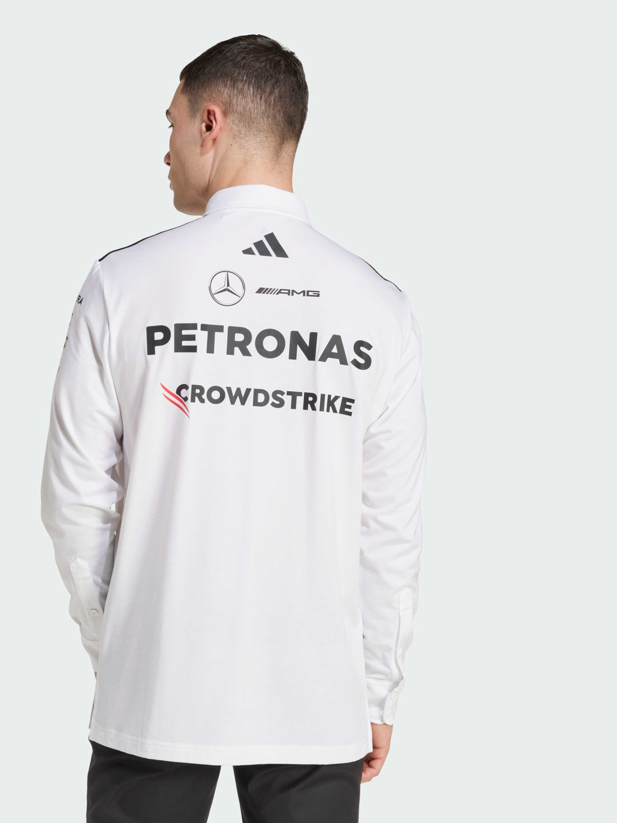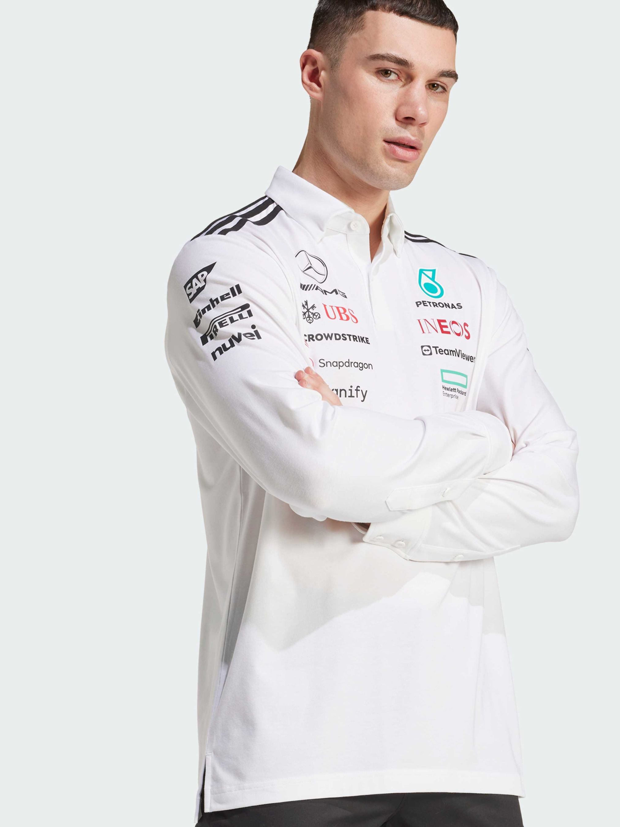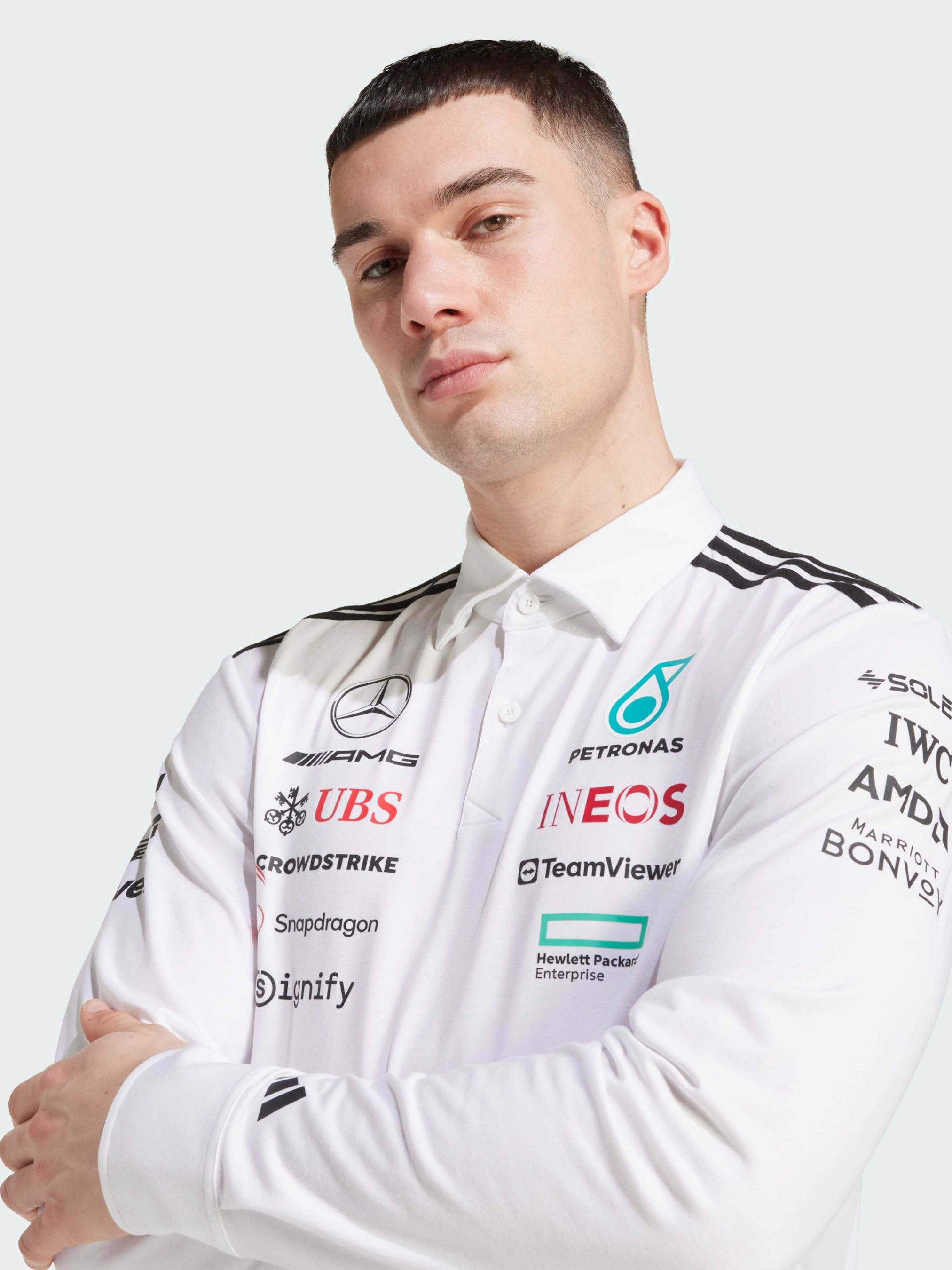 Характеристики 74% перероблений поліестер, 19% бавовна, 7% еластан Комір-поло з двома ґудзиками Розрізи з боків, подовжена спинка Стандартний крій Опис Це поло з довгим рукавом від adidas Motorsports схоже на ті, що носять інженери команди Mercedes - AMG Petronas Formula One Team. Матеріал із поліестеру та бавовни трохи тягнеться, забезпечуючи комфорт рухів, а розрізи з боків додають трохи додаткової свободи. Логотип Mercedes-AMG Petronas Formula One Team та логотипи спонсорів на грудях роблять образ абсолютно автентичним. Цей продукт виготовлено щонайменше на 70% із перероблених матеріалів. Повторно використовуючи вже створені матеріали, ми допомагаємо скоротити кількість відходів і нашу залежність від обмежених ресурсів, а також зменшити негативний вплив продуктів, які ми виробляємо. Йде розмір в розмір. Ми радимо замовити цю модель в твоєму звичайному розмірі.