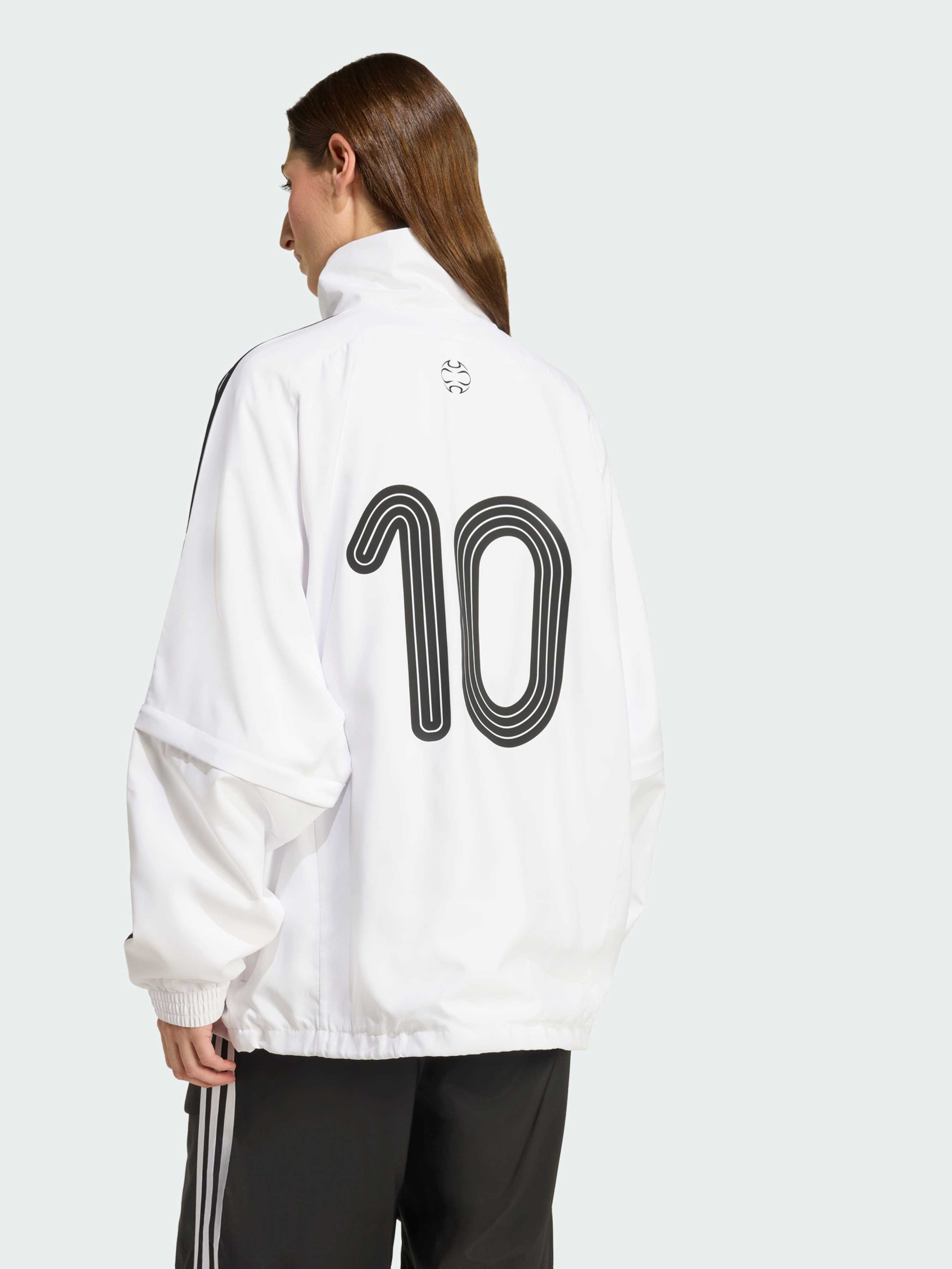 Характеристики 100% перероблений поліестер Застібка-блискавка та комір-стійка Крій оверсайз Легка сітчаста підкладка Опис Цього сезону сміливий дух футболу з'єднується з упізнаваним стилем Adilenium завдяки оновленій версії знаменитої лінії Teamgeist - культового дизайну, який перевернув уявлення про футбол. Цю тренувальну куртку adidas виготовлено з міцного твіла із сітчастою підкладкою для додаткової вентиляції. Рукава, що застібаються на блискавці, дають змогу змінити стиль залежно від настрою. Лінії та графіка Teamgeist передають справжній дух гри. Відрегулюй шнурки по низу, щоб змінити силует.
