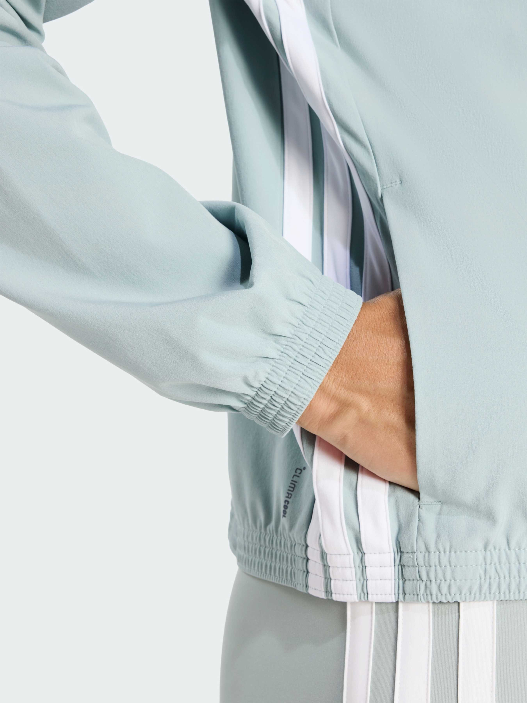 Характеристики 87% перероблений поліестер, 13% еластан CLIMACOOL Застібка-блискавка та комір-стійка Передні кишені Стандартний крій Вшита внутрішня стрічка вбирає надлишки вологи М'який матеріал Еластичні манжети та нижній край Опис Ця куртка для розминки від adidas поєднує класичний стиль із трьома смужками та комфорт, який підходить як для тренування, так і для активного дня. М'яка тканина забезпечує свободу рухів, а технологія CLIMACOOL відводить піт, підтримуючи сухість і прохолоду, щоб ти могла зосередитися на своїх цілях і не відволікалася від роботи. CLIMACOOL допомагає впоратися з потовиділенням завдяки матеріалам, які швидко вбирають і відводять піт. Швидковисихаючі волокна забезпечують відчуття свіжості.