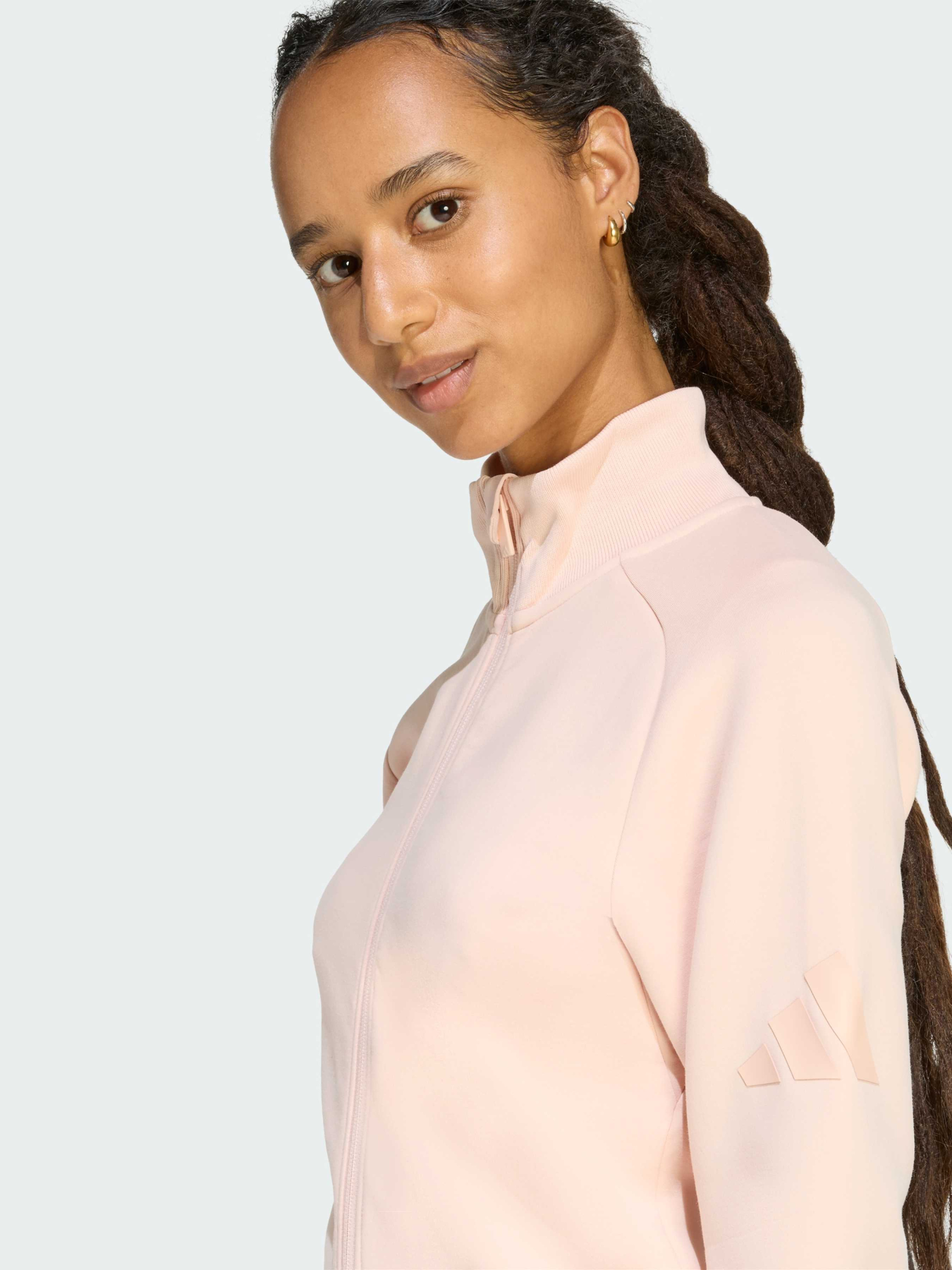Характеристики 51% перероблений поліестер, 25% модал, 15% бавовна, 9% еластан Комір-стійка Двостороння блискавка Довжина по спині - 52 см Облягаючий крій Спейсер 3 Bar Logo Рукав-реглан і вставка під пахвою Опис Сучасна вишуканість поєднується з невимушеною розкішшю в олімпійці Soft Lux Slim. Виготовлена з м'якої на дотик тканини, ця олімпійка стане твоїм незамінним супутником як у вільний час, так і під час переходу до спортивних занять і назад. Розроблена з урахуванням чітких ліній і вишуканого виконання, вона має облягаючий крій, який комфортно прилягає до тіла, а комір-стійка додає елегантності. Двостороння блискавка дозволяє створювати різноманітні образи, будь то багатошаровий одяг або демонстрація спортивного стилю. Рукава-реглан, вставка в області пахв і логотип 3 Bar в тон забезпечують позачасову універсальність. У цій олімпійці поєднуються мінімалістичний дизайн і високоякісні матеріали, що переосмислюють твої основні елементи гардеробу.