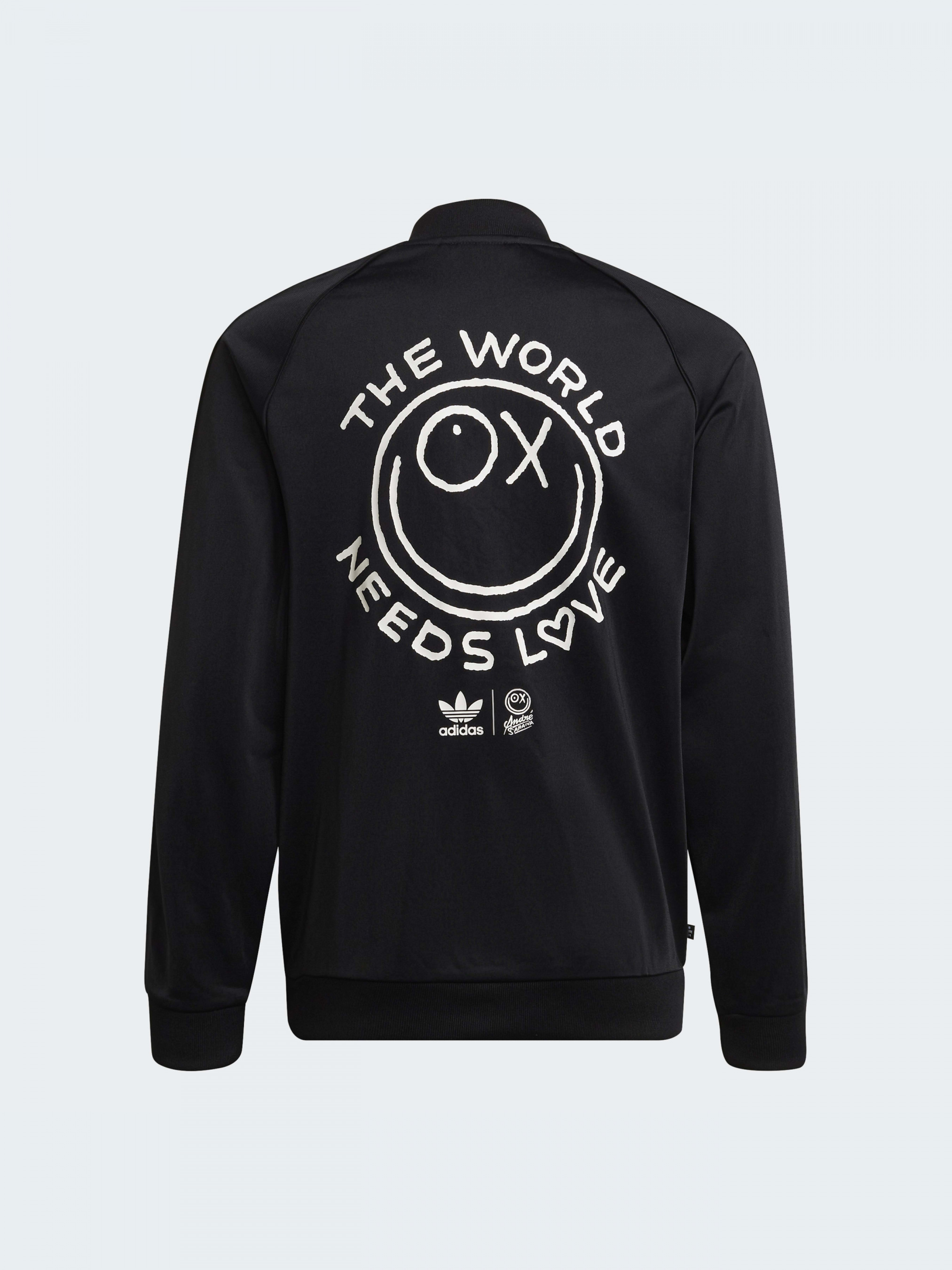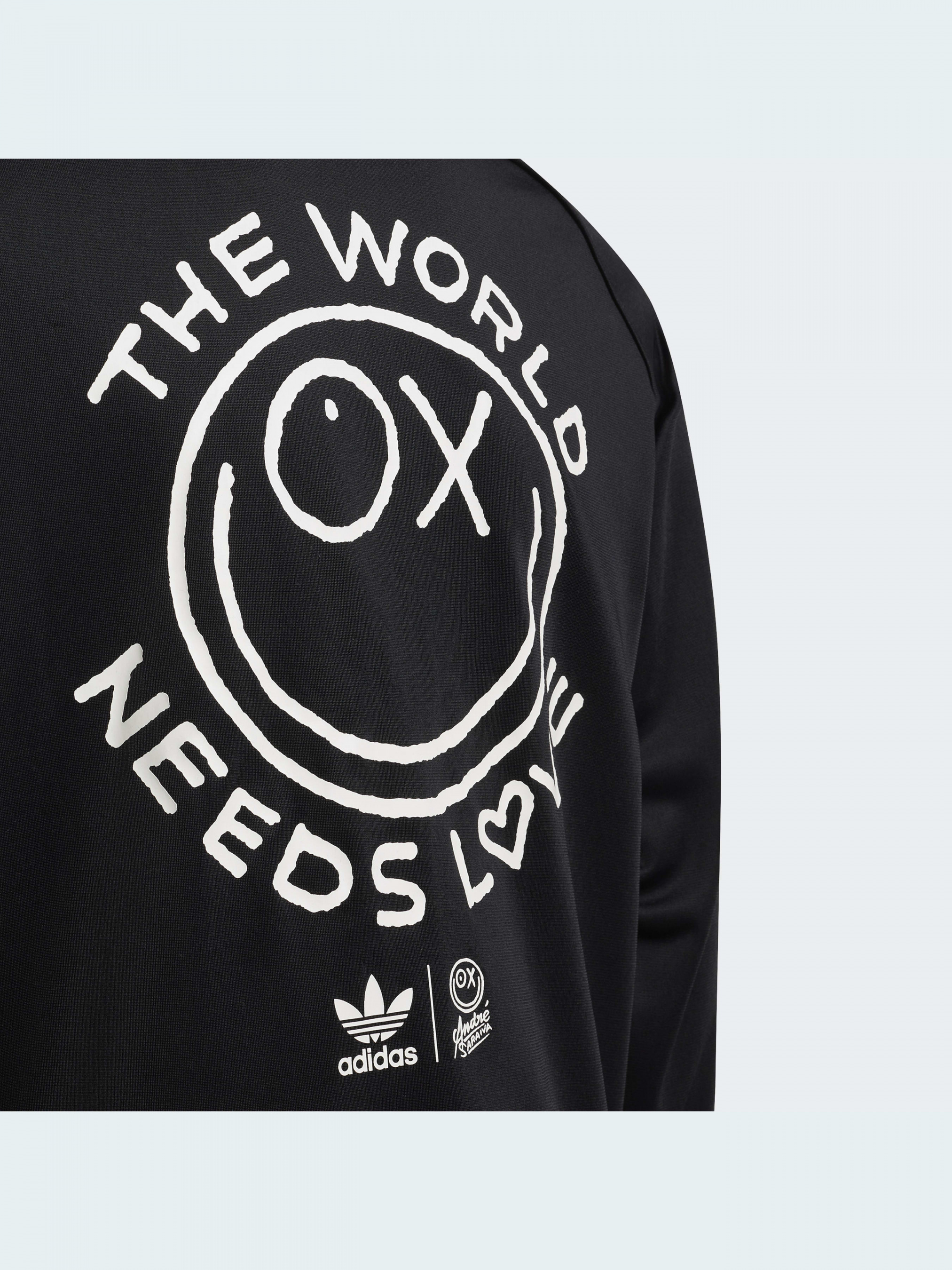Ікона графіті Андре Сарайва, також відомий, як Містер А, прикрасив цю спортивну олімпійку adidas для підлітків, і його роботи закликають нас об'єднатися у любові до Землі. Так що одягайся в класичний стиль і неси любов, куди б ти не пішов. Виготовлена зі 100% перероблених матеріалів, ця продукція є лише одним з наших рішень, покликаних допомогти покінчити з пластиковими відходами.