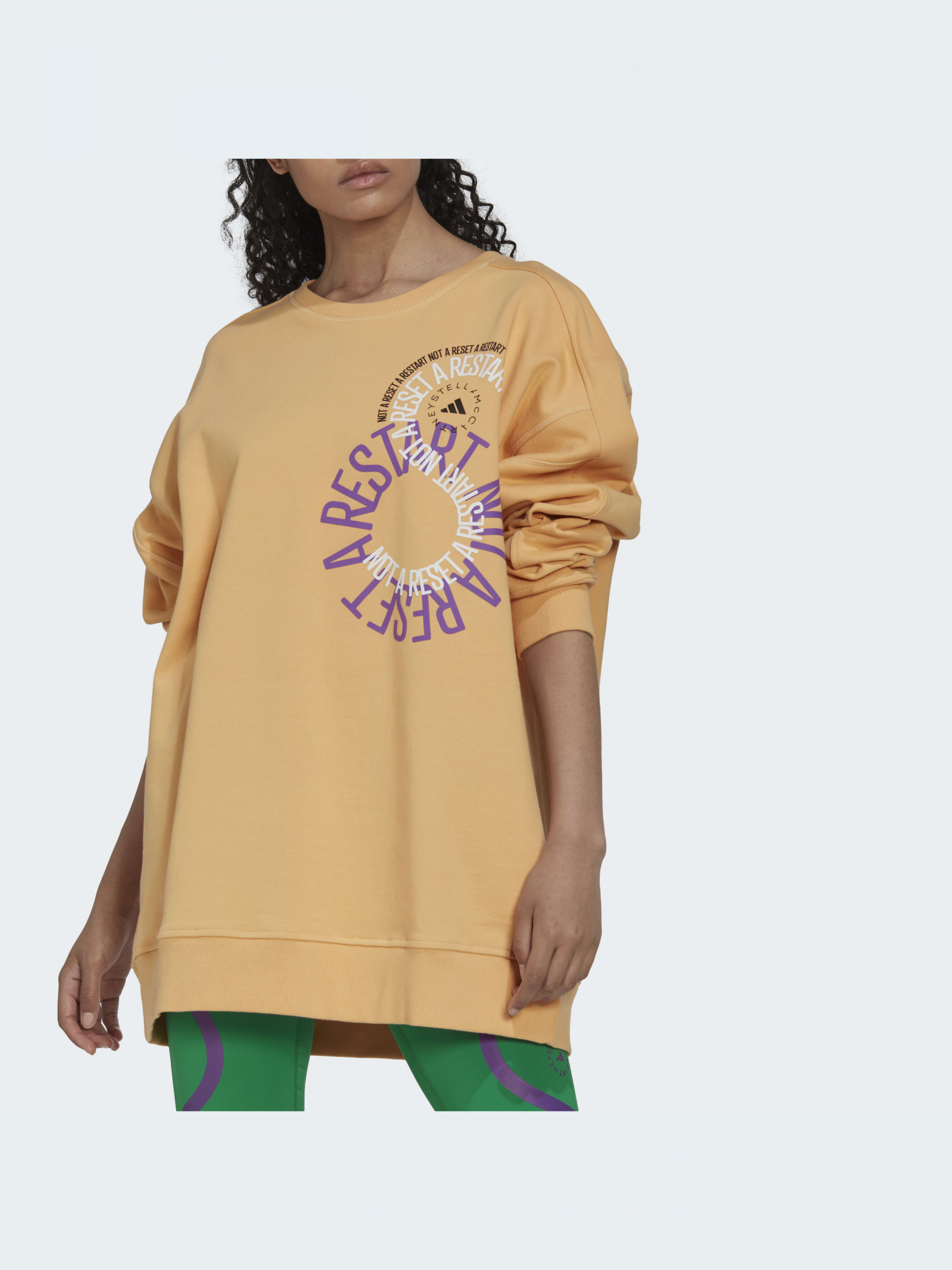 Щодо комфорту компроміси виключені, цей світшот з м'якої органічної бавовни French Terry, який не сковує рухів. Вихрова графіка підкреслює частину місії бренду adidas by Stella McCartney. Цей світшот був виготовлений з використанням UNITEFIT - системи розмірів унісекс, створеної для будь-якої статури, статі та форми тіла. Цю модель зроблено із натуральних і поновлюваних матеріалів у межах нашого прагнення скорочення використання обмежених ресурсів і боротьби з пластиковими відходами.