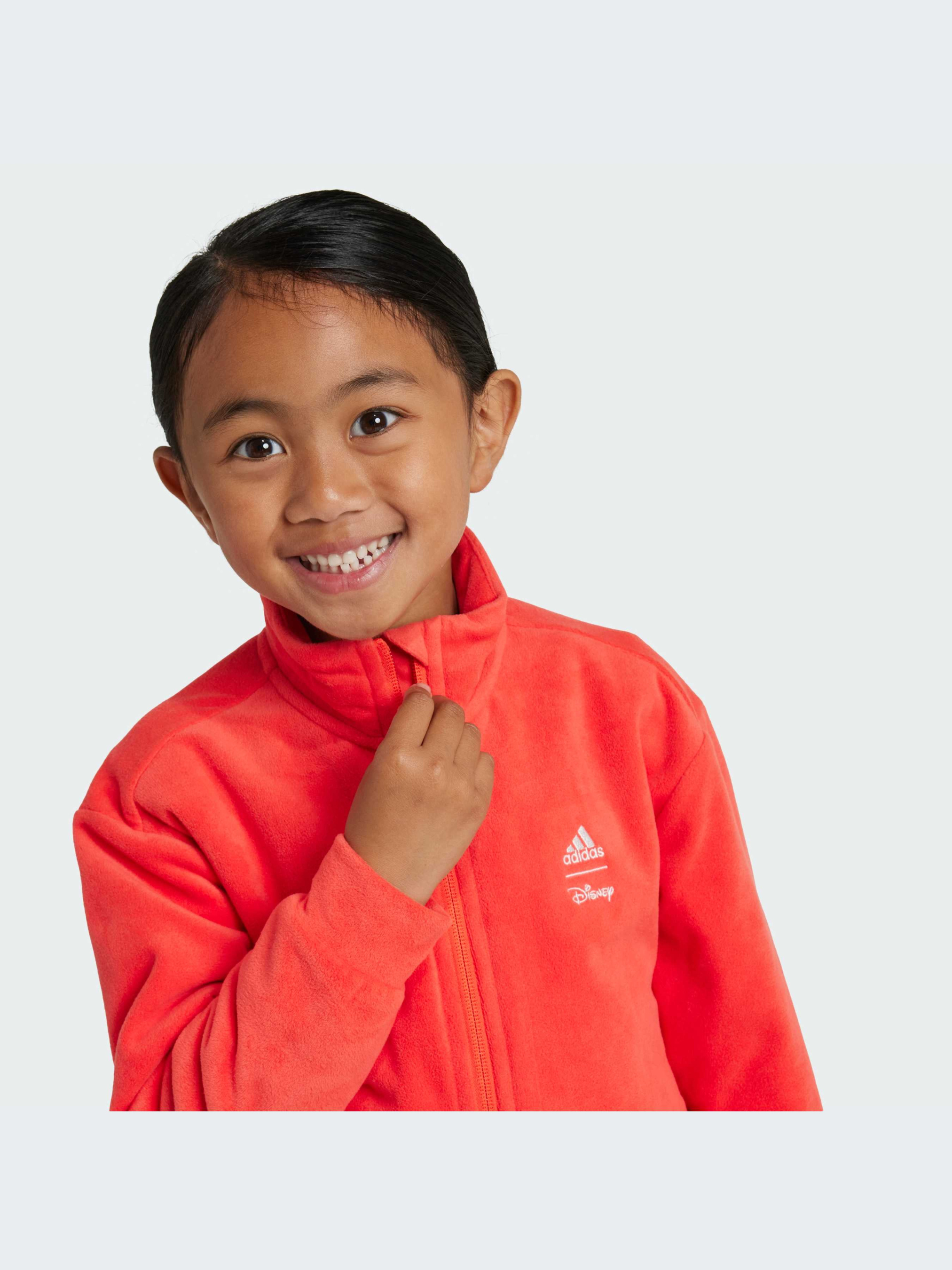 Ця дитяча спортивна кофта adidas, натхненна Міккі Маусом від Disney, ідеально підходить для пригод. Виготовлена з м'якого флісу, вона оснащена бічними кишенями для зручного зберігання необхідних дрібниць. Проста в носінні, ідеально підходить для активних дітей. Застібка-блискавка спрощує одягання, а комір-стійка надійно утримує тепло, коли на вулиці прохолодно. Цей продукт виготовлений зі 100% перероблених матеріалів. Повторне використання матеріалів, які вже були створені, допомагає нам зменшити кількість відходів і залежність від обмежених ресурсів, а також скоротити вплив продукції, яку ми виробляємо.