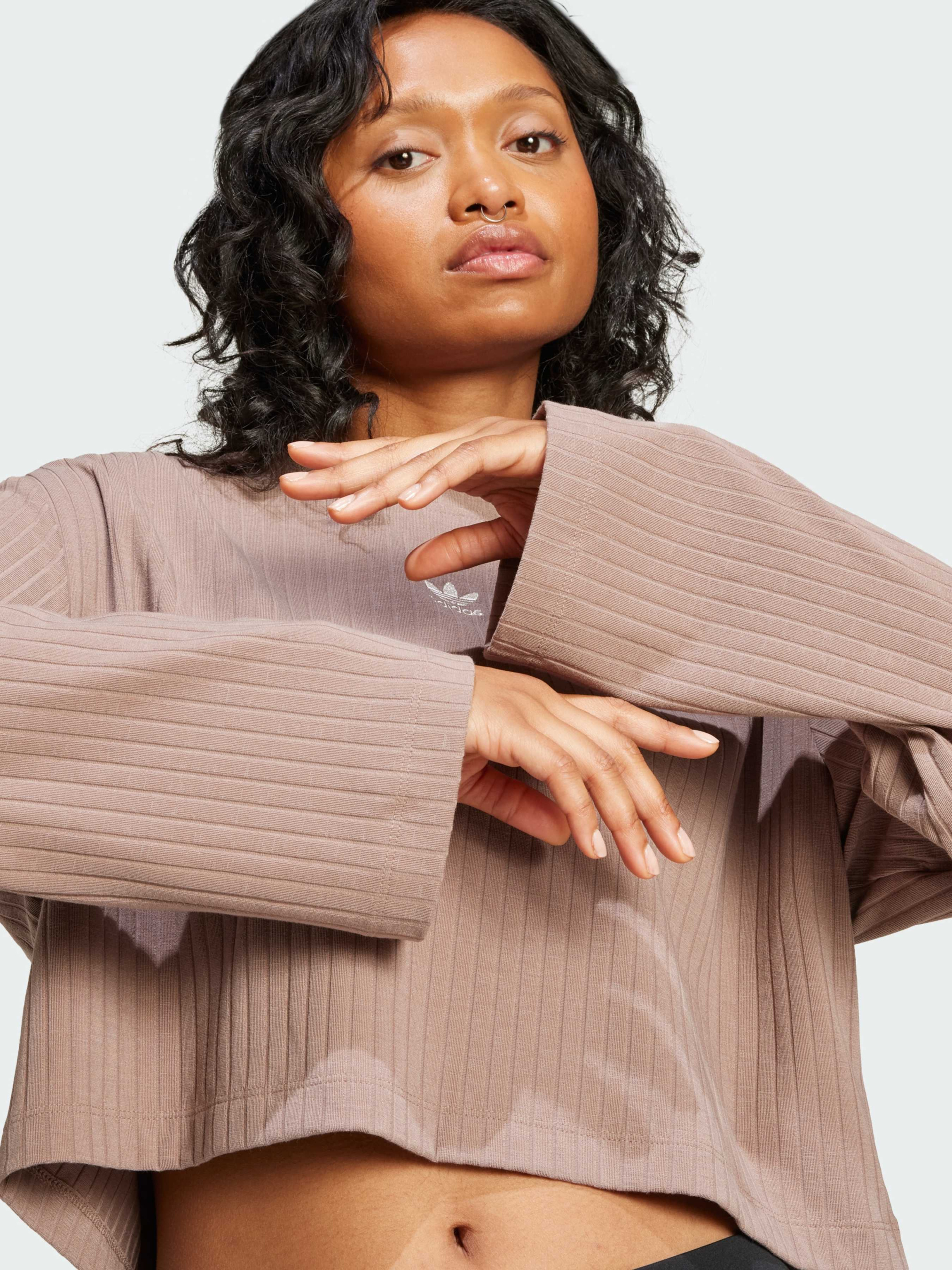Характеристики 44% віскоза, 26% перероблений поліестер, 12% еластан, 9% бавовна, 9% модал Круглий виріз горловини Вільний крій Вкорочений фасон Опис Цей укорочений лонгслів від adidas чудово поєднує невимушений стиль із сучасними акцентами. Виготовлений з дуже м'якої та еластичної тканини, він грайливо нагадує про вінтажний спортивний одяг, а вільний, невимушений крій робить його сучасним і зручним для носіння. Поєднай його з джинсами з високою талією або велосипедками для активного образу, або одягни з комфортними легінсами для розслабленого дня.