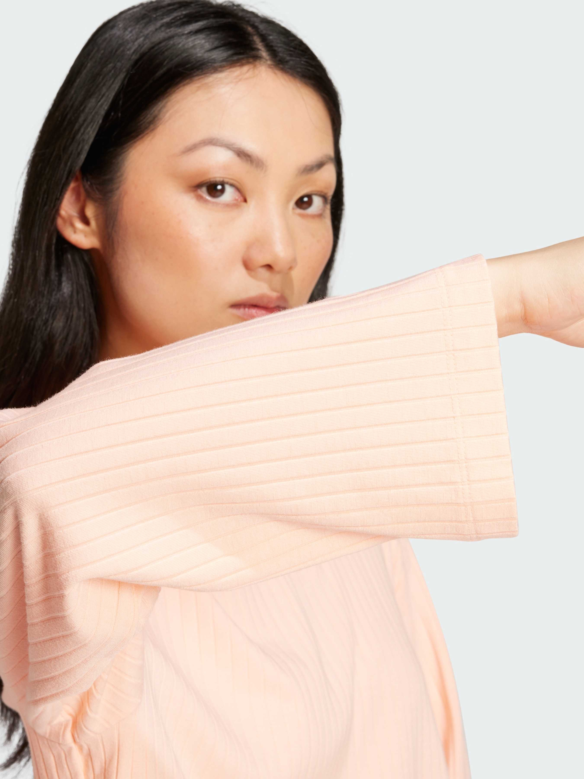 Характеристики 44% віскоза, 26% перероблений поліестер, 12% еластан, 9% бавовна, 9% модал Круглий виріз горловини Вільний крій Вкорочений фасон Опис Цей укорочений лонгслів від adidas чудово поєднує невимушений стиль із сучасними акцентами. Виготовлений з дуже м'якої та еластичної тканини, він грайливо нагадує про вінтажний спортивний одяг, а вільний, невимушений крій робить його сучасним і зручним для носіння. Поєднай його з джинсами з високою талією або велосипедками для активного образу, або одягни з комфортними легінсами для розслабленого дня.