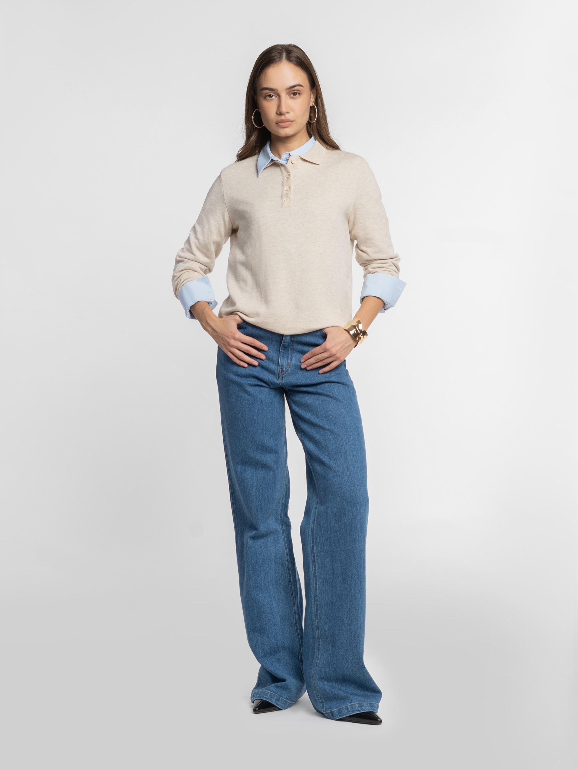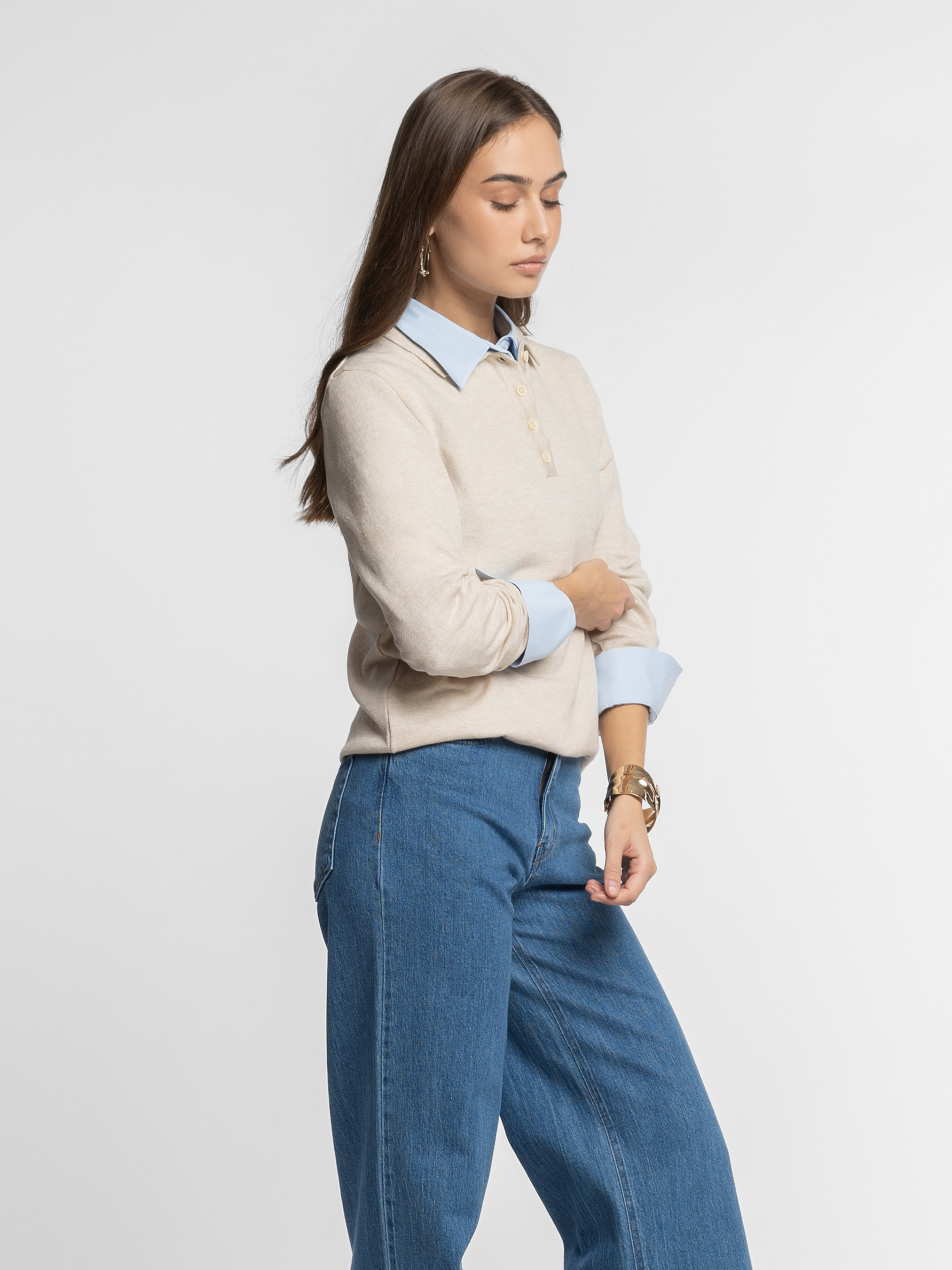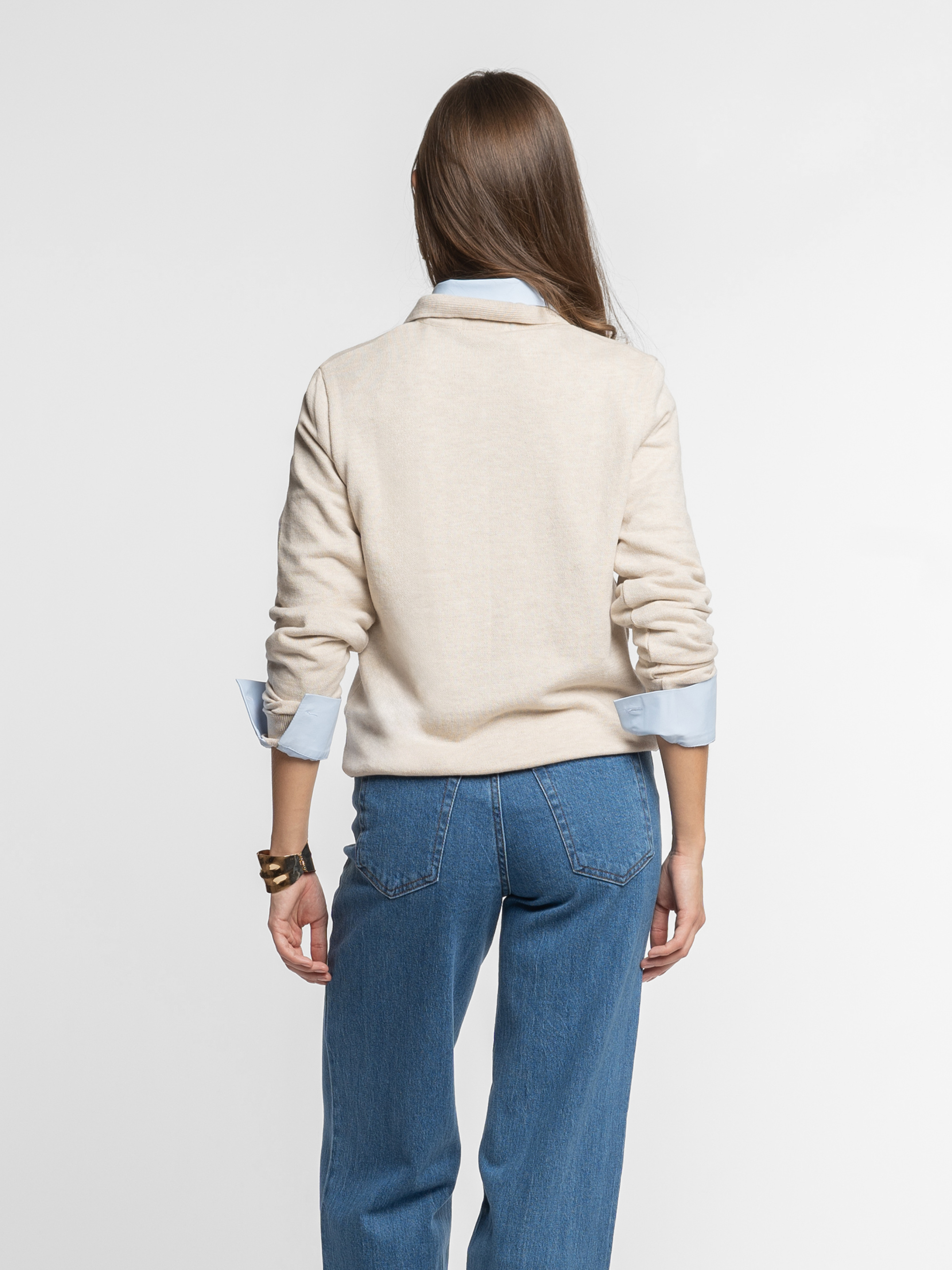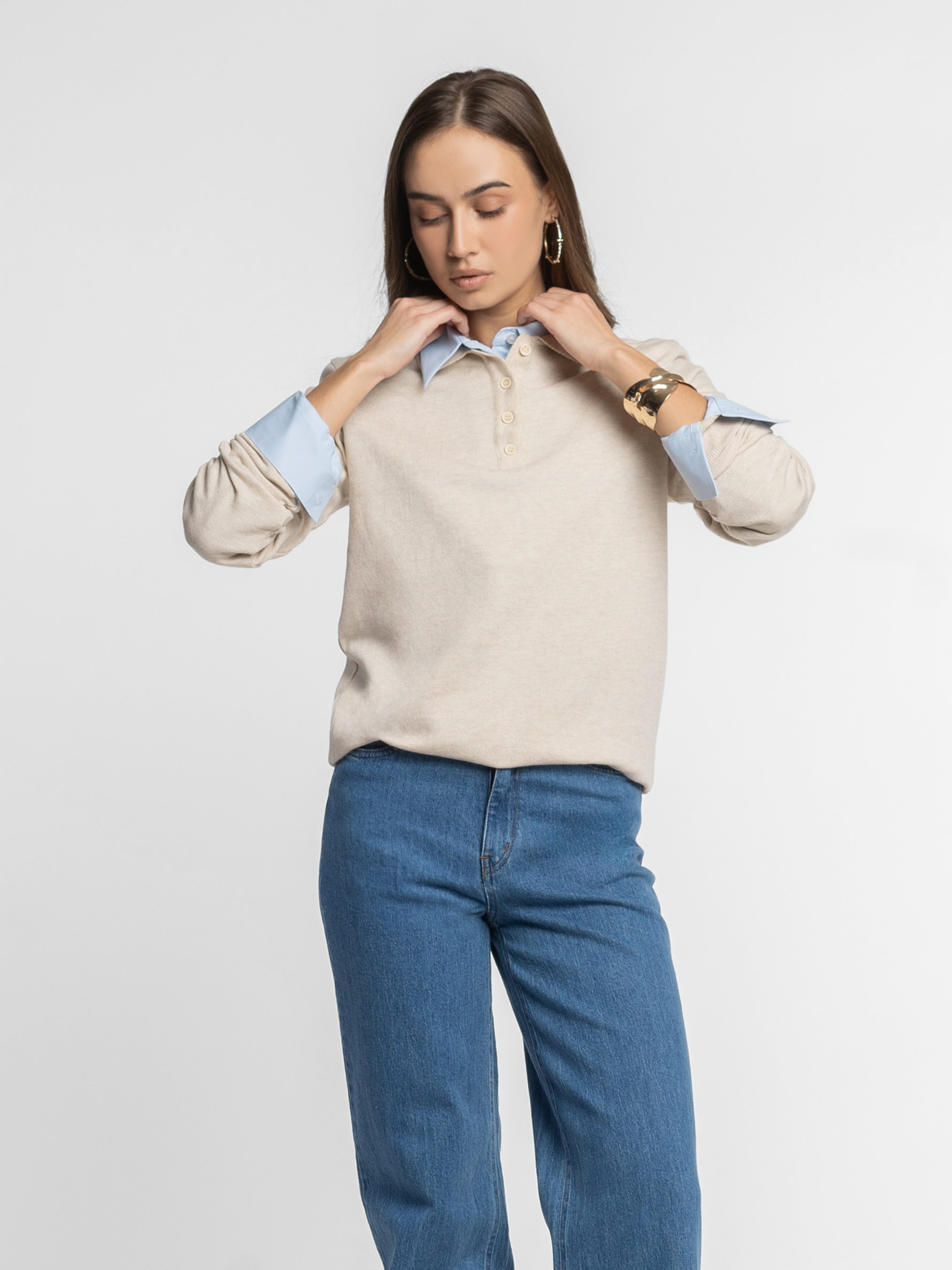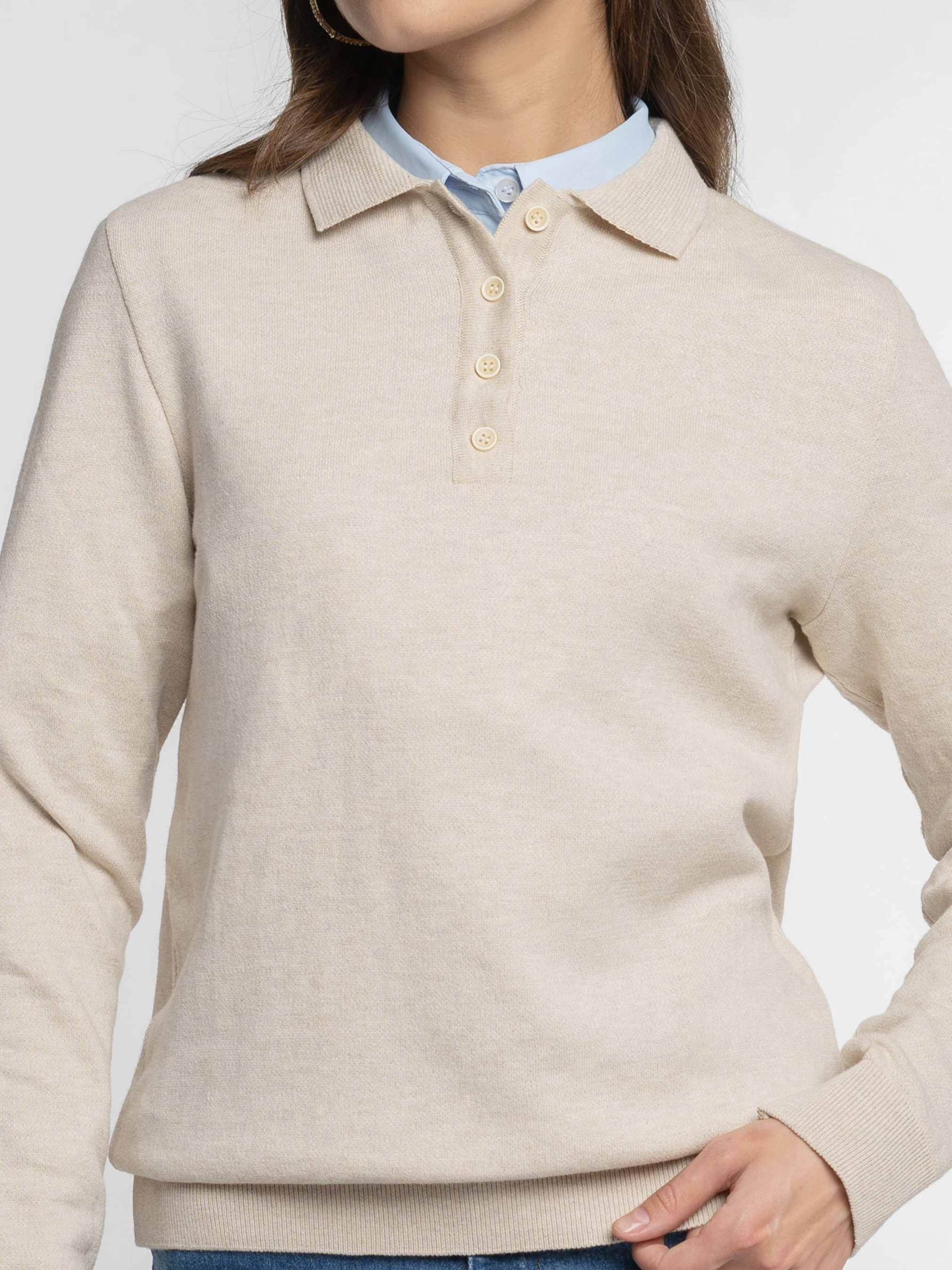 Жіночий джемпер-поло Arber бежевого кольору, пов’язане з натуральної бавовни. Легкий трикотаж м’яко облягає фігуру, не сковуючи рухів, та приємно відчувається на тілі. Дихаюча тканина забезпечує комфорт упродовж дня, а застібка на п’ять ґудзиків і лаконічний дизайн роблять цю модель універсальною для щоденного гардероба. Модель на фото у розмірі xs. Зріст: 168 см. Параметри: 79/60/88