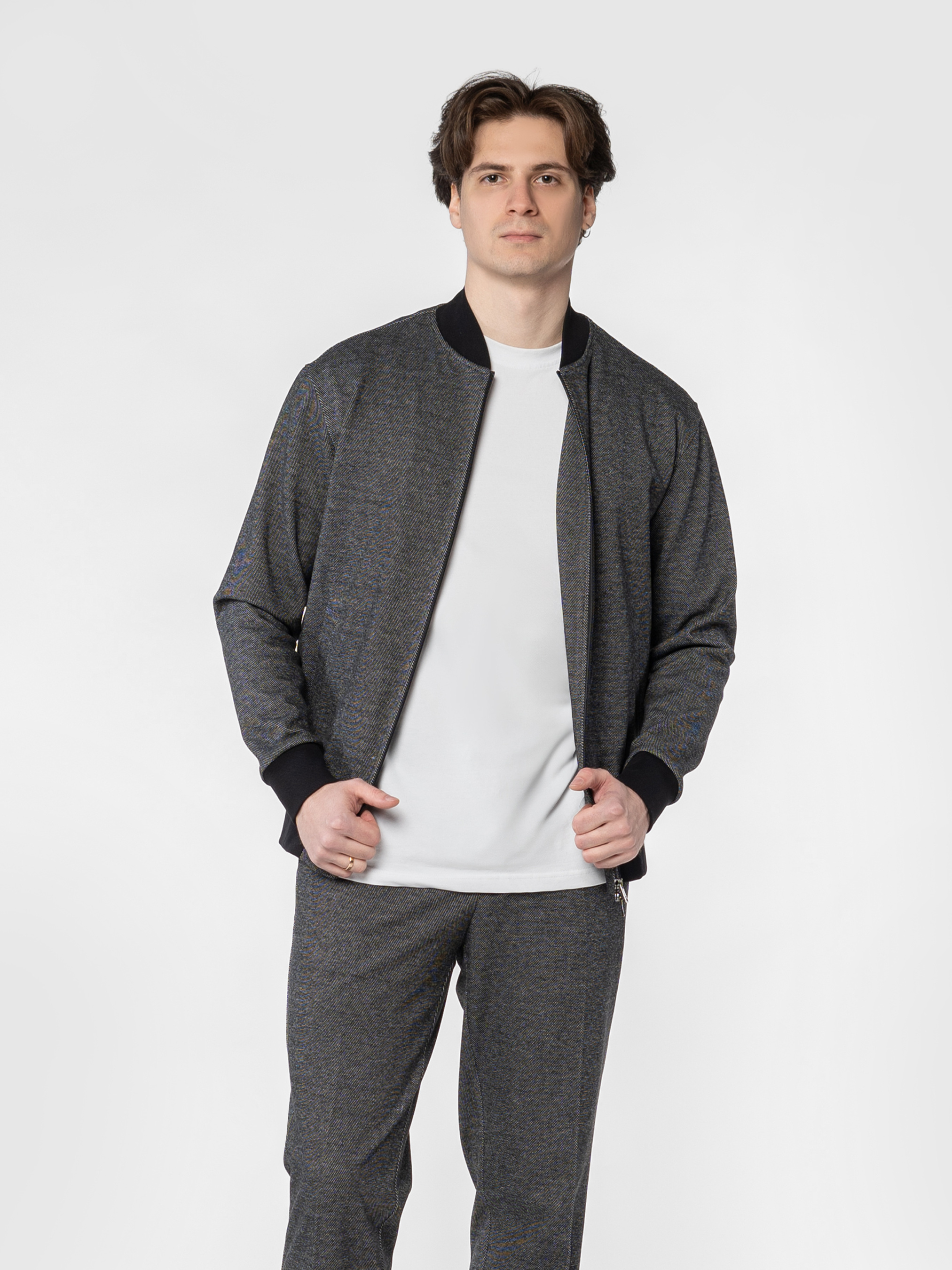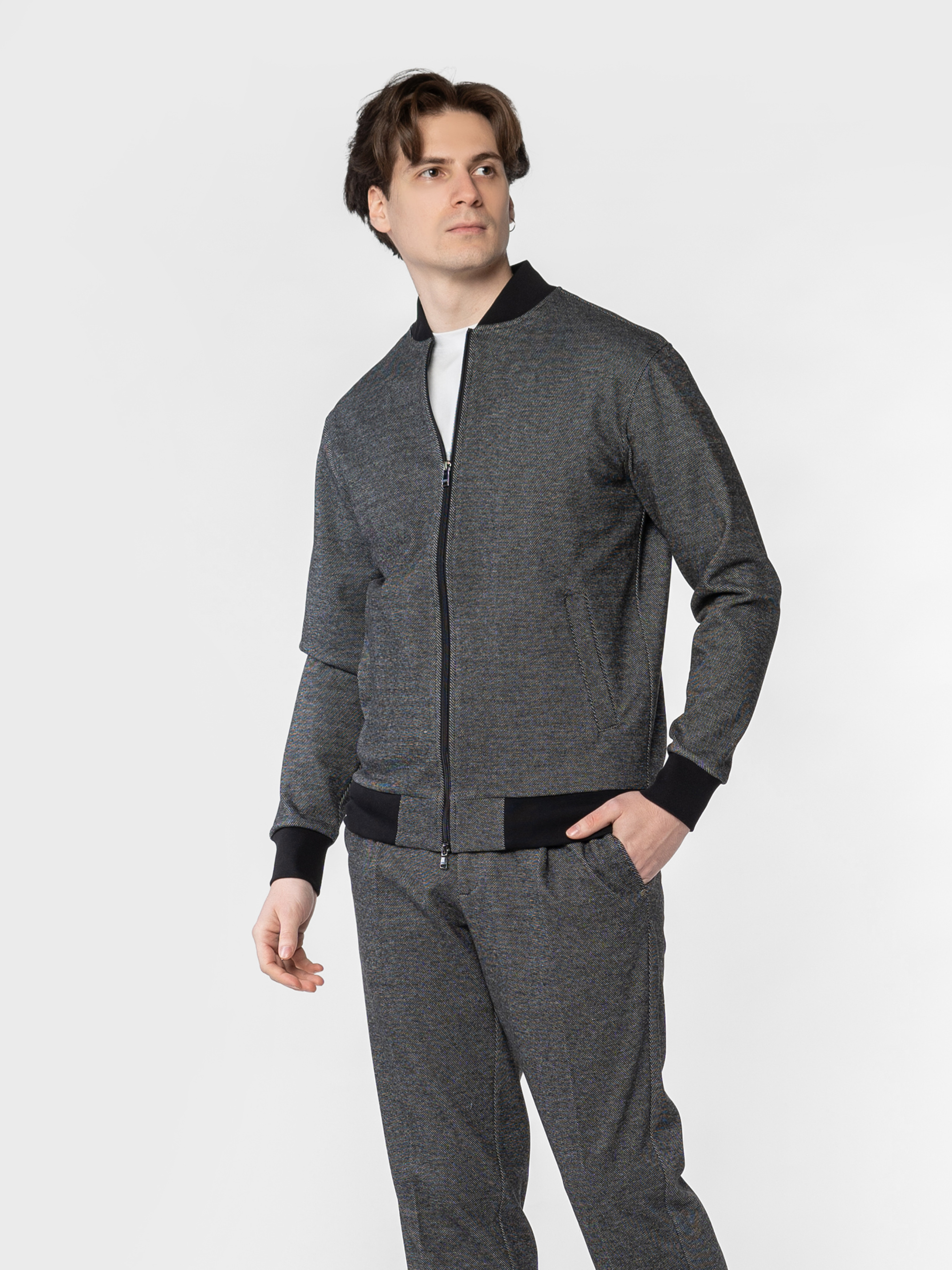 Чоловічий сірий бомбер Arber з еластичного трикотажу на основі бавовни та віскози. М’яка, приємна на дотик тканина дихає, не мнеться, стійка до забруднень і забезпечує свободу рухів. Застібка на блискавку, дві кишені та еластичні вставки на манжетах, комірі й понизу додають комфорту й динаміки образу. Ідеально поєднується з брюками або джинсами для невимушеного повсякденного образу. Модель на фото у розмірі 48. Зріст: 185 см. Параметри: 103/78/100
