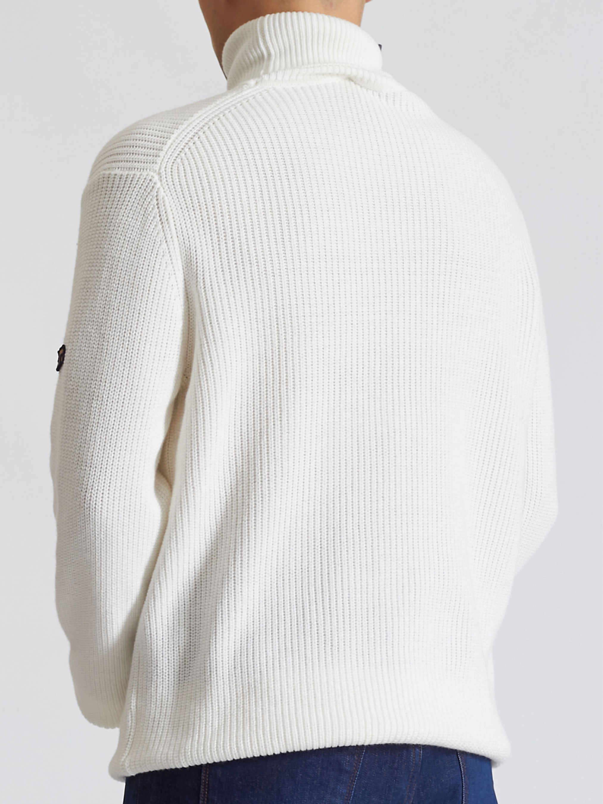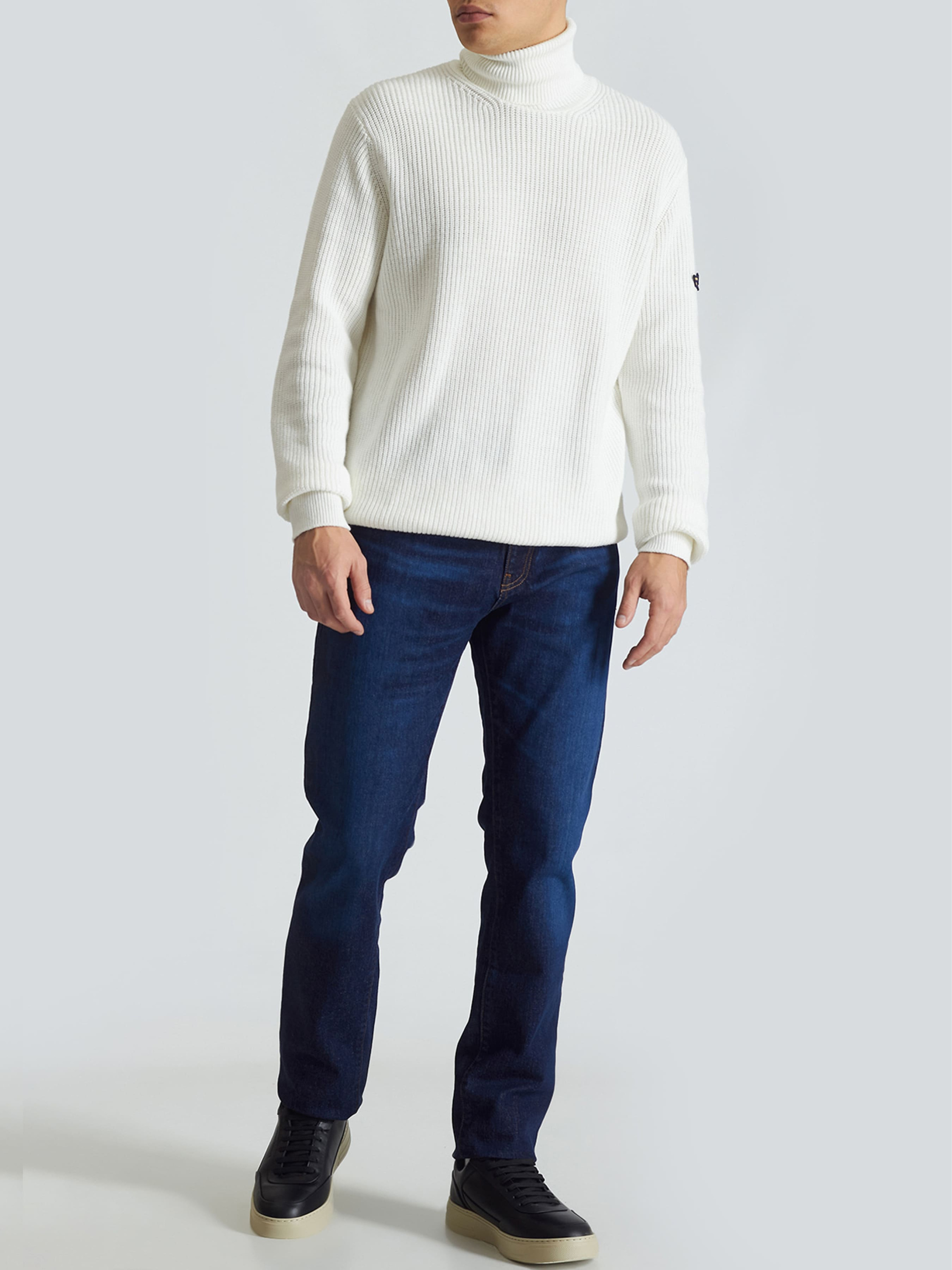Светр ARMATA DI MARE Чоловічий Білий Склад: 95% бавовна, 5% кашемір У перекладі з італійської ARMATA DI MARE означає "Армія моря". І справді, прототипом колекції чоловічого одягу ARMATA DI MARE послужила форма військово-морських сил Італії, яка своїми чіткими та простими лініями силуету надихнула її дизайнерів на створення комфортного одягу для рішучих та активних людей. Бажання передати суворий спосіб життя моряків, силу їхнього духу та характеру втілилося у поєднання зручності та стилю, а завдяки витонченій геометрії крою та якісним матеріалам, вдалося створити альтернативу спортивному стилю у його звичному виконанні, зробивши його більш формальним. Образ моряка з сильним характером, повний свободи та енергії вдалося виразити у трьох концептуальних лініях: City, Regatta та Vintage. Лінія Сity представлена в основному в стилі casual, Regatta для тих, хто віддає перевагу активному відпочинку, у тому числі вітрильний спорт, а лінію Vintage, як правило, вибирають ті, хто уважно стежить за ретро тенденціями сучасної моди. Колекцію "Армія моря" доповнюють різноманітні аксесуари: шорти, спідня білизна, ремені та сумки тощо.