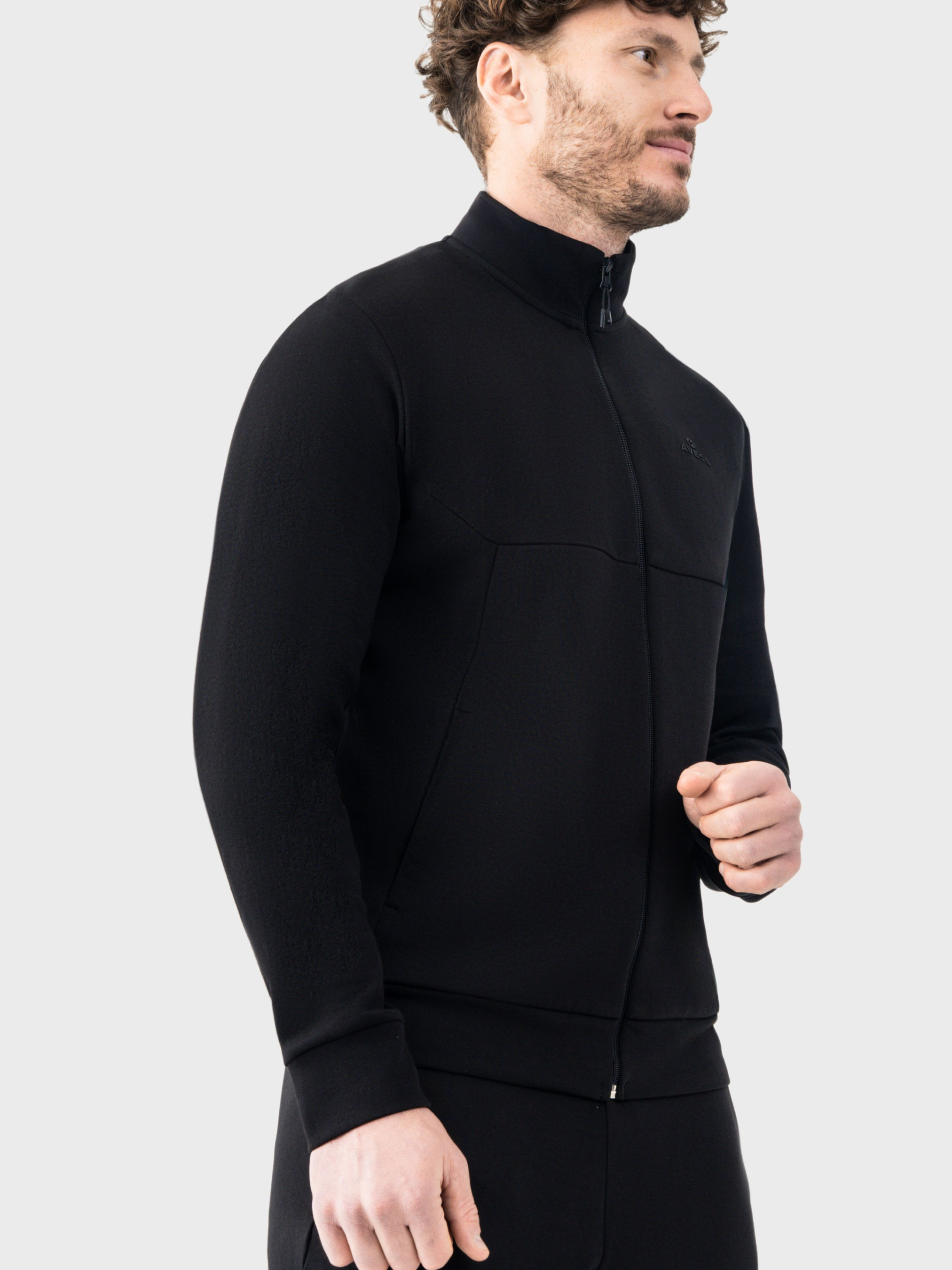 Чоловіча кофта AVECS у чорному кольорі — універсальний елемент повсякденного гардероба для прохолодної погоди та активного ритму життя. Виконана з двостороннього трикотажу Double Face, вона поєднує щільність, м’якість і зносостійкість, а склад із 80% бавовни та 20% поліестеру забезпечує комфорт і стабільне збереження форми. Комір-стійка додає захист від вітру та формує лаконічний силует. Манжети на рукавах сприяють зручній посадці, а ергономічний нагрудний шов підвищує комфорт під час руху. Дві бічні кишені з блискавками дозволяють безпечно зберігати особисті речі, а дизайнерський логотип підкреслює фірмовий стиль AVECS. Кофта AVECS — вдалий вибір для міських образів, подорожей та щоденного використання. Особливості: - Двосторонній трикотаж Double Face - Комір-стійка - Дизайнерський логотип - Дві бічні кишені, захищені блискавками - Манжети на рукавах - Ергономічний нагрудний шов Склад: бавовна 80%, поліестер 20%.