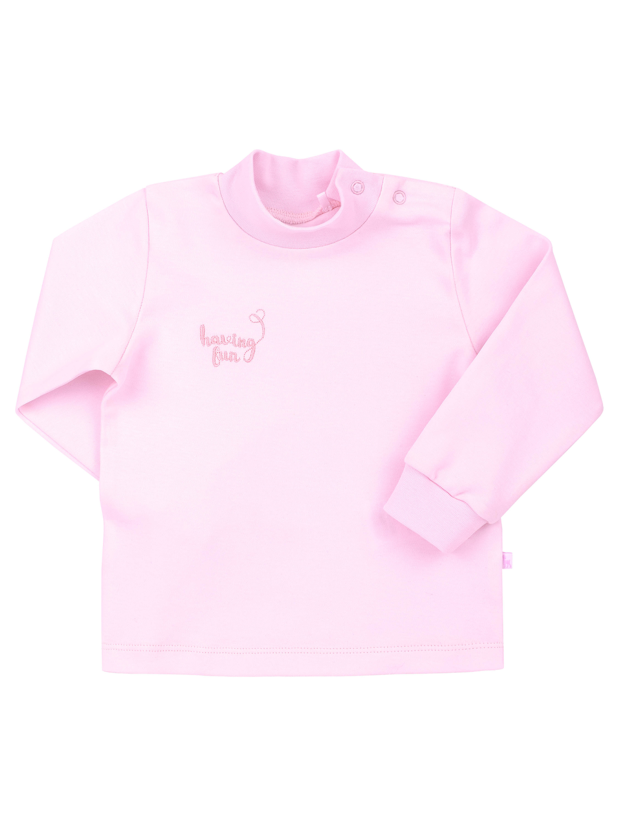 Гольф однотонний, довгий комір, який можна підвернути. Пошив прямий, рукава довгі. Манжети з основного матеріалу. На плечі гольф застібається на кнопки.