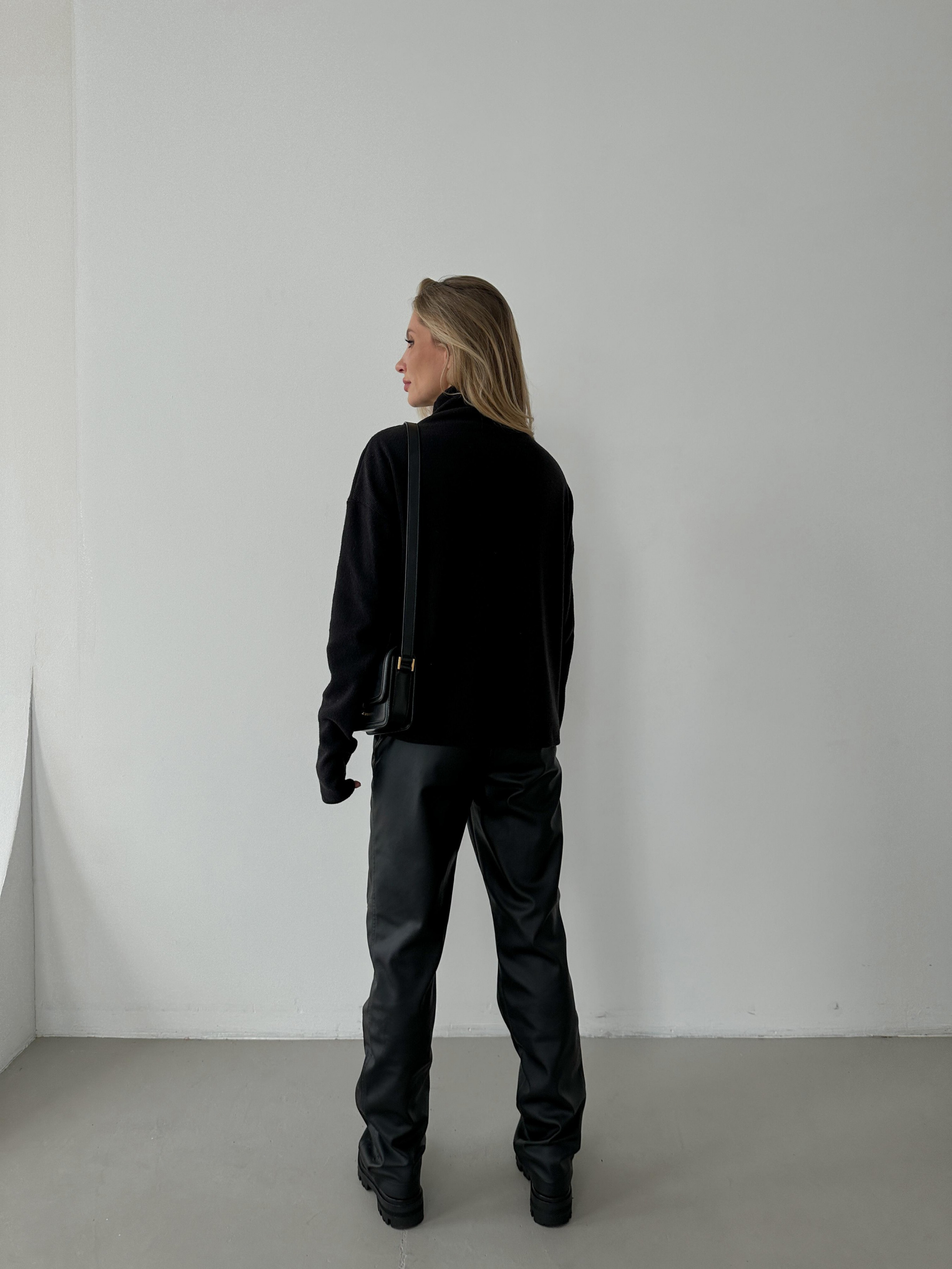 Основа комфортних осінньо-зимових комбінацій – теплий светр з високою горловиною-стійкою. Модель розслабленого силуету з опущеною лінією плеча та прямими подовженими рукавами виконана з щільного трикотажного полотна дрібної в’язки. Любимо цей светр за мʼяку фактуру і завжди актуальний силует, з яким можна поєднувати як джинси, штани з еко-шкіри, так і класичні палаццо для стриманих образів.