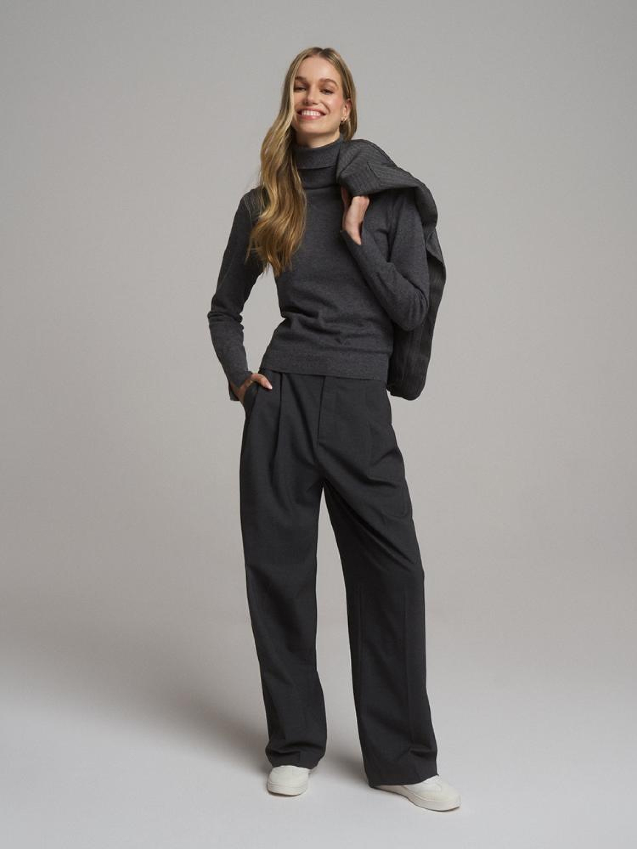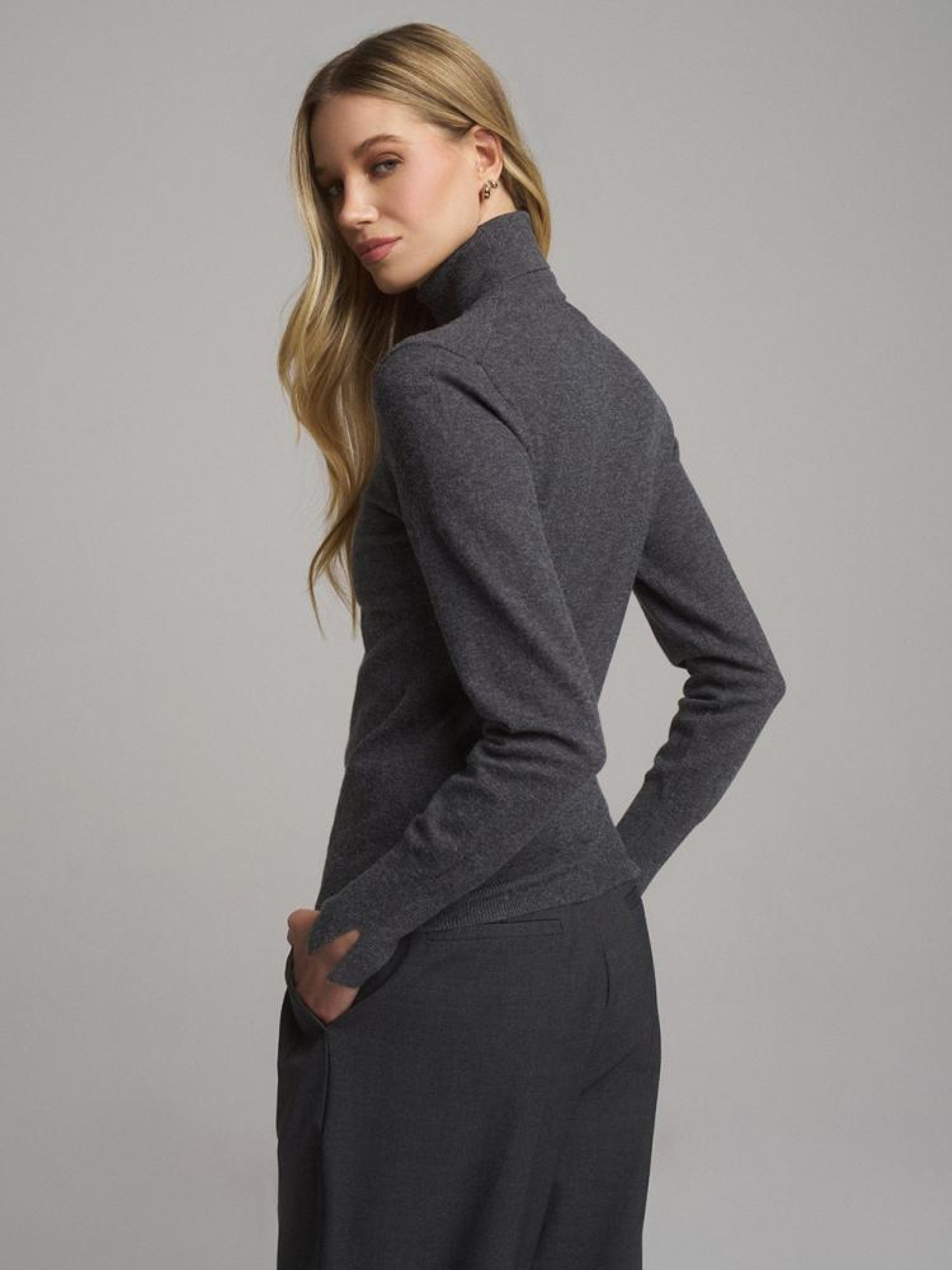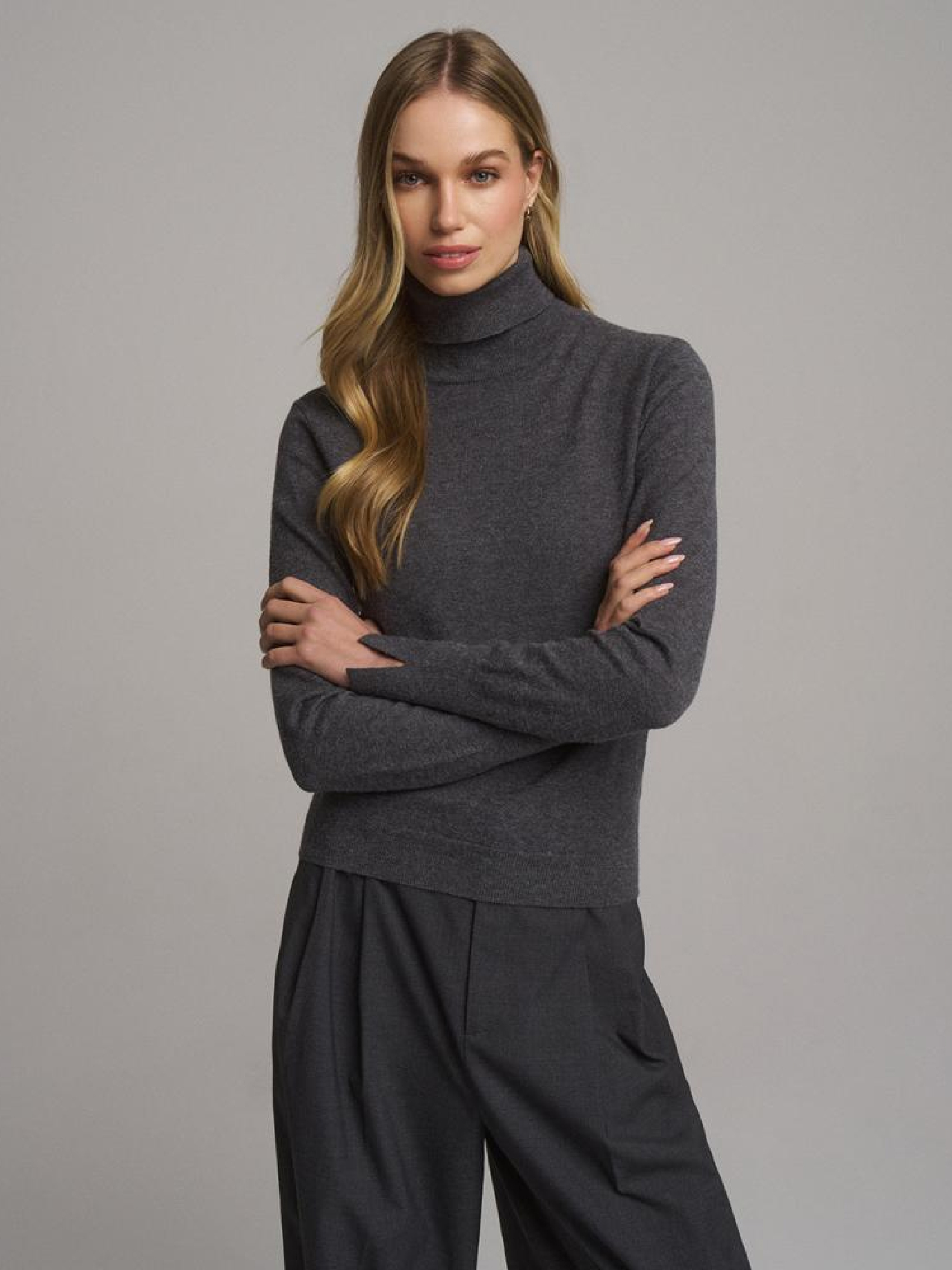 Светр TRIBUT 10046239 Жіночий светр-водолазка: - з еластичної приємної до тіла тканини, - приталений крій, - довгі рукави, - має горловину водолазку, - оздоблення рукавів декоративним розрізом, - доступний у сірому меланжі. Сезон: Весна/Літо 2025 Склад: 42% віскоза 34% поліамід 24% поліестер Догляд: - не відбілювати - не сушити в сушильній машині - прасувати максимум при темп. 110 °С - не проводити хімчистку - ручне прання Розмір на моделі - S Зріст моделі - 177 см РОЗМІР: XS, S, М, L. XL, Довжина по середині спинки: 54,00 см, 56,00 см, 58,00 см, 60,00 см, 62,00 см, ШИРИНА НИЗУ: 30,50 см, 32,50 см, 34,50 см, 36,50 см, 38,50 см, Ширина під пахвами: 39,50 см, 41,50 см, 43,50 см, 45,50 см, 47,50 см, Довжина рукава: 60,50 см, 61,50 см, 62,50 см, 63,50 см, 64,50 см,