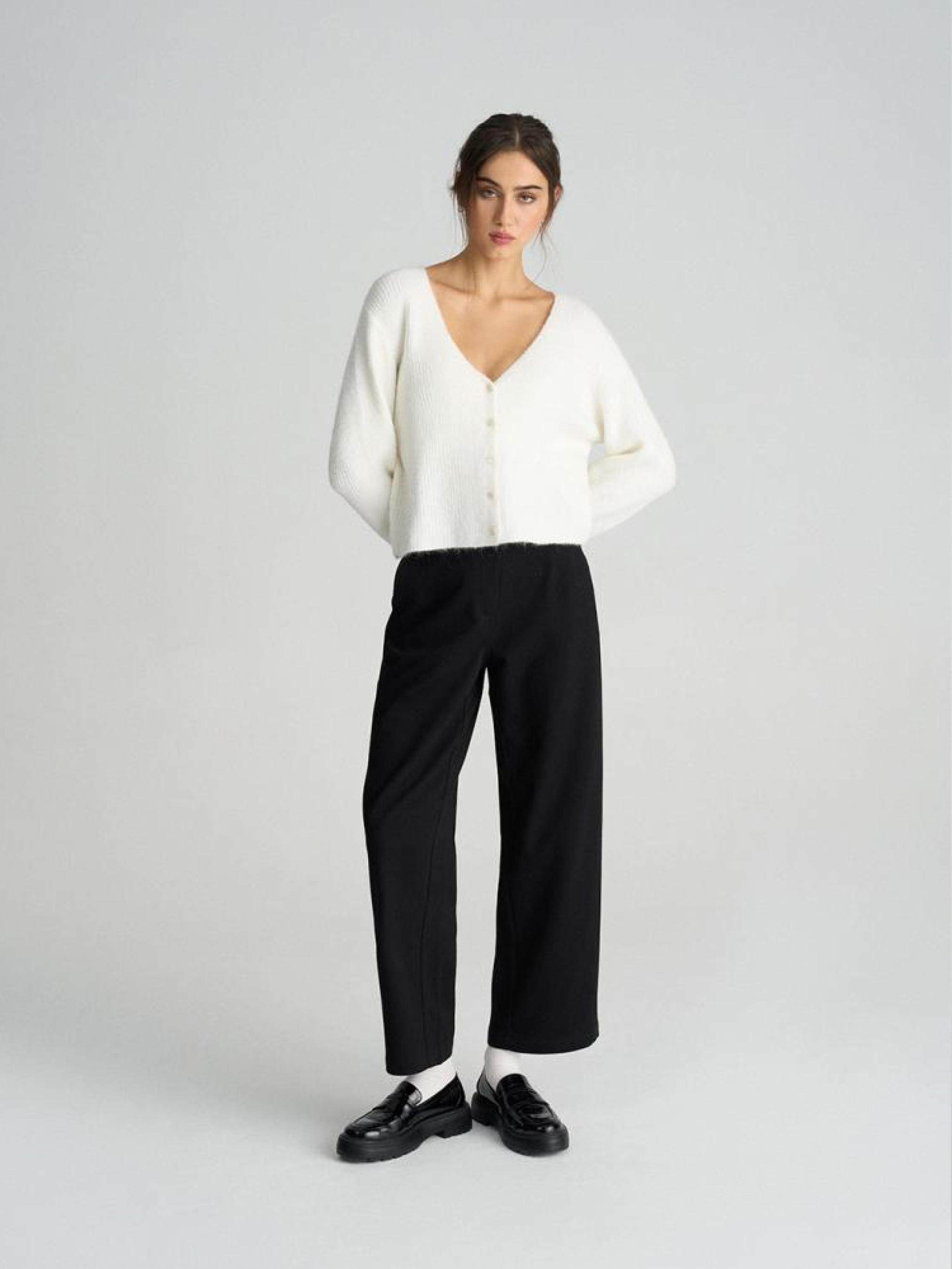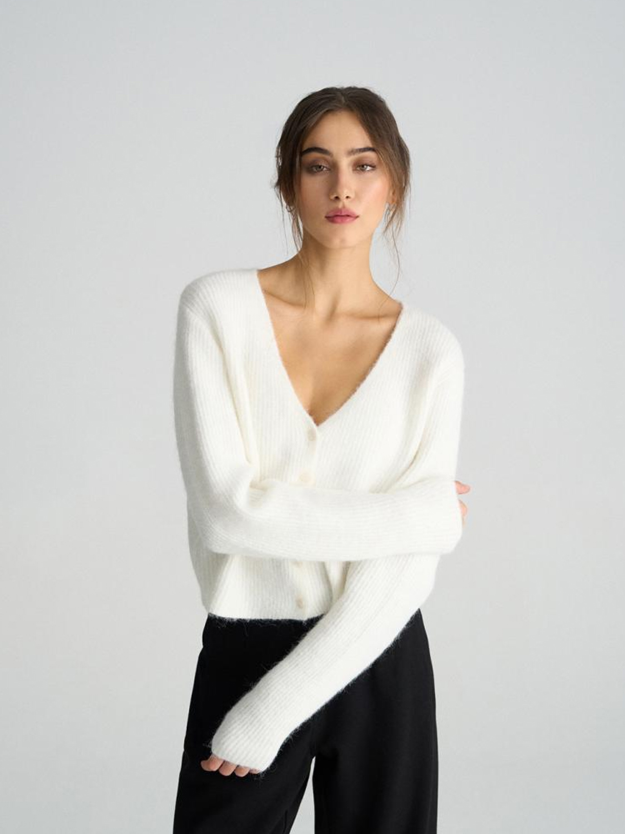 Светр SUNTAG 10045800 Короткий жіночий джемпер з вовною: - прямий крій, - V-подібний виріз, - з м'якого пухнастого трикотажу з вовною, - на ґудзиках, - доступний у білому кольорі. Сезон: осінь/зима 2024 Склад: 49% поліестер 21% акрил 21% нейлон 7% вовна 2% еластан Догляд: - не відбілювати - не сушити в сушильній машині - прасувати максимум при темп. 110 °С - не проводити хімчистку - ручне прання Розмір на моделі - S Зріст моделі - 176 см РОЗМІР: S, М, L. Довжина по середині спинки: 48,00 см, 50,00 см, 52,00 см, ШИРИНА НИЗУ: 45,50 см, 47,50 см, 49,50 см, Ширина під пахвами: 50,00 см, 52,00 см, 54,00 см, Довжина рукава: 57,00 см, 58,00 см, 59,00 см,