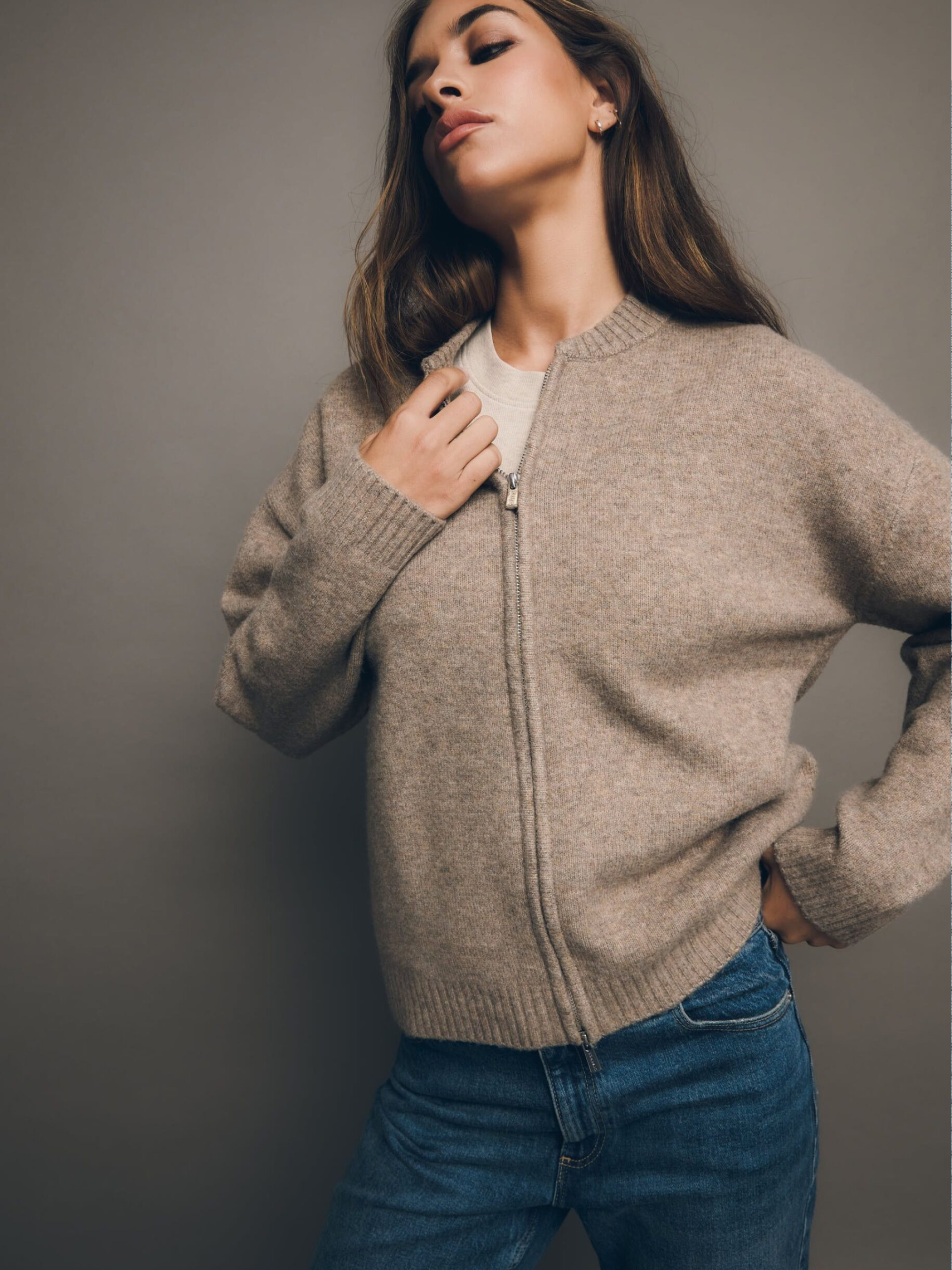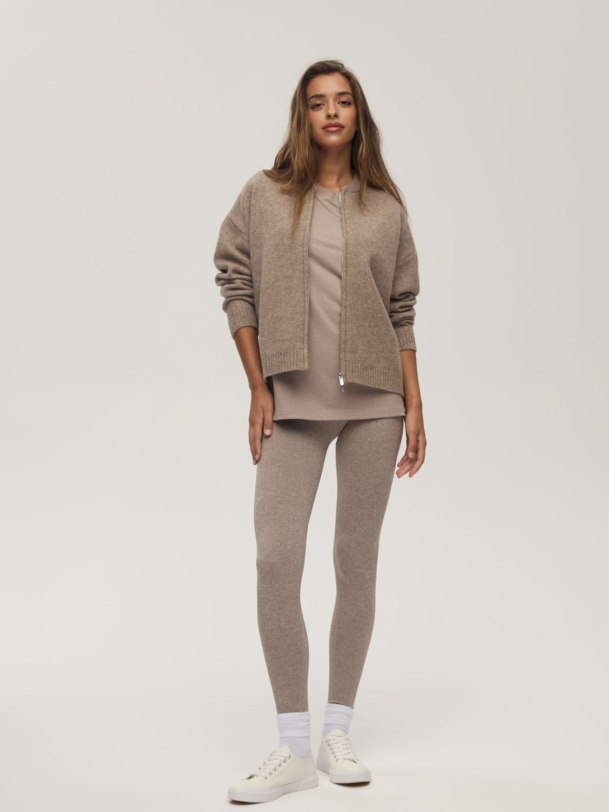 Жіночий бомбер з в'язаного трикотажу PASHTA / ID: 10047945 Зріст моделі: 176 см Розмір товару: S Бомбер з в'язаного светра: - подвійна блискавка, - простий крій, - з резинкою по краях і на комірі. Зовнішній склад: 50% поліестер 23% акрил 19% поліестер 6% вовна 2% еластан Догляд: - не відбілювати - не сушити в сушильній машині - прасувати максимум при темп. 110 °С - не піддавати хімчистці - ручне прання Розмір: XS S М L Довжина по центру спинки: 57 59 61 63 Ширина знизу: 48 50 52 54 Ширина під пахвами: 53 55 57 59 Довжина рукава: 48,5 49,5 50,5 51,5