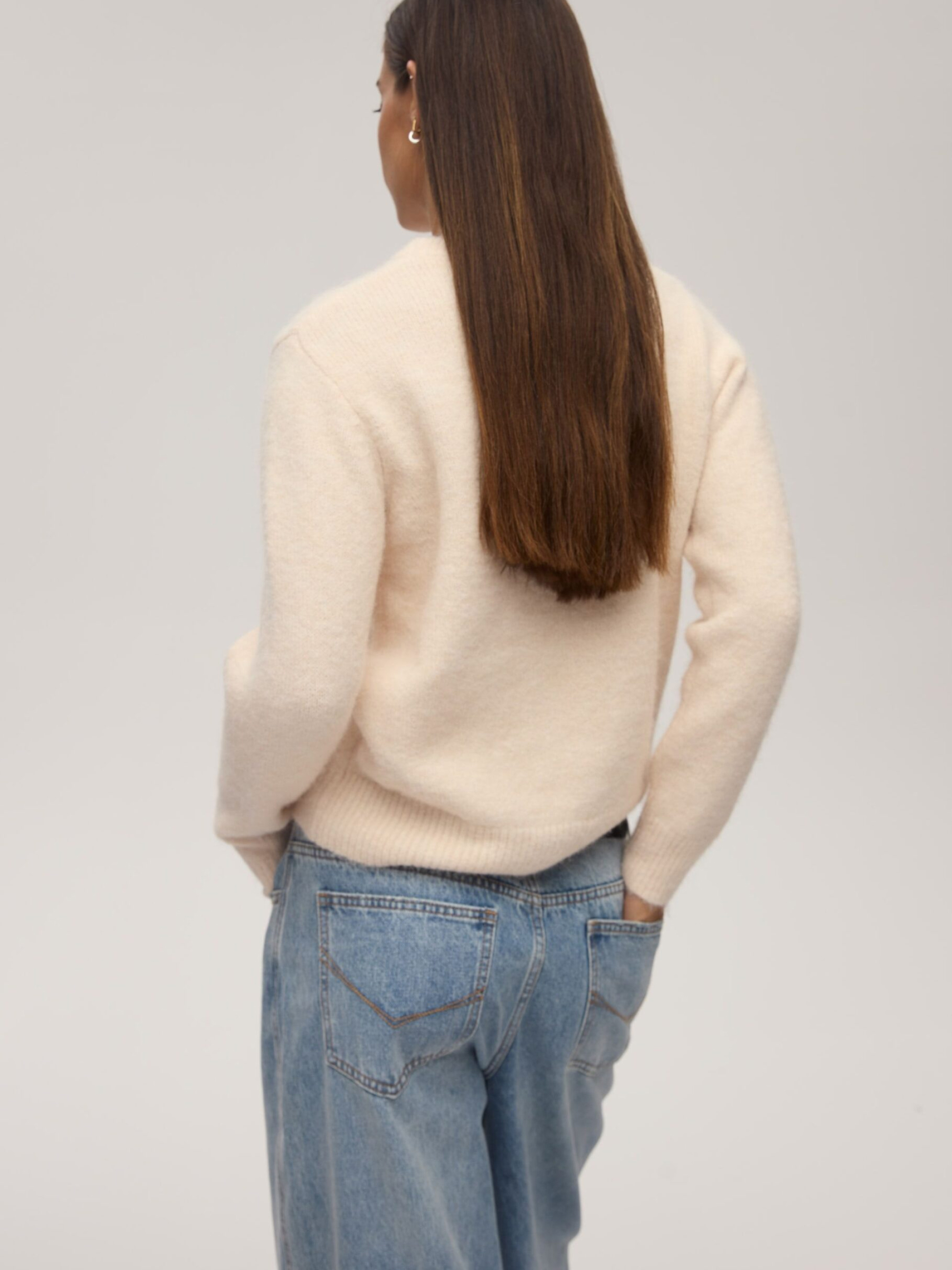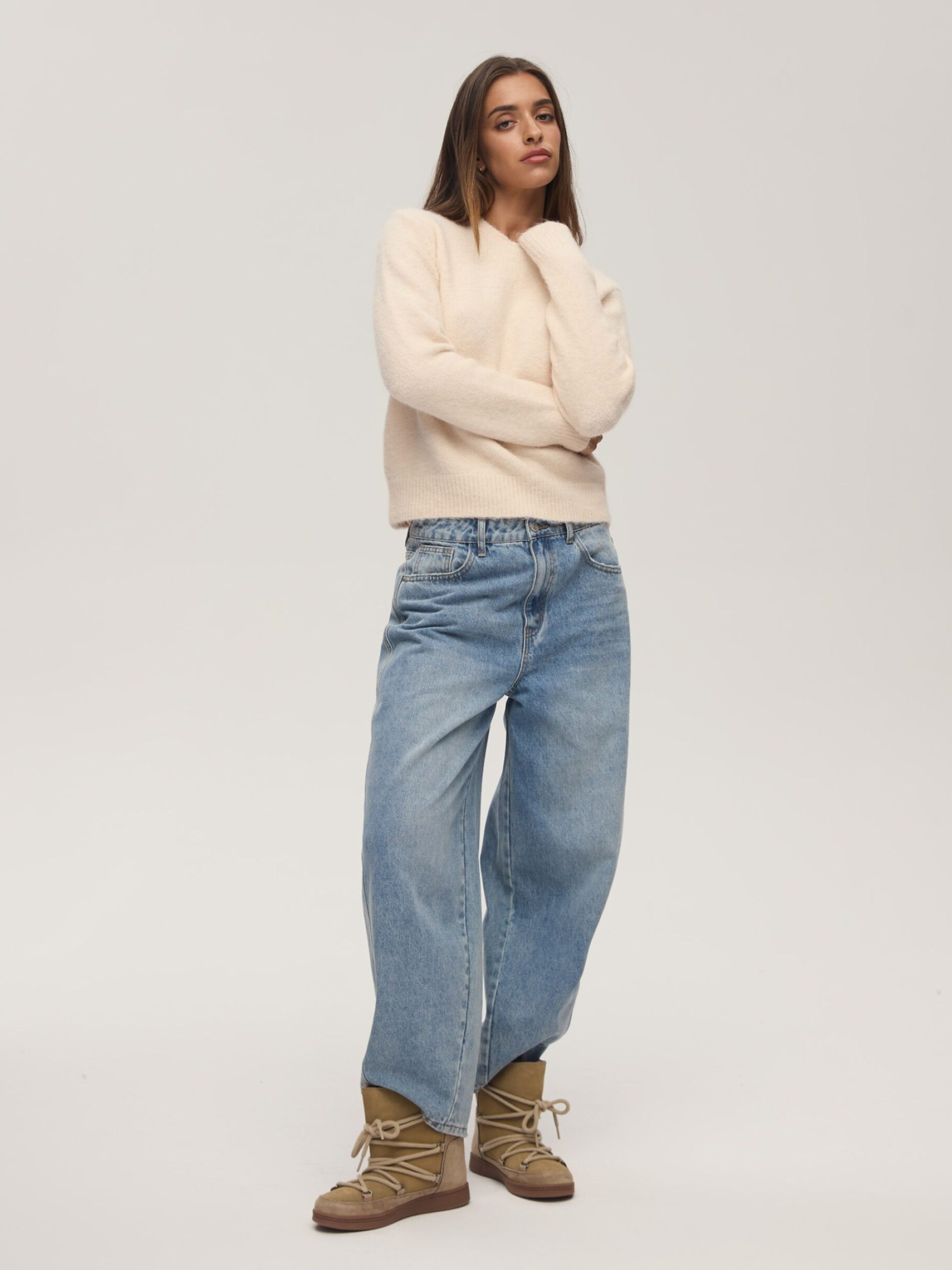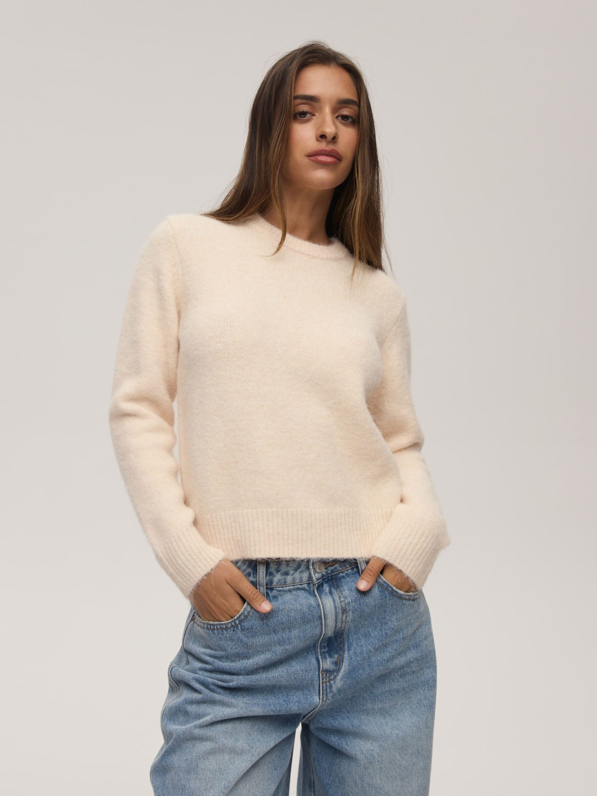 Зручний жіночий светр NELP / ID: 10047943 Зріст моделі: 176 см Розмір товару: S Виготовлений з високоякісної суміші матеріалів – поліестеру, акрилу, нейлону, вовни та еластану – м'який, легкий і водночас чудово зберігає тепло: - класичний крій, - круглий виріз, - довгі рукави, - ребристі манжети. Ідеальний для прохолодних осінніх і зимових днів – він огорне вас м'якістю та забезпечить стильний вигляд на будь-який випадок. Зовнішній склад 49% поліестер 21% акрил 21% нейлон 7% вовна 2% еластан Догляд: - не відбілювати - не сушити в сушильній машині - прасувати максимум при темп. 110 °С - не піддавати хімчистці - ручне прання Розмір: XS S М L XL Довжина по центру спинки: 55,5 57,5 59,5 61,5 63,5 Ширина знизу: 42 44 46 48 50 Ширина під пахвами: 47 49 51 53 55 Довжина рукава: 59 60 61 62 63