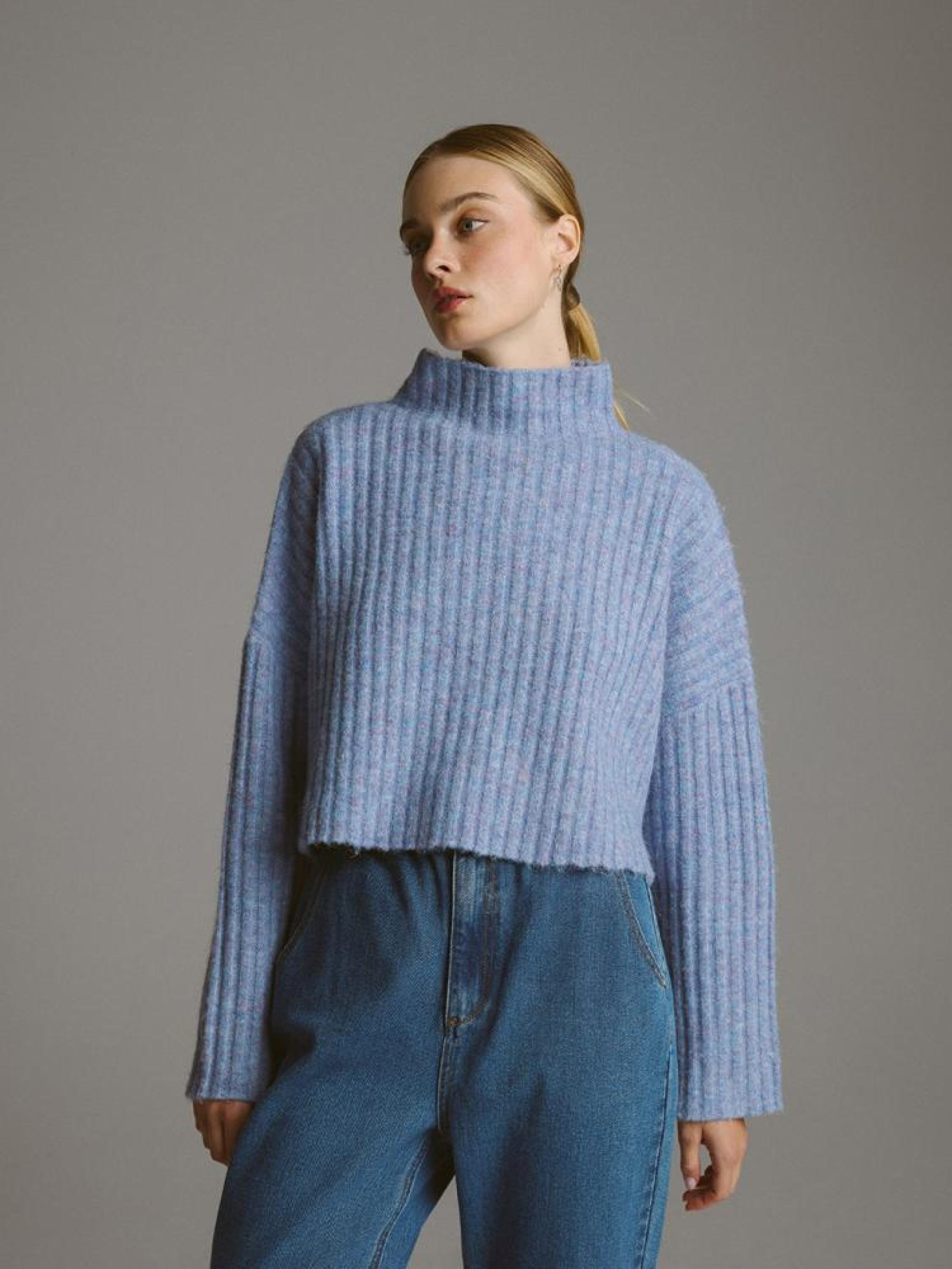 Светр HEJMA 10045501 Жіночий светр з теплого трикотажу в рубчик: - короткий крій, - горловина - водолазка, - з трикотажу в рубчик з вовною, - в наявності світло-фіолетовий (бузковий). Сезон: осінь/зима 2024 Склад: 76% поліестер 15% поліамід 6% вовна 3% еластан Догляд: - не відбілювати - не сушити в сушильній машині - прасувати максимум при темп. 110 °С - не проводити хімчистку - ручне прання Розмір на моделі - S Зріст моделі - 179 см РОЗМІР: XS, S, М, L. Довжина по середині спинки: 53,00 см, 55,00 см, 57,00 см, 59,00 см, ШИРИНА НИЗУ: 65,00 см, 67,00 см, 69,00 см, 71,00 см, Ширина під пахвами: 65,00 см, 67,00 см, 69,00 см, 71,00 см, Довжина рукава: 43,50 см, 44,50 см, 45,50 см, 46,50 см,