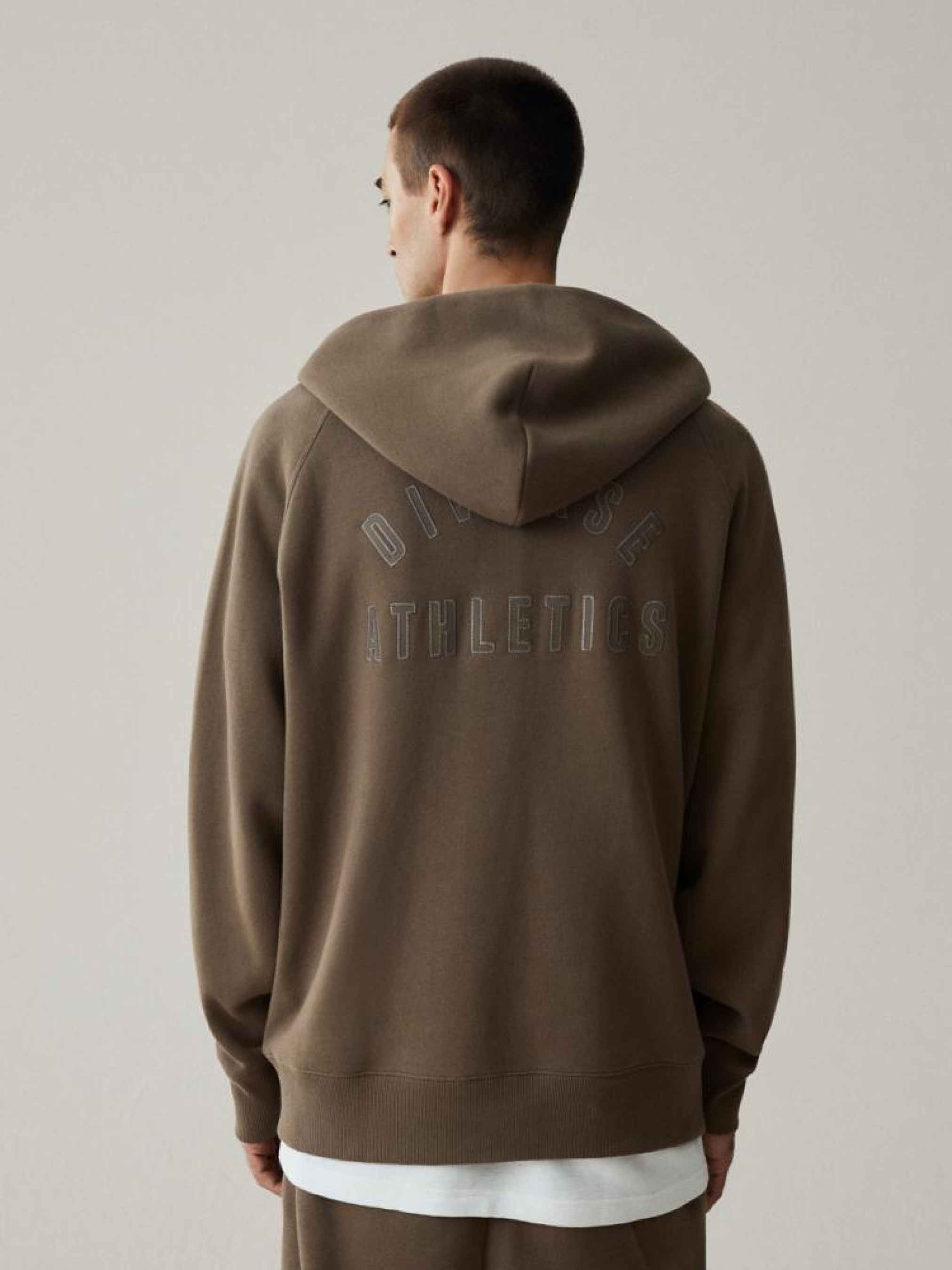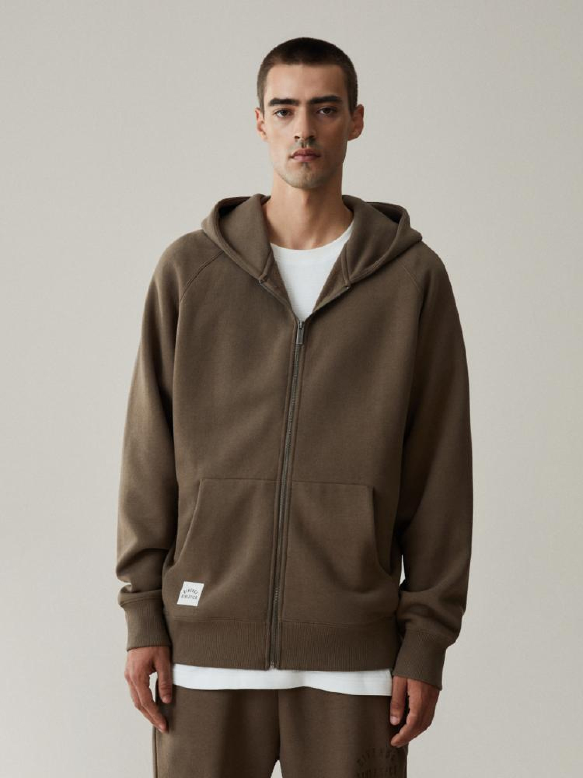 Толстовка ATH ZH 523 10042836 Толстовка кенгуру вільного крою на блискавці з капюшоном з колекції NEW ATHLETICS. Виготовлена з високоякісної тканини світшота: - декоративний ярлик на передній кишені, - доступний у темно-коричневому кольорі та хакі, - вишита аплікація на спині. Сезон: осінь/зима Склад: 85% бавовна 15% поліестер Догляд: - прання при максимум 30 °С - не відбілювати - не сушити в сушильній машині - прасувати максимум при темп. 150 °С - не хімчистка Розмір на моделі - XL Зріст моделі - 189 см РОЗМІР: S, М, L. XL, XXL, ЗАГАЛЬНА ДОВЖИНА СПИНКИ: 69,00 см, 71,00 см, 73,00 см, 75,00 см, 77,00 см, ШИРИНА НИЗУ: 48,00 см, 50,00 см, 52,00 см, 54,50 см, 57,00 см, ШИРИНА ГРУДЕЙ: 59,50 см, 61,50 см, 63,50 см, 66,00 см, 68,50 см, ДОВЖИНА РУКАВА від шиї: 79,50 см, 81,50 см, 83,50 см, 85,50 см, 87,50 см, ЗОВНІШНЯ ДОВЖИНА РУКАВА: 79,50 см, 81,50 см, 83,50 см, 85,50 см, 87,50 см,