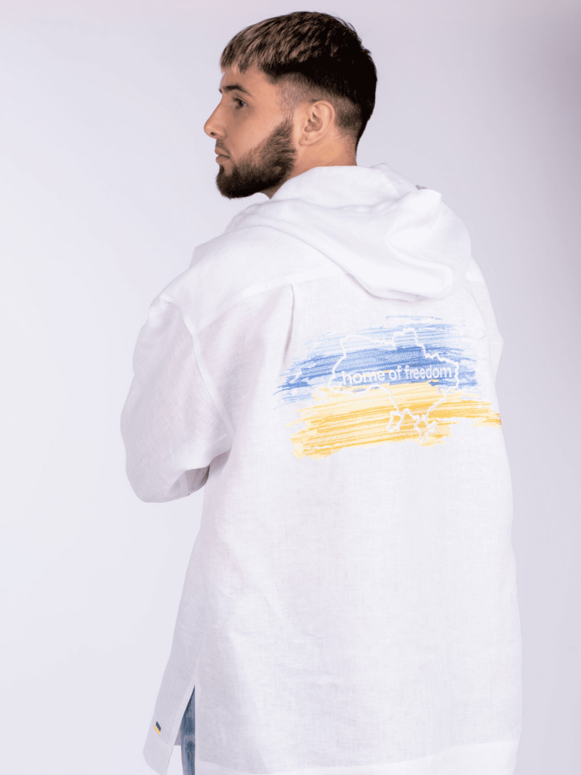 Хочете виділятись з натовпу та привертати увагу оточуючих? Тоді Ви на правильному сайті. Тут Ви можете обрати стильні, модернізовані дизайнерські речі, в яких відчуватимете не лише естетичне задоволення, але й будете охоплені комфортом та ніжністю натуральних тканин. Худі із 100% льону, прямого силуету, довжиною до середини бедер. Горловина не глибока - кругла, по центру планка довжиною до лінії грудей. Сорочка має капюшон одношовний із суцільно викроєною куліскою. Рукав довгий зі спущеним плечем, а на спині вишивка в жовто-блакитних тонах з картою України та написом - «home of freedom». В такому худі буде комфортно в жару, адже льон має властивість пропускати повітря, а це дозволяє вашому тілу дихати при високих температурах. Така ж сорочка представлена і в жіночому сегменті, що дає можливість створити крутий family look. Будемо раді бачити Вас в оффлайн та онлайн магазині «Едельвіка», та підберемо найкращий варіант, що вдало підкреслить Вашу індивідуальність.
