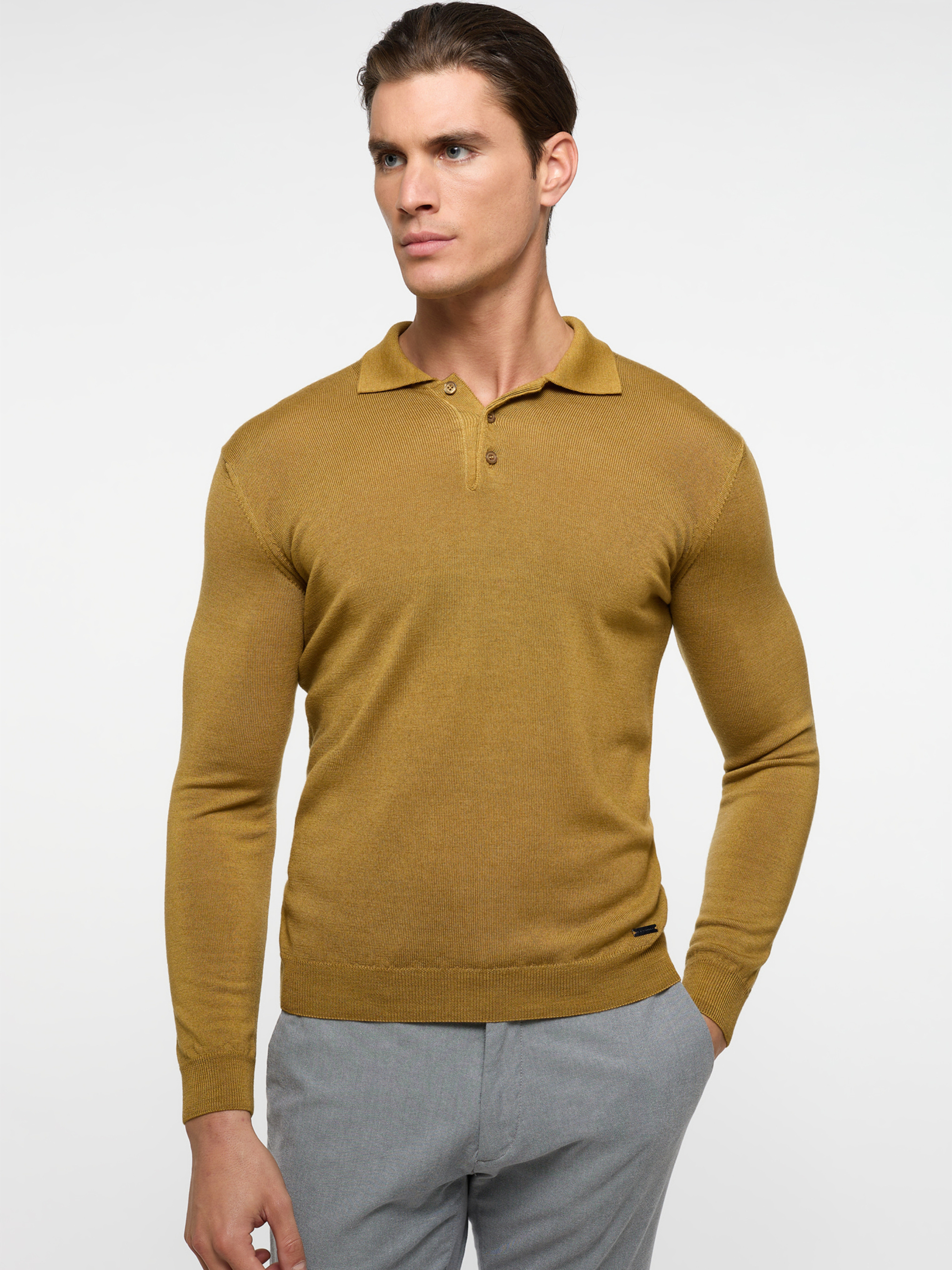 Поло Eterna з довгим рукавом поєднує комфорт, елегантність і сучасний стиль. Виготовлене зі 100% м’якої вовни мериноса, воно чудово зберігає тепло, пропускає повітря та забезпечує приємні відчуття протягом усього дня. Класичний відкладний комір і планка на гудзиках додають моделі стриманого, але вишуканого вигляду. Посадка Modern забезпечує ідеальний баланс між комфортом і бездоганним силуетом. Ідеальний вибір для поєднання з брюками чи джинсами в холодний сезон. Характеристики: Бренд: Eterna Колір: гірчичний Фасон: Modern Матеріал: 100% вовна мериноса Комір: відкладний, із планкою на гудзиках Рукав: довгий Сезон: Осінь/Зима Переваги: Натуральна вовна мериноса зберігає тепло й комфорт Класичний комір і гудзики додають елегантності Посадка Modern забезпечує сучасний і зручний вигляд Підходить для офісу, вихідних і повсякденного стилю