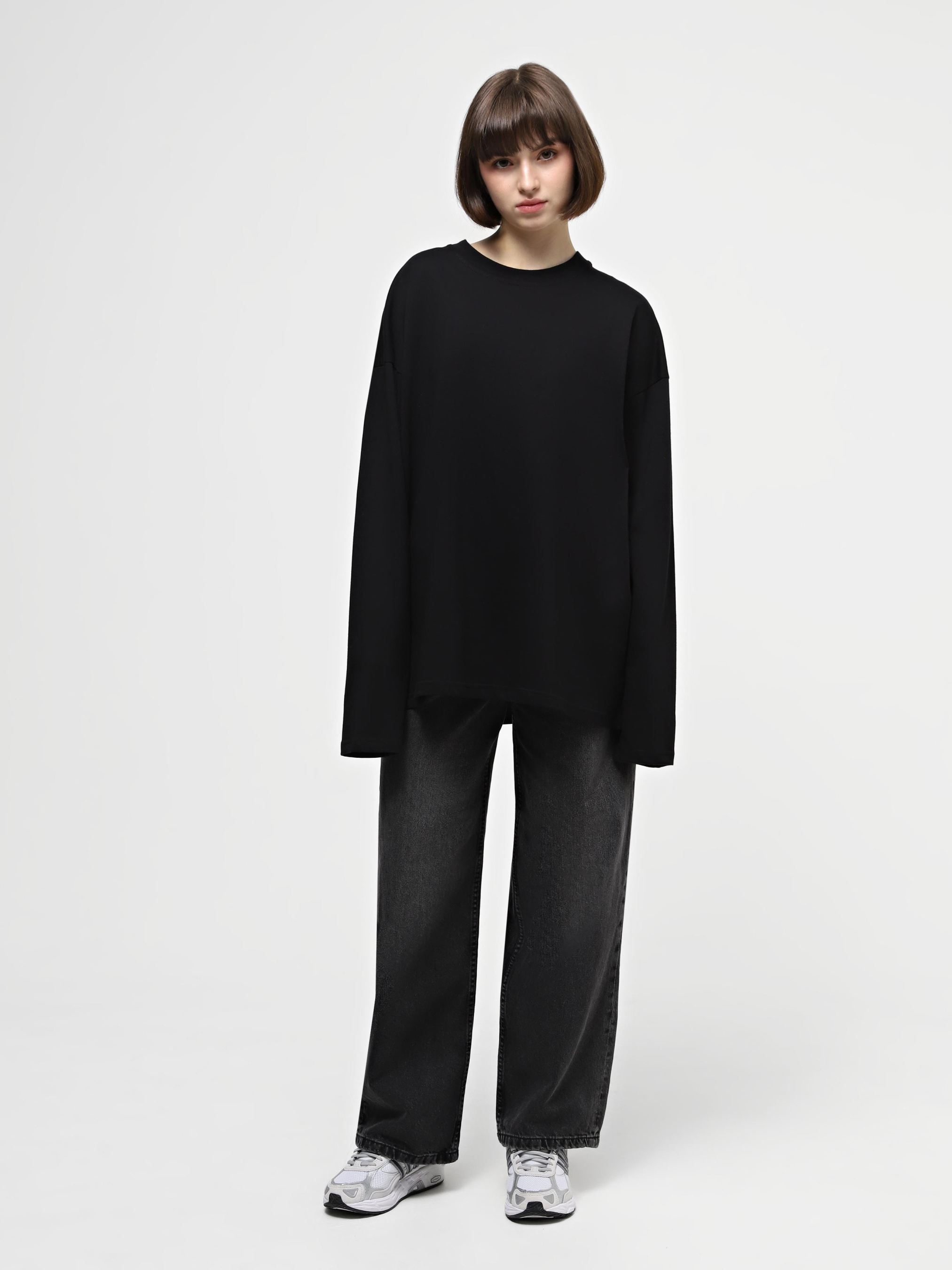Лонгслів Ейсік Оверсайз модель LonhslivChornyimen
