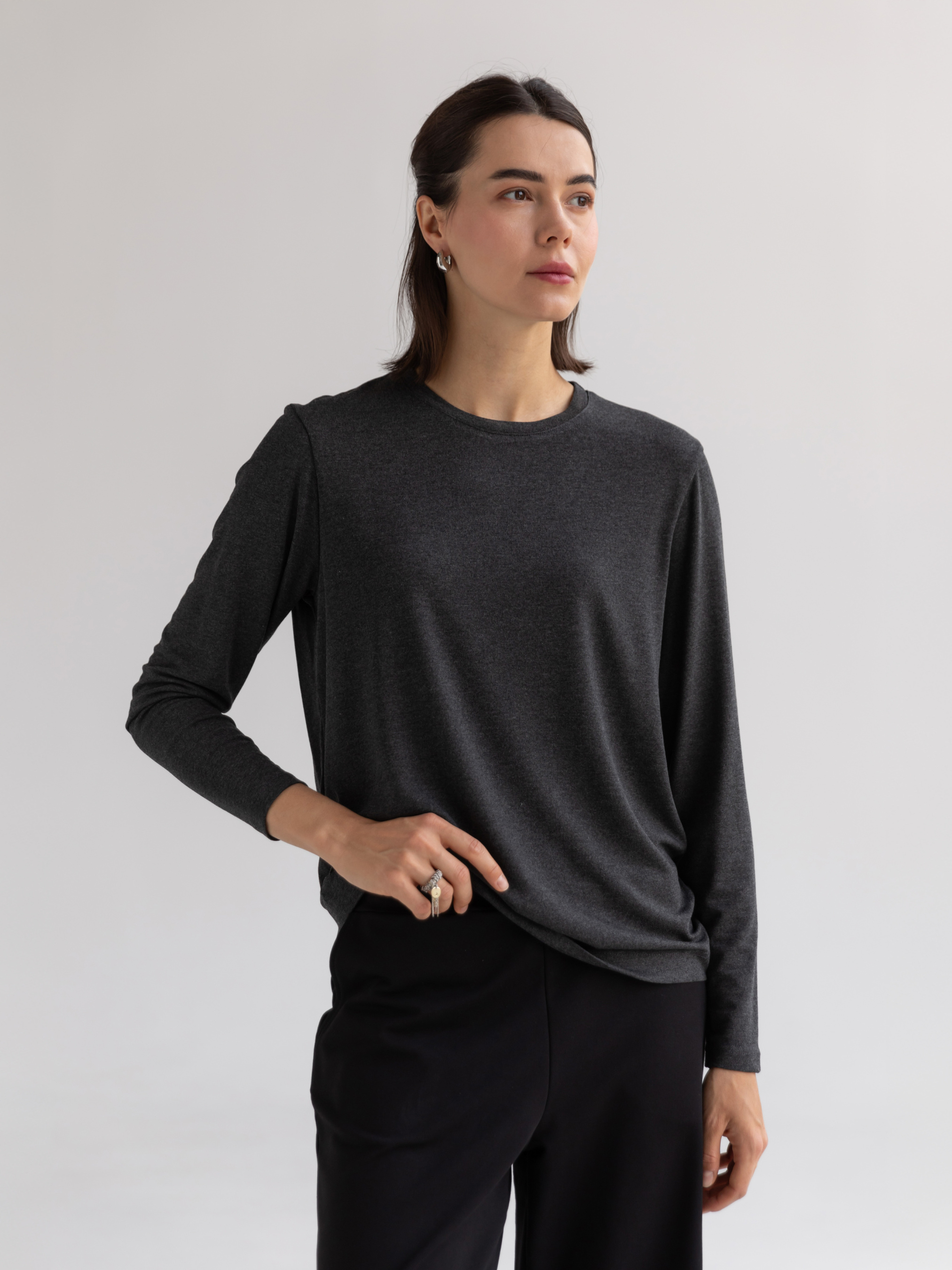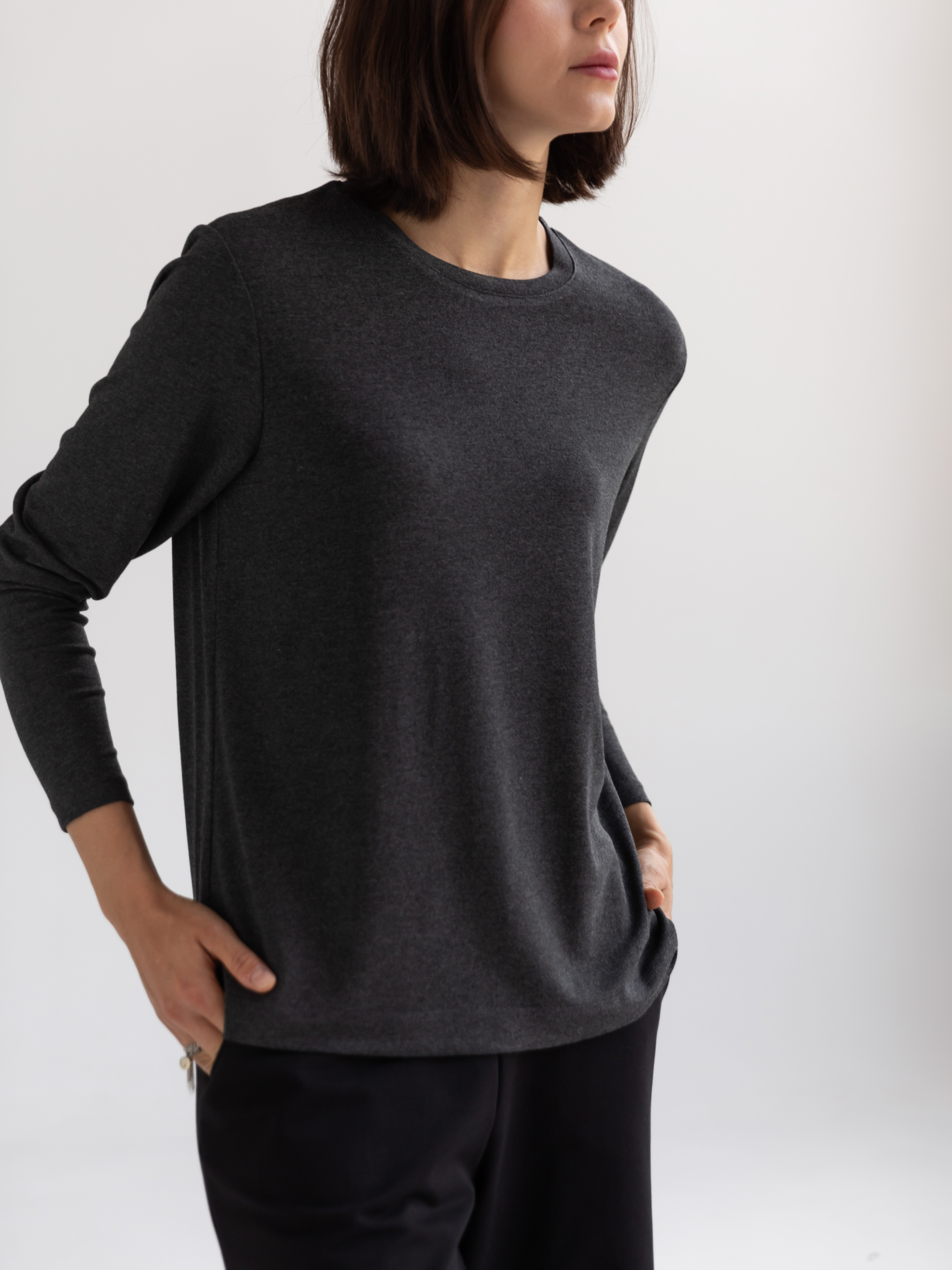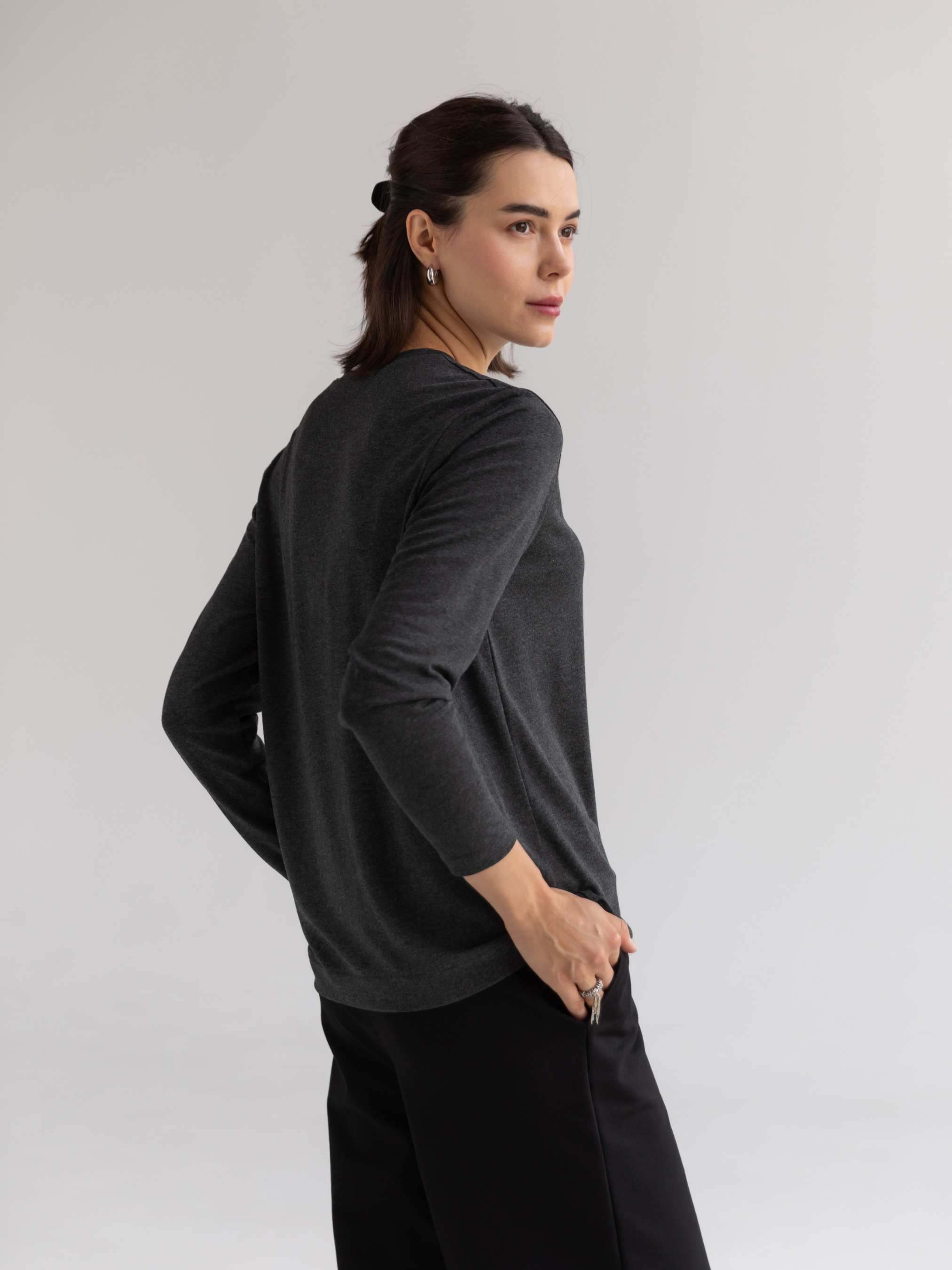Жіночий лонгслів із м’якої віскозної тканини стане функціональною основою вашого гардеробу завдяки універсальному дизайну та нейтральному меланжевому відтінку. Вільний крій забезпечує комфортну посадку, дозволяючи тілу дихати протягом усього дня. Модель оснащена класичним круглим вирізом горловини та напівспущеною лінією плечей, що надає виробу розслабленого, але водночас стильного вигляду. Цей лонгслів легко поєднується як із повсякденними, так і з більш формальними образами, залишаючись актуальним протягом усього року. Завдяки базовій конструкції, він ідеально підходить для багатошарових поєднань із куртками, жилетами чи кардиганами. Легкий у догляді, лонгслів зберігає свою форму після численних прань, залишаючись комфортним і елегантним елементом вашого гардеробу. Матеріал: трикотажне полотно кулірна гладь Сезон: всесезонне Склад: 95% віскоза 5% еластан Зріст моделі: 175 Параметри моделі: 82-63-92 Розмір виробу на моделі: S