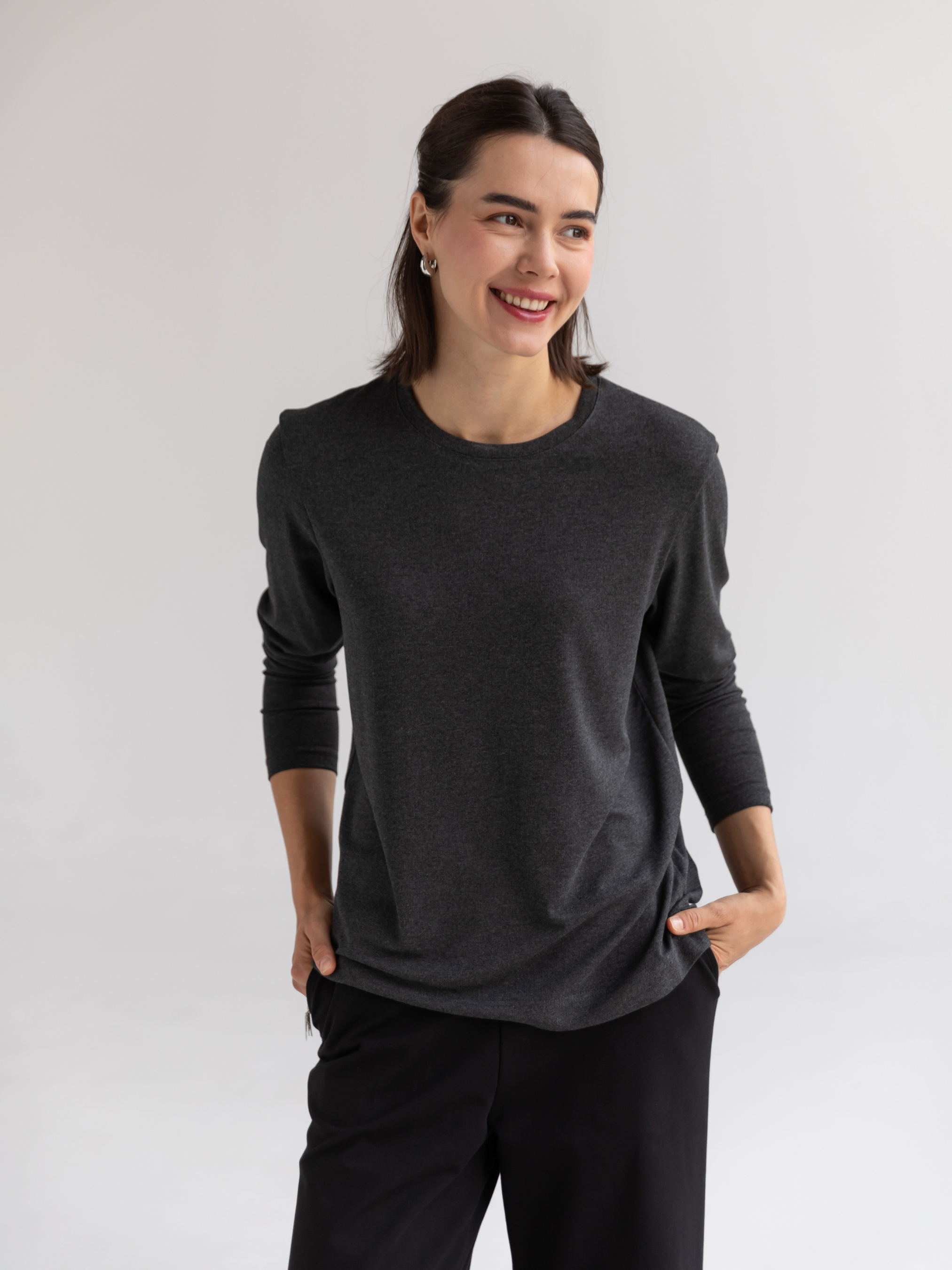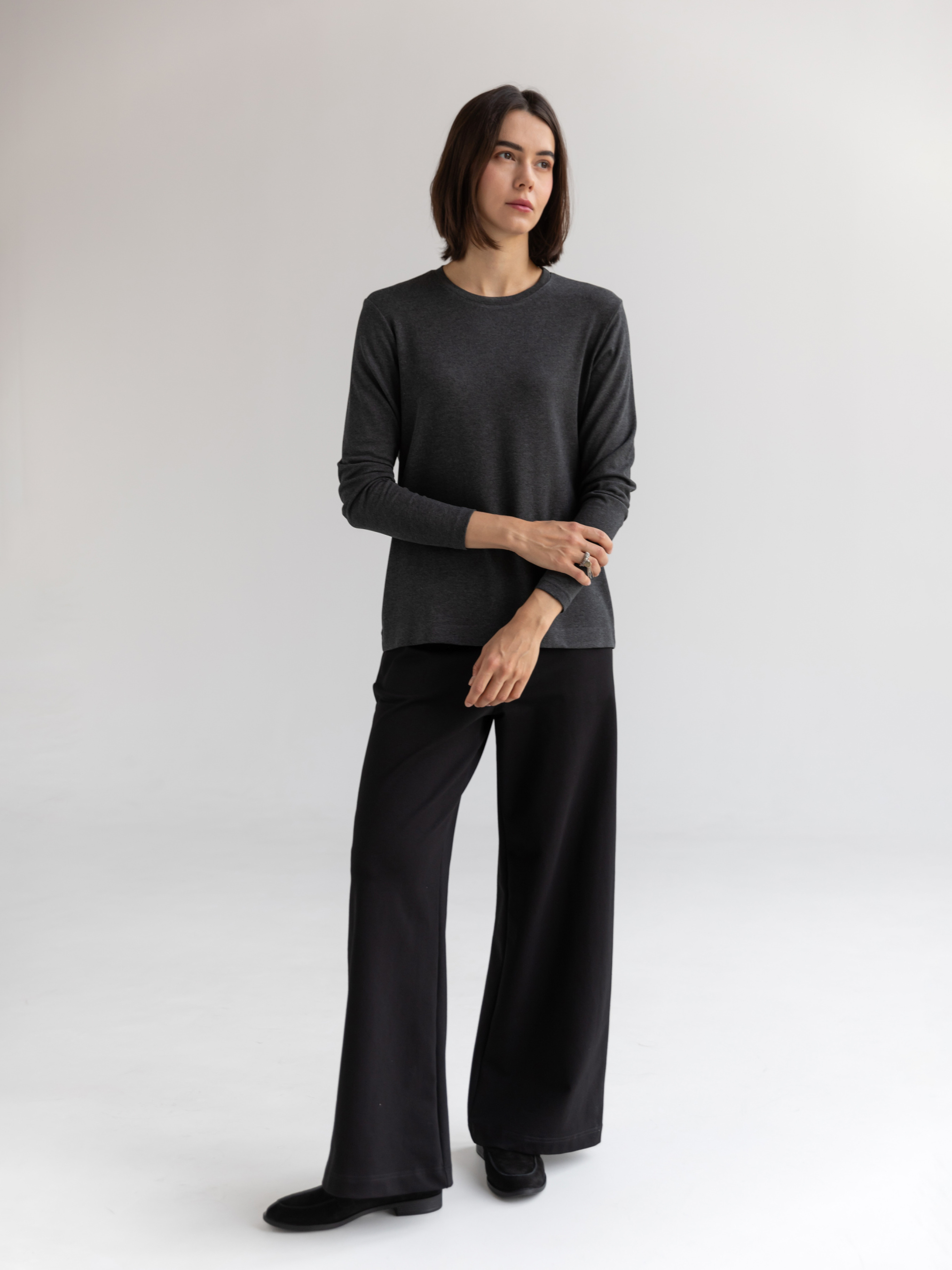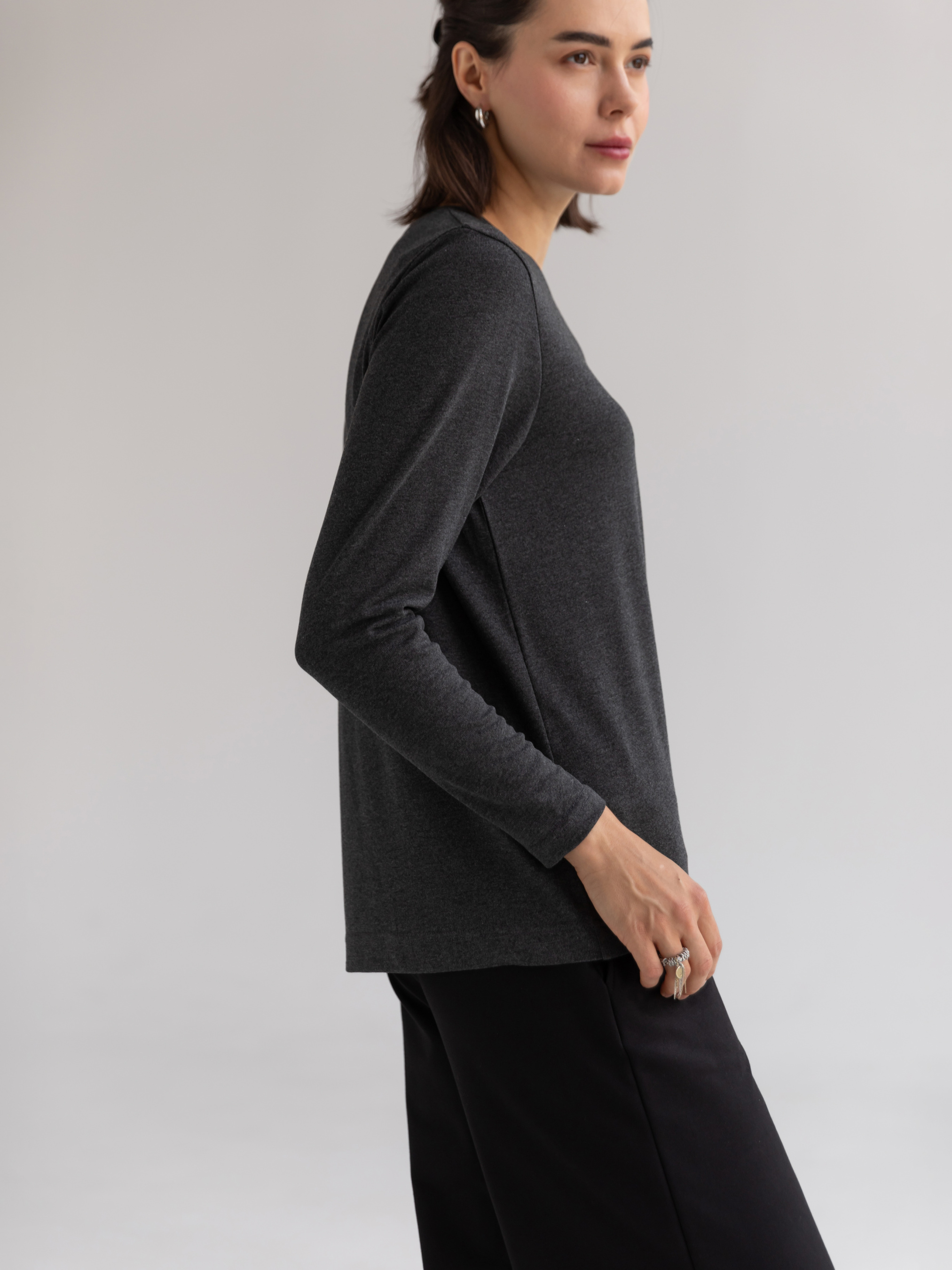 Жіночий лонгслів із м’якої віскозної тканини стане функціональною основою вашого гардеробу завдяки універсальному дизайну та нейтральному меланжевому відтінку. Вільний крій забезпечує комфортну посадку, дозволяючи тілу дихати протягом усього дня. Модель оснащена класичним круглим вирізом горловини та напівспущеною лінією плечей, що надає виробу розслабленого, але водночас стильного вигляду. Цей лонгслів легко поєднується як із повсякденними, так і з більш формальними образами, залишаючись актуальним протягом усього року. Завдяки базовій конструкції, він ідеально підходить для багатошарових поєднань із куртками, жилетами чи кардиганами. Легкий у догляді, лонгслів зберігає свою форму після численних прань, залишаючись комфортним і елегантним елементом вашого гардеробу. Матеріал: трикотажне полотно кулірна гладь Сезон: всесезонне Склад: 95% віскоза 5% еластан Зріст моделі: 175 Параметри моделі: 82-63-92 Розмір виробу на моделі: S