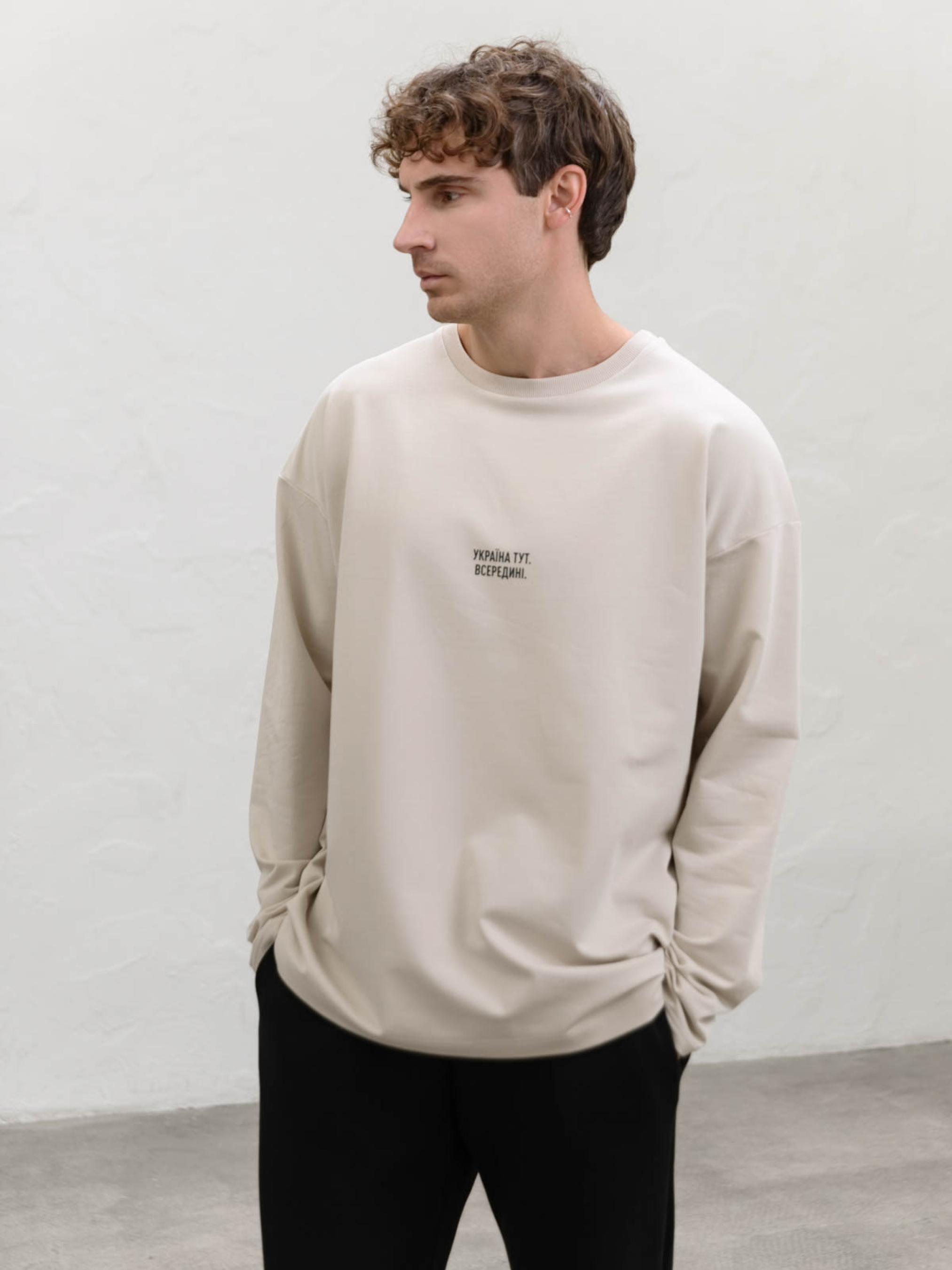 Цей чоловічий джемпер із принтом "Україна тут. Всередині." стане основою вашого гардероба. Лаконічний дизайн зі спущеною лінією плеча та вільним кроєм дарує комфорт та сучасний вигляд. Кругла горловина робить модель універсальною для будь-яких ситуацій. Футер двонитка – міцний та зручний матеріал, який зберігає форму після прання і дозволяє шкірі дихати. Принт на грудях додає джемперу особливого значення, акцентуючи увагу на вашій індивідуальності. Носіть із джинсами, чиносами чи спортивними штанами для створення гармонійного образу. Джемпер підходить для будь-якої погоди і стане вашим улюбленим вибором для повсякденного носіння.