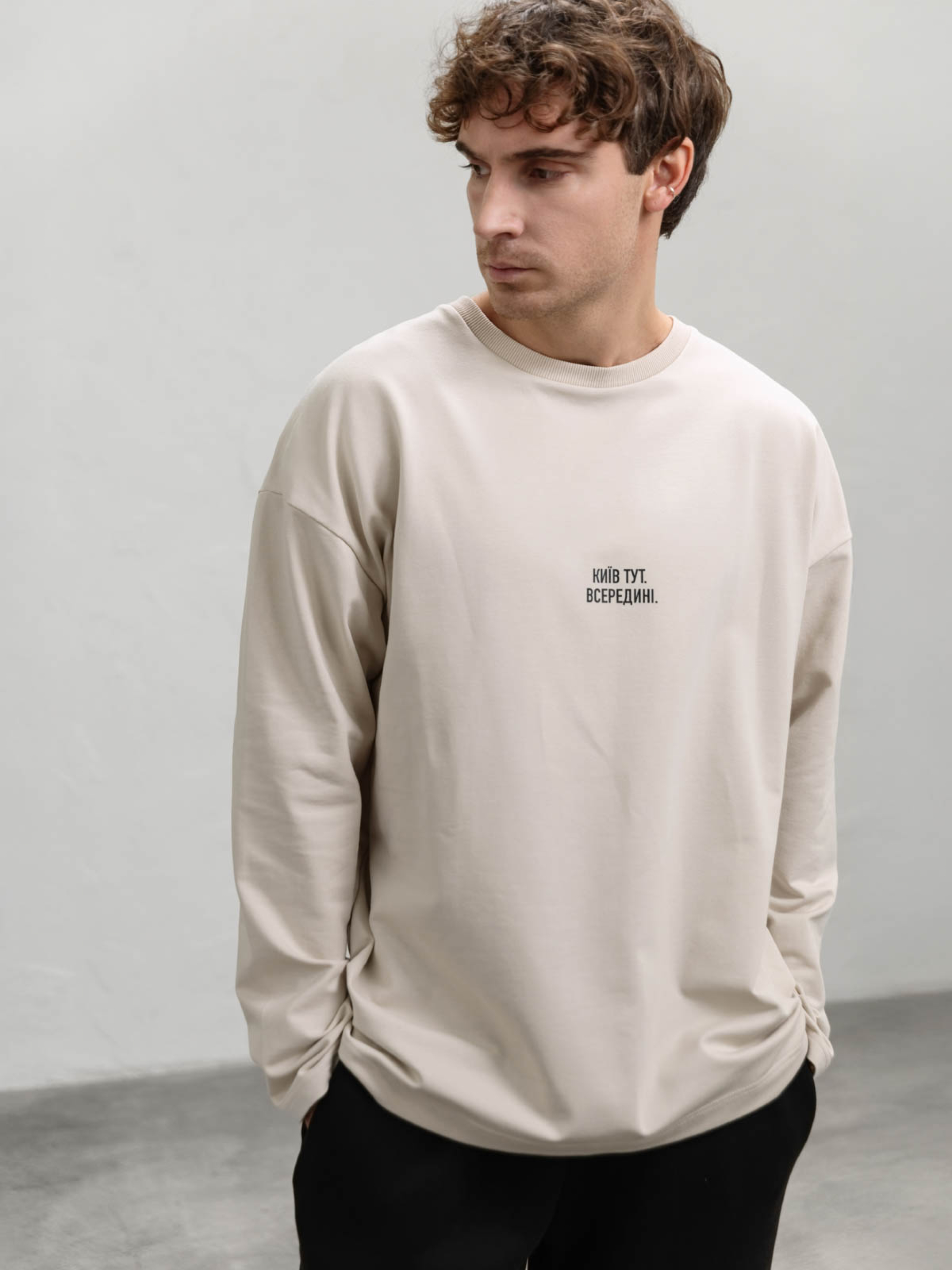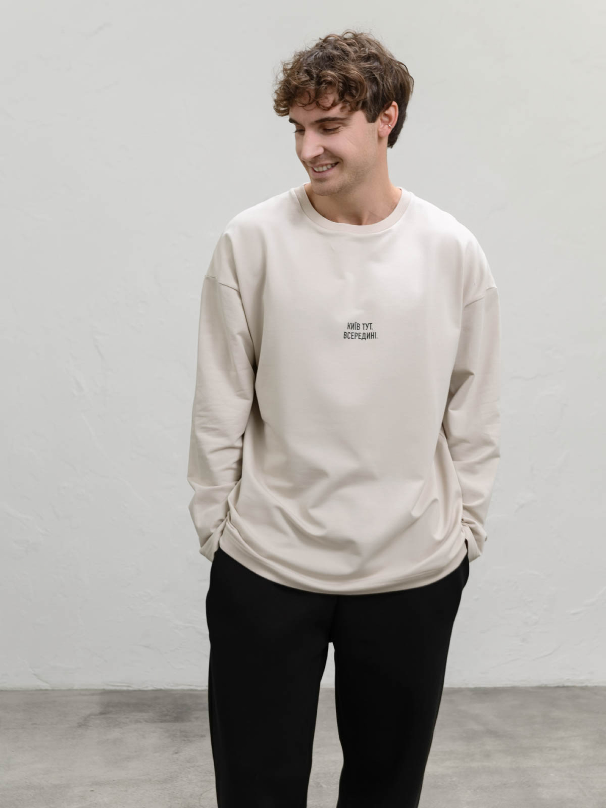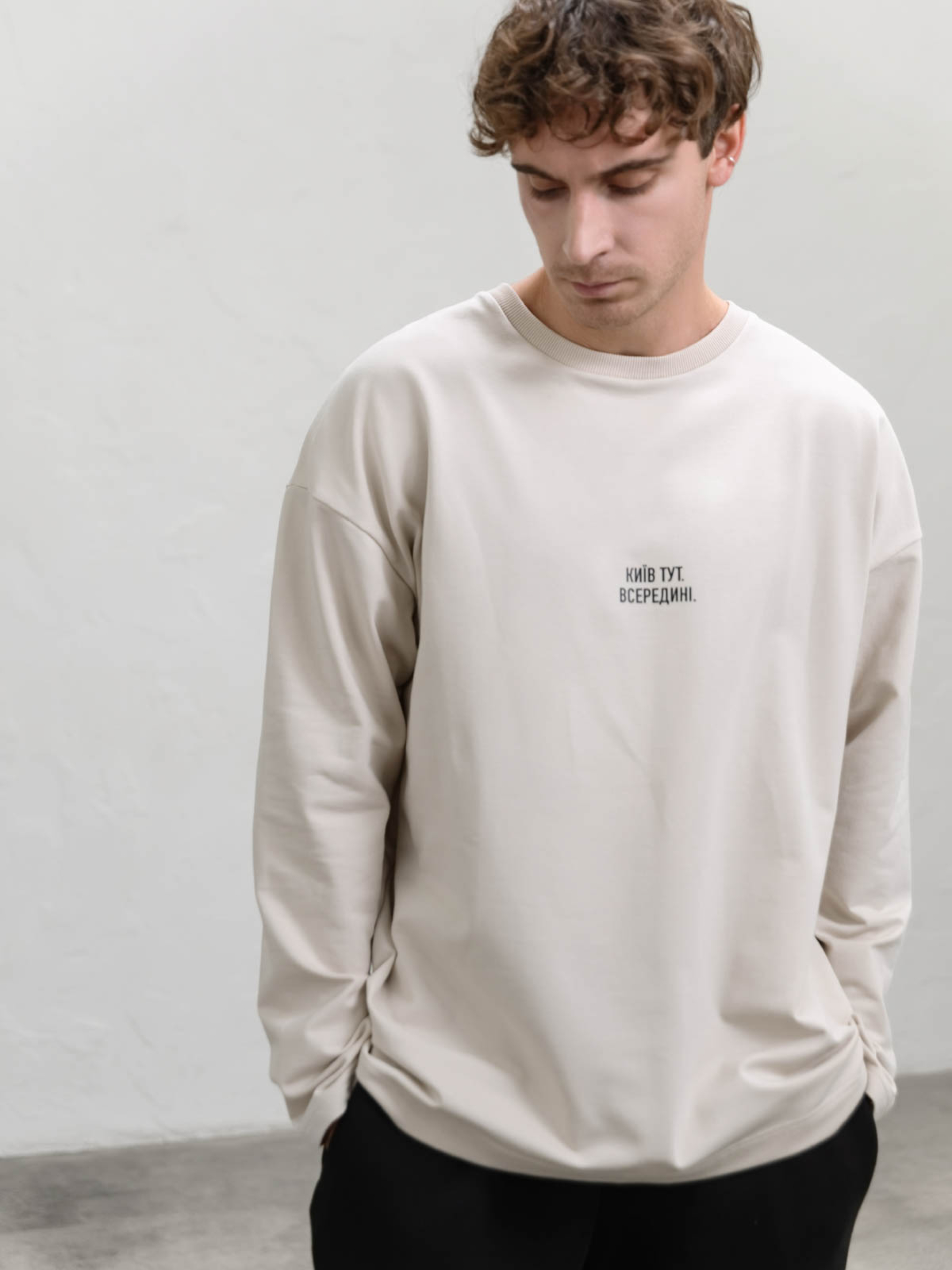 Джемпер із написом «Київ тут. Всередині.» стане чудовим вибором для тих, хто цінує стиль та комфорт. Вільний крій і спущена лінія плеча створюють сучасний вигляд, а кругла горловина забезпечує класичну посадку. Натуральна тканина дарує відчуття затишку та м'якості, тому джемпер зручно носити протягом усього дня. Ця модель ідеально підходить для повсякденного гардероба. Лаконічний напис додає індивідуальності, підкреслюючи зв'язок із рідним містом. Джемпер легко поєднується з базовими речами – джинсами, спортивними штанами чи навіть шортами. Додайте куртку чи бомбер, щоб завершити стильний образ у прохолодну погоду. Догляд за джемпером простий: прати при низьких температурах у делікатному режимі. Якісний матеріал збереже вигляд навіть після багаторазового прання, а універсальний крій стане вашим улюбленим вибором на кожен день.