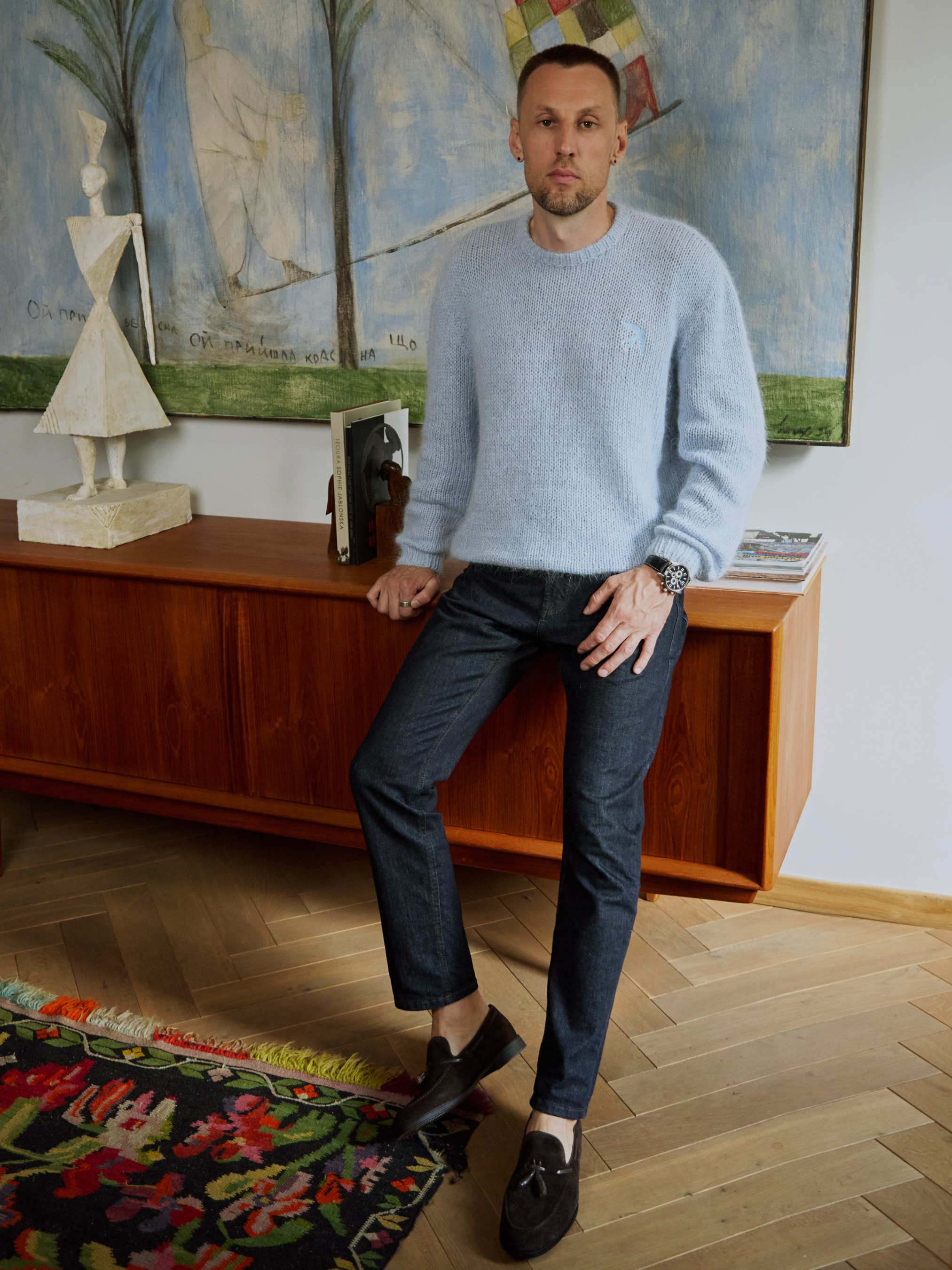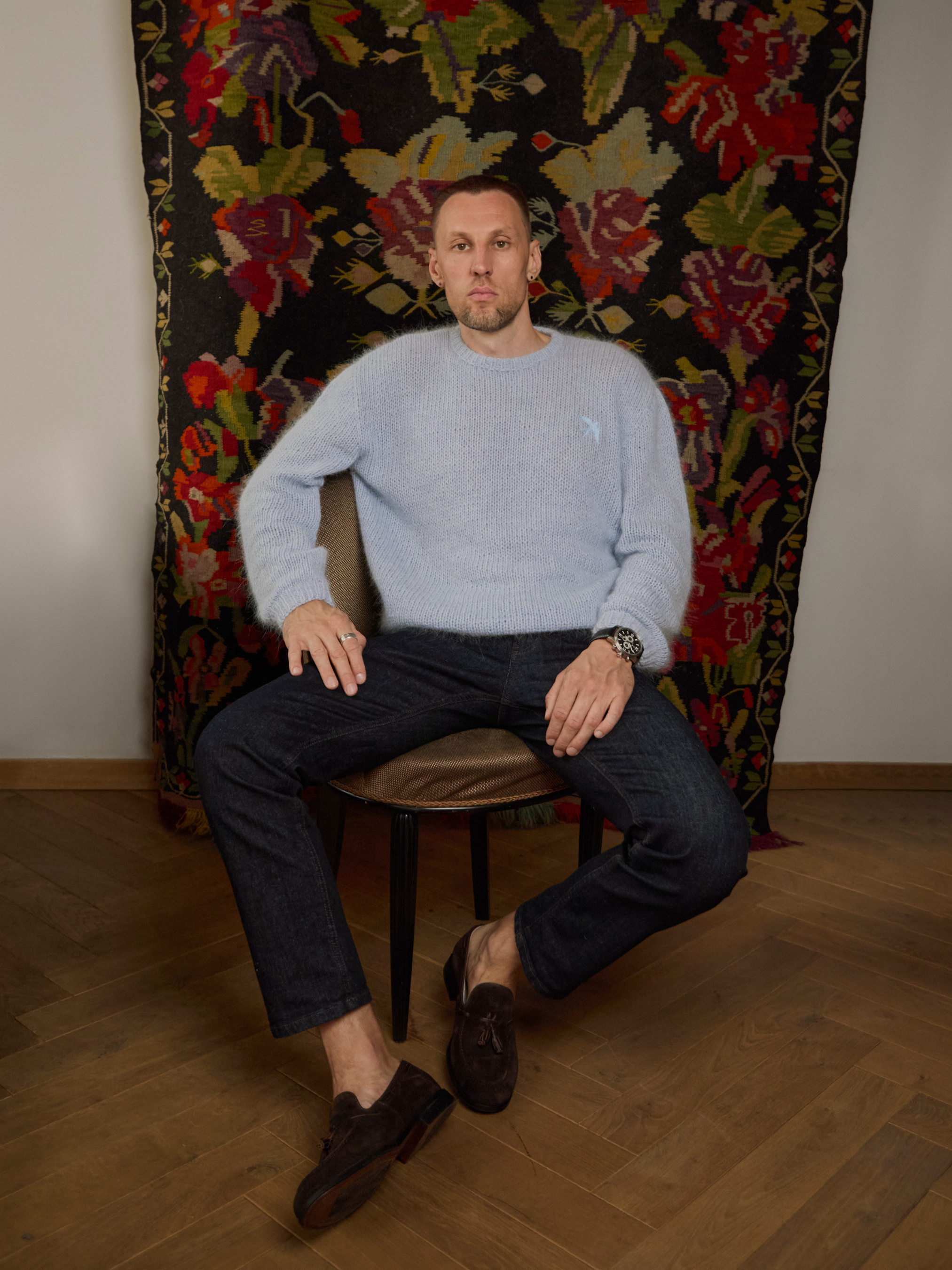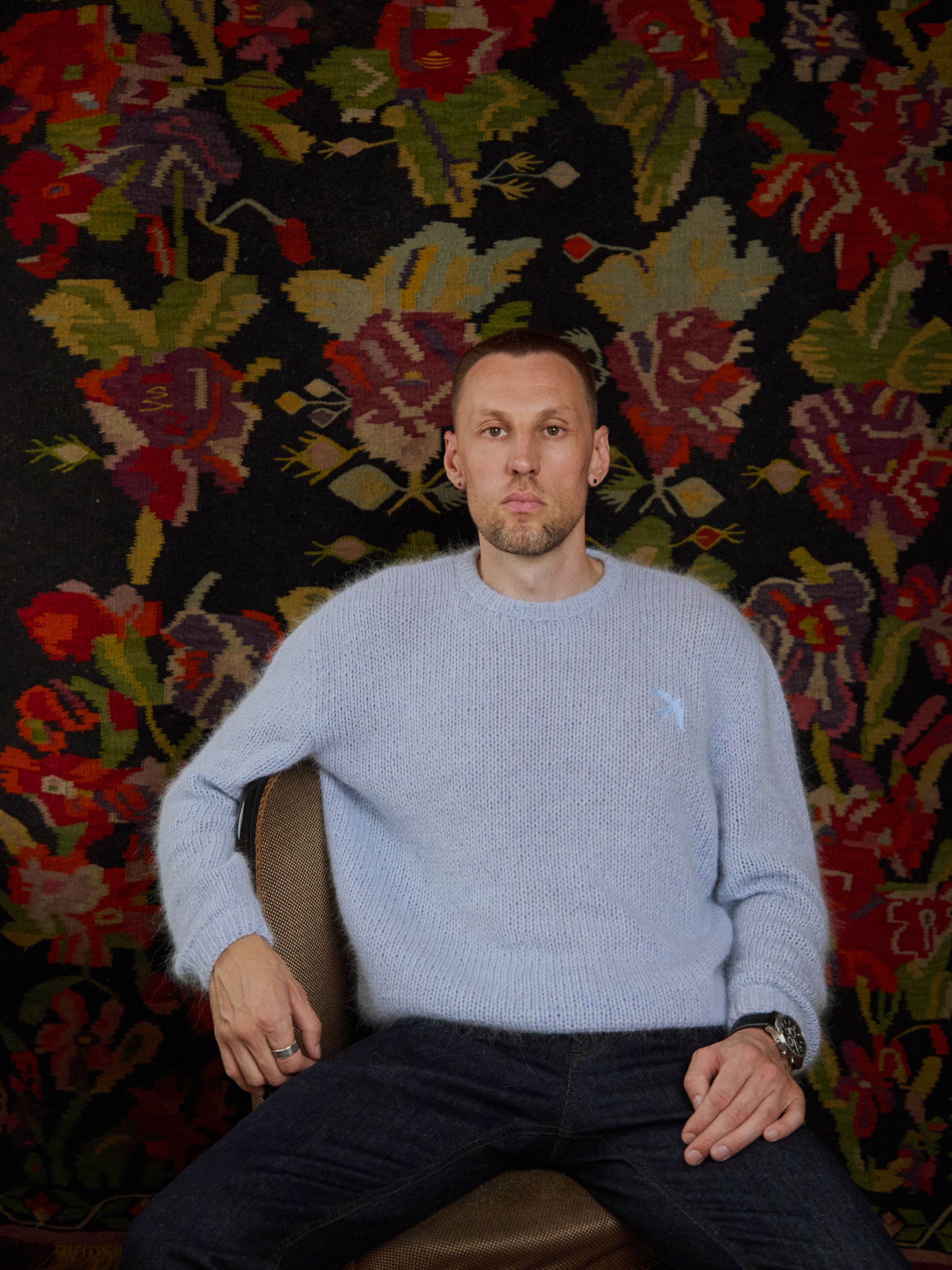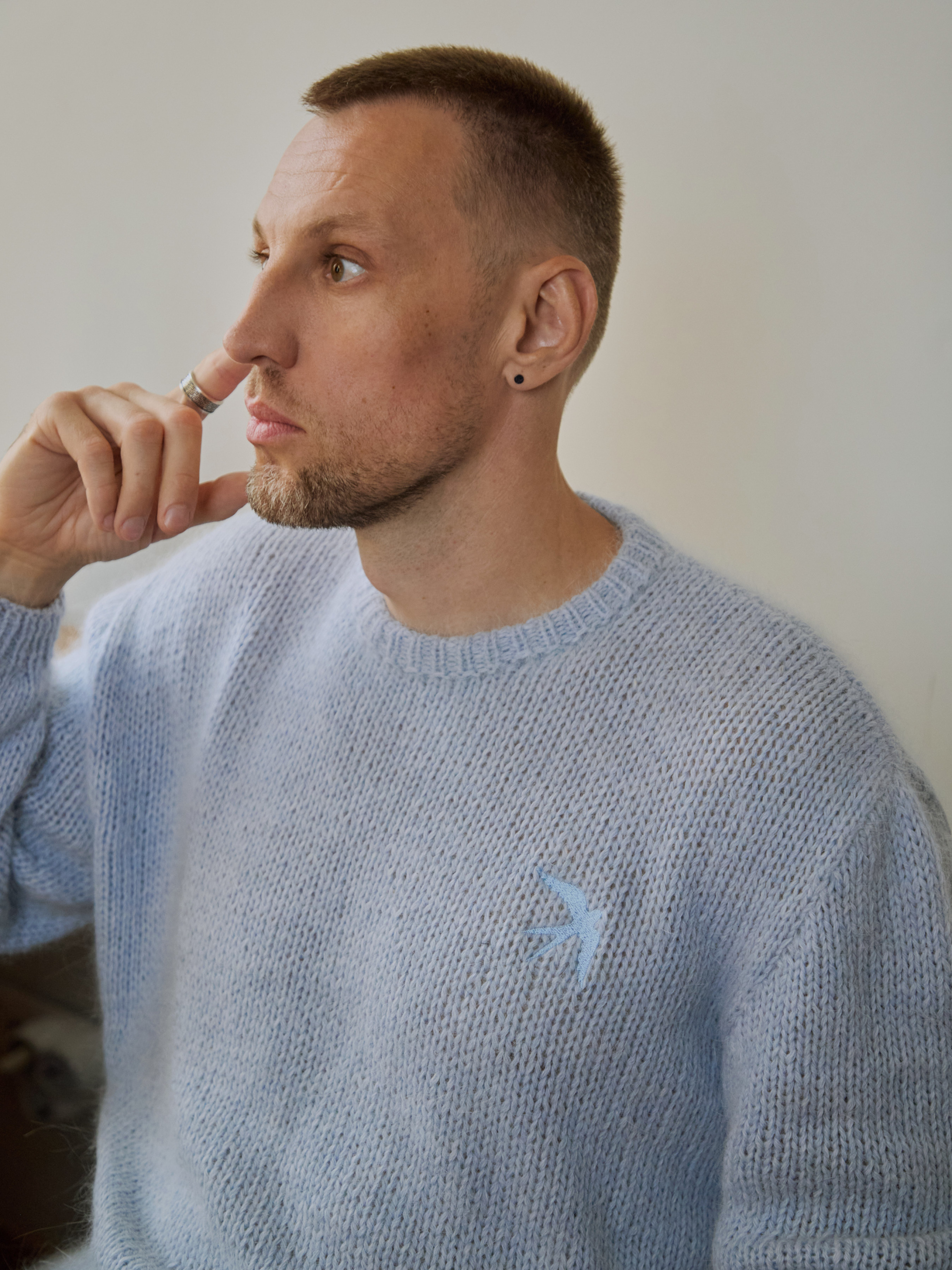 Преміальний светр вільного крою з м’якої суміші ангори та нейлону. Класичний силует з круглою горловиною, прямими рукавами та приталеними манжетами. На передній частині — машинна вишивка «Ластівка», що додає особливого акценту. • Довжина по спинці (L): 65 см • Довжина рукава: 60 см • Силует: вільний • Колір: блакитний • Матеріал: 50% ангора, 50% нейлон • Ручна робота, зроблено в Україні