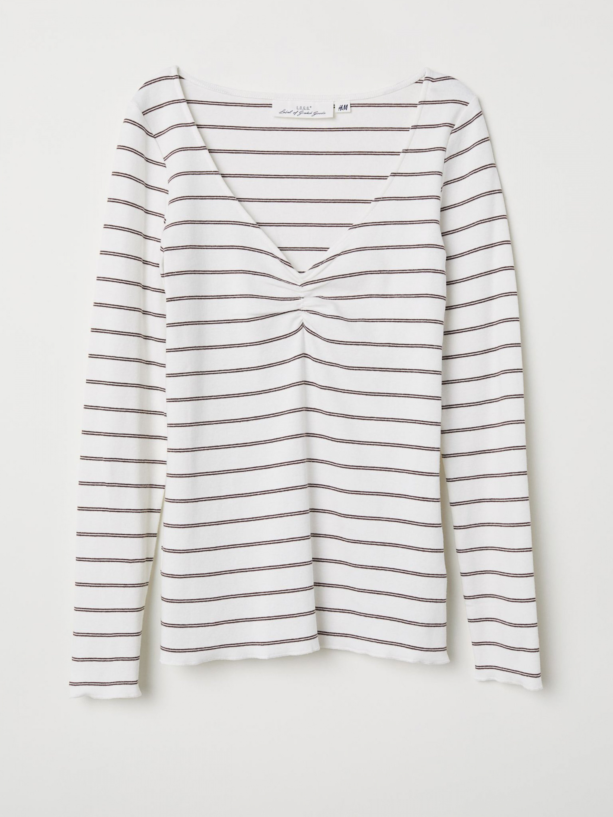 Лонгслів H&M модель 0651330_білий з т.коричневим